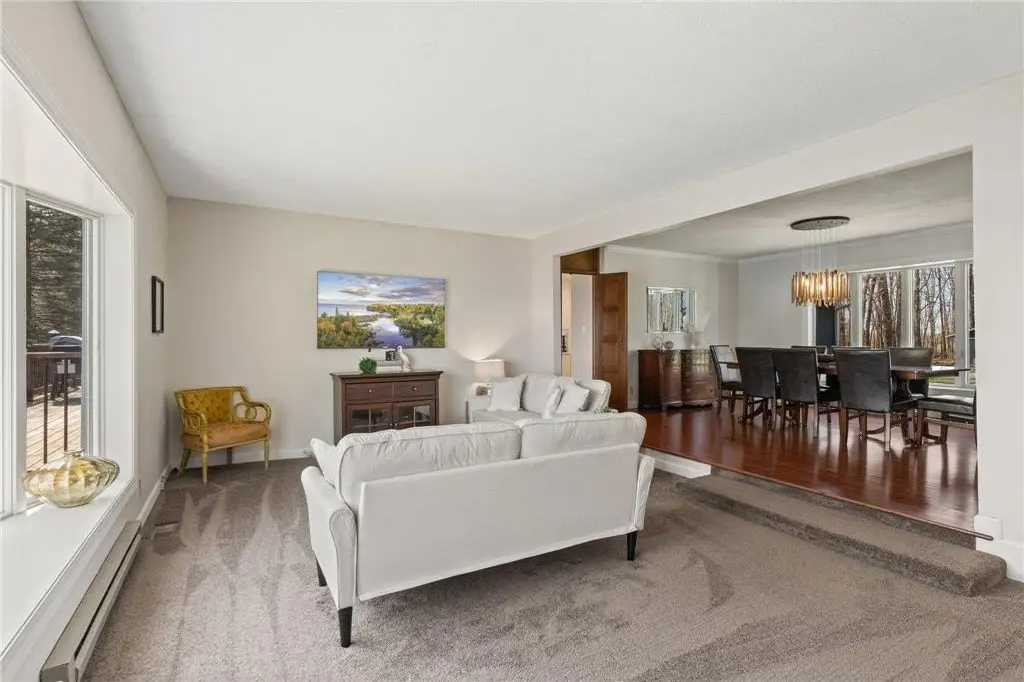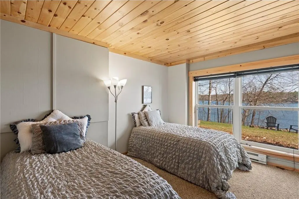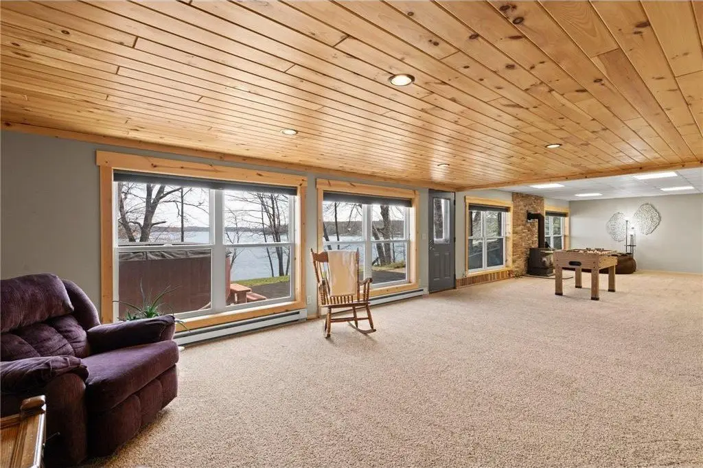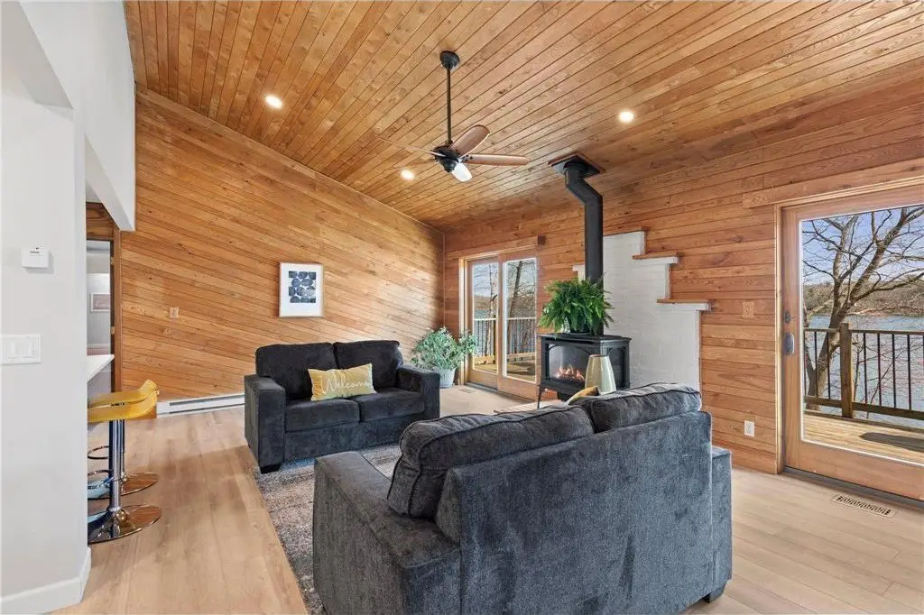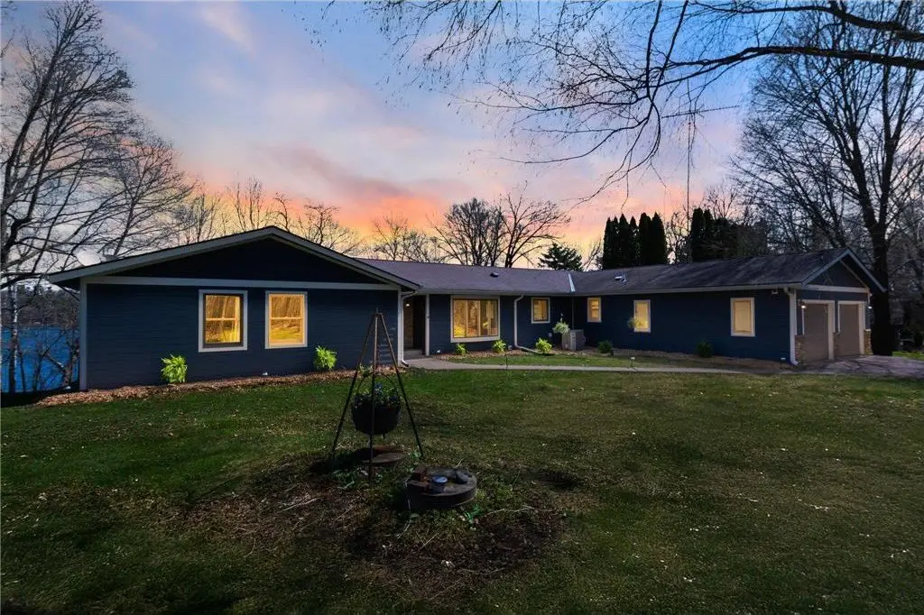 Live the lake life on coveted Deer Lake with this stunning 5-BR, 4-BA custom home, situated on 1.55 acres with 112+ ft of shoreline. With exceptional space, privacy, and style-this home checks every box. The main level features 3 bedrooms, including a luxurious primary suite with 2 walk-in closets, private bath, and access to your own deck overlooking the lake. The open layout highlights hardwood floors, vaulted ceilings, a spacious kitchen, and large living area that opens to both the main deck and 3-season room. The lower level is ideal for entertaining with 2 additional bedrooms, a full bath, second full kitchen, large family room, and a bonus room. Outside, enjoy a serene setting with mature trees and beautiful water frontage. A 2-car attached garage plus an additional detached garage on the 2nd lot offer abundant storage for lake toys and vehicles. Whether you’re hosting, relaxing, or exploring, this rare property invites you to experience the best of lakeside living on Deer Lake.