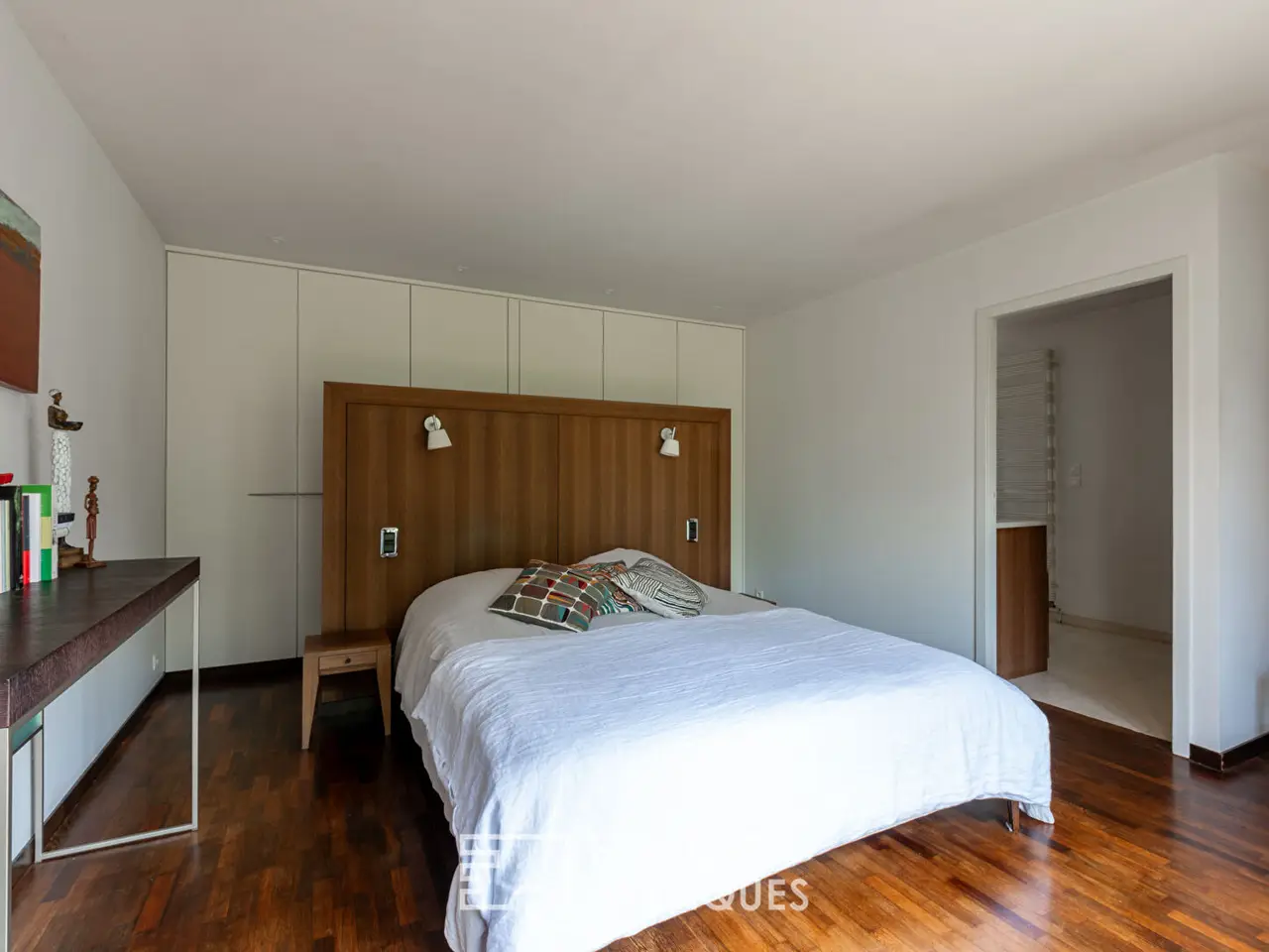 Rounded architectural notes for this superb family home that looks like a holiday home thanks to its green garden with a very large swimming pool. Its most privileged geographical location allows immediate access to the heart of Saint-Gregoire, but also to the banks of the Saint-Martin canal and the heart of Rennes in a few minutes. The generous volumes define this property, maintained, renovated and modernized over the years. From the entrance hall, equipped with plenty of storage space just like the rest of the house, access the large living room bathed in light with its breathtaking view of this beautiful garden and its pretty swimming pool. it has a fireplace and beautiful custom-made shelves. A real cocoon. The living room, also benefiting from a double exposure, communicates with a very modern and recent, semi-open kitchen. Still on the ground floor, a beautiful and large master suite, set back, offers a very pleasant setting overlooking the garden. An office completes this level. The first floor serves a mezzanine that can accommodate a reading area or a TV lounge according to everyone's desires, a junior suite with storage and its bathroom with shower, three bedrooms as well as a bathroom. Additional rooms: entrance dressing room, laundry room, cellar, double garage, garden shed. REF. 7284 Additional information * 8 rooms * 5 bedrooms * 2 bathrooms * 1 bathroom * 1 floor in the building * Outdoor space : 1330 SQM * Parking : 4 parking spaces * Property tax : 3 301 € Energy Performance Certificate Primary energy consumption c : 173 kWh/m2.year High performance housing