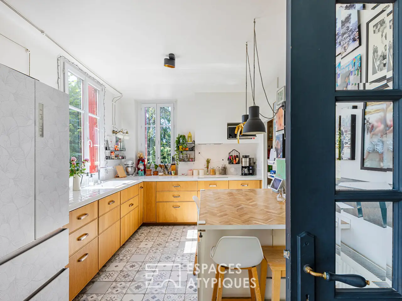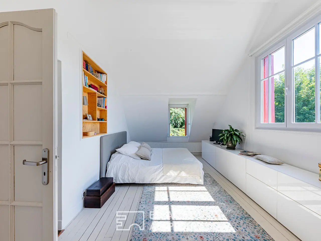 The studio of the painter Albert Maignan in Saint-Prix was built in 1894. It is an atypical building located in the heart of the old village, backing onto the Montmorency forest, and designed to provide a bright workspace suited to the painter's works, often large format. This residence reflects the aspiration of late 20th-century artists to combine professional and private life, an extremely modern and contemporary concept. It is here, in this studio, that his major work 'The Voices of the Tocsin' was painted.Upon arrival at the property, the atmosphere transports you back in time, and the first steps in the entrance of the painter's former studio set the tone for this extraordinary space. High ceilings, large openings to let in the light, a monumental fireplace. All the codes of an artist's studio are there.After some transformations versus the original workshop, the house now offers 196 sqm of living space on 3 levels bathed in light and 63 m2 of annexes. Upon arrival, a masterful entrance with a period fireplace is revealed, and offers a perfect place for a teleworking space or for a liberal profession.On the first floor, which is accessed via the original staircase, the vestibule leads to a large living room with open kitchen and thus offers nearly 50 m2 of reception room opening onto the garden and with a view of the village.On this same level, a bedroom with a shower room is also present. On the upper floor, there is a very large bedroom of 30 m2 divisible into two bedrooms, and a bathroom with shower, bathtub and a dressing room.Finally, on the top floor, a last bedroom with whitewashed parquet flooring and a view of the village church offers a very romantic setting. In the annex, laundry room, cellar, bicycle garage, workshop.Nothing has been forgotten.Parking for two cars is provided within the property. A house with a history, magnificent volumes, and incredible light, all in an extremely bucolic green setting.ENERGY CLASS: D Climate class: C Estimated annual costs: between EUR3,230 and EUR4,440 per year Average energy prices indexed to 2021, 2022, 2023Regulatory information on the risks to which this property is exposed is available on the Georisques website: www.georisques.gouv.frWe remind you that following article I.561-5 of the Monetary and Financial Code, a copy of the identity document of all visitors will be requested before the visit.REF. 616Additional information* 7 rooms* 4 bedrooms* 1 bathroom* 1 bathroom* 3 floors in the building* Outdoor space : 490 SQM* Parking : 2 parking spaces* Property tax : 2 274 €Energy Performance CertificatePrimary energy consumptiond : 235 kWh/m2.yearHigh performance housing*A*B*C*235kWh/m2.year25*kg CO2/m2.yearD*E*F*GExtremely poor housing performance* Of which greenhouse gas emissionsc : 25 kg CO2/m2.yearLow CO2 emissions*A*B*25kg CO2/m2.yearC*D*E*F*GVery high CO2 emissionsEstimated average annual energy costs for standard use, indexed to specific years 2021, 2022, 2023 : between 3230 € and 4440 € Subscription IncludedAgency feesThe fees include VAT and are payable by the vendorMediatorMediation Franchise-Consommateurswww.mediation-franchise.com29 Boulevard de Courcelles 75008 ParisInformation on the risks to which this property is exposed is available on the Geohazards website : www.georisques.gouv.fr