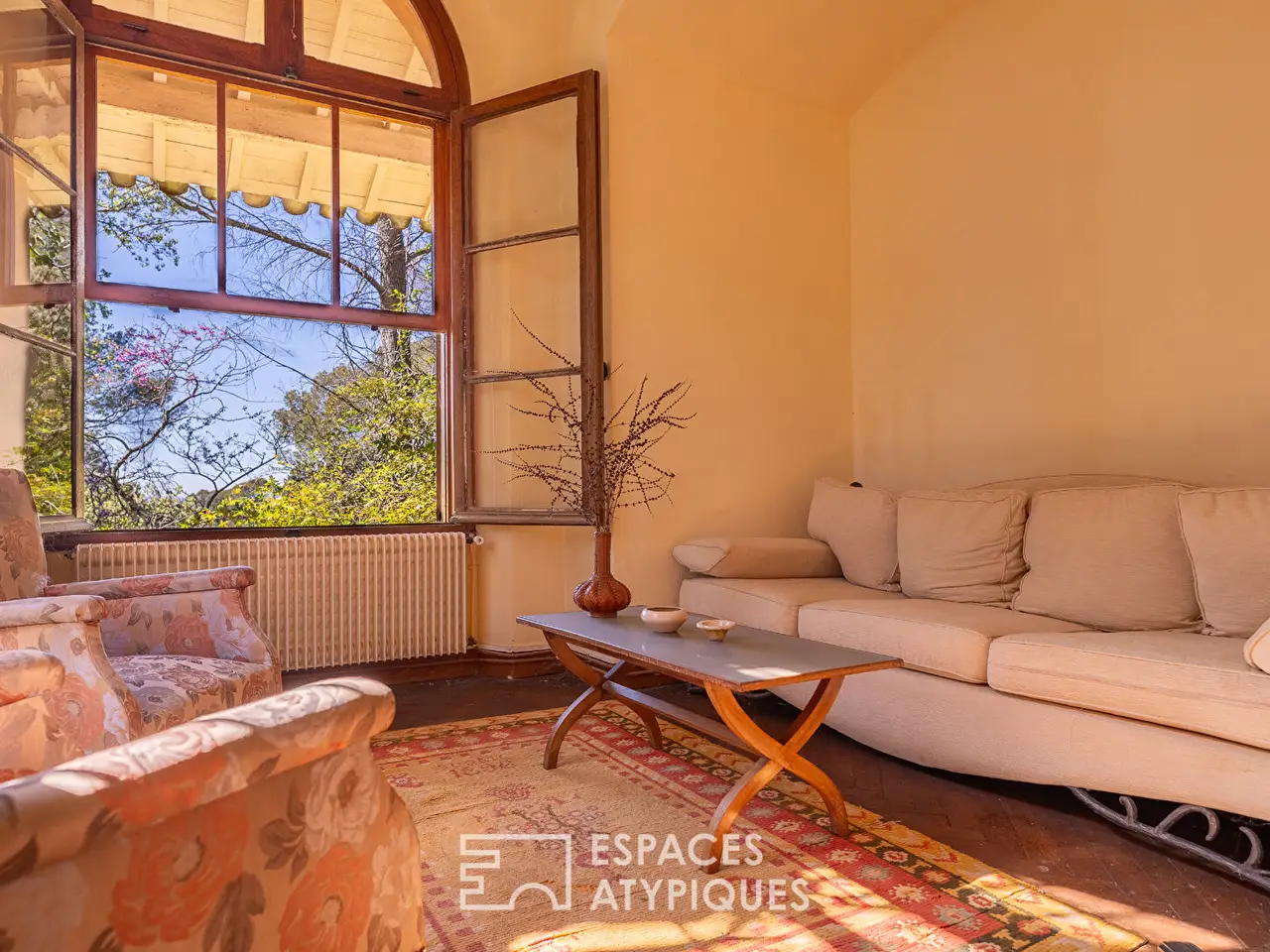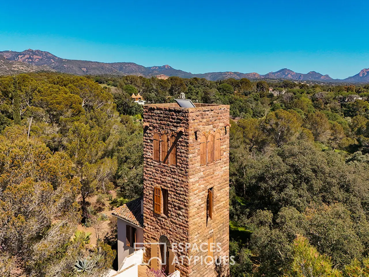 19th century watchtower in the heart of an 11 hectare estateNestled in the heart of a verdant estate of over 11 hectares in Saint-Raphaël, this watchtower, built in 1900, stands out for its unique architecture and exceptional natural setting. Located a stone's throw from the Valescure golf course, it boasts a 360-degree panoramic view, stretching from the mountains to the sea. The property complex includes the tower, a former artist's studio, and an adjoining double garage, both with a surface area of approximately 100 sqm, along with various technical buildings.The tower, organized on three levels, offers a bedroom on each floor, giving the space a special intimacy and charm. The ground floor houses a remarkable living room, inspired by a church, with ogive architecture that lends a unique and authentic atmosphere. The artist's studio, a true place of inspiration, offers a generous and bright volume, ideal for various uses.The park is a preserved natural setting, decorated with a pond and a watering system fed by a borehole, ensuring lush vegetation all year round. The absolute calm of the place and the absence of vis-a-vis make it a rare haven of peace in the region.Combining heritage, nature and atypical architecture, this unique property is aimed at lovers of places full of history and character. Unclassified, this property offers total freedom for a personalized renovation, leaving room for all inspirations. Its privileged location and its rare services make it a rare opportunity on the Saint-Raphaël real estate market.ENERGY CLASS: F (404 kWh/m2/year) / CLIMATE CLASS: F (90kg CO2/m2/year). Estimated amount of annual energy expenditure for standard use between EUR3,270 and EUR4,470 indexed to the years 2021, 2022 and 2023 (subscription included)REF. 10431Additional information* 6 rooms* 3 bedrooms* 1 bathroom* 3 floors in the building* Outdoor space : 118476 SQM* Parking : 2 parking spaces* Property tax : 3 673 €Energy Performance CertificatePrimary energy consumptionf : 413 kWh/m2.yearHigh performance housing*A*B*C*D*E*413kWh/m2.year90*kg CO2/m2.yearF*GExtremely poor housing performance* Of which greenhouse gas emissionsf : 90 kg CO2/m2.yearLow CO2 emissions*A*B*C*D*E*90kg CO2/m2.yearF*GVery high CO2 emissionsEstimated average annual energy costs for standard use, indexed to specific years 2021, 2022, 2023 : between 3 € and 4 € Subscription IncludedAgency feesThe fees include VAT and are payable by the vendorMediatorMediation Franchise-Consommateurswww.mediation-franchise.com29 Boulevard de Courcelles 75008 ParisInformation on the risks to which this property is exposed is available on the Geohazards website : www.georisques.gouv.fr