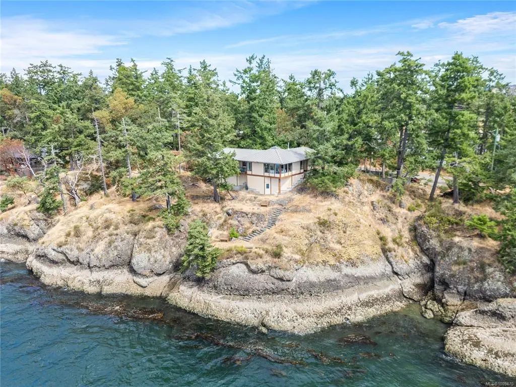 Architect-designed, custom-built oceanfront home bathed in sunlight and nestled at the coveted end of prestigious Scott Point. Perfectly positioned with south-west exposure, this exquisite residence offers breathtaking 180-degree ocean views from all principal rooms. Thoughtfully sited for ultimate privacy and connection to nature, this 1,650 square foot one-level home features two spacious bedrooms, an office/den, and an airy vaulted-ceiling living room with banks of sunlit windows. Cozy wood stove, seismic engineering and passive solar design. Low-maintenance, fenced woodland garden nestled among native trees and plantings, enhanced with drought-tolerant exotics, and custom stonework. Shoreline benches for relaxing, or easily launch a kayak or paddleboard. With community water access and a substantial rainwater collection system, keeping gardens growing. Just minutes from town and the Long Harbour ferry; this property is a great opportunity to experience the best of island living.