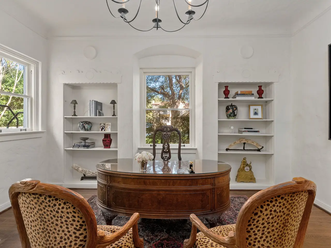 Prominently located on one of Monte Vista's premier streets, this architecturally significant Spanish Revival estate is a masterful blend of timeless elegance and modern luxury. Designed by renowned architect Robert B. Kelly, the historic Dr. J. L. Felder House is gracefully nestled beneath the canopy of heritage oak trees on nearly half an acre in the prestigious Monte Vista Historic District.Spanning over 6,000 square feet, the main residence showcases exquisite period craftsmanship including original oak hardwood floors, plaster walls, and intricately hand-carved wood doors alongside thoughtful modern updates that enhance livability and comfort. The grand formal living room with its ornate fireplace sets an elegant tone, while the stately dining room and handsome study with fireplace offer refined spaces for entertaining or quiet retreat. A spacious family room with a full bar and double French doors opens seamlessly to the lush backyard and shimmering pool, creating an effortless flow for indoor-outdoor gatherings.The charming kitchen features soapstone countertops, Subzero appliances, and an adjacent light-filled breakfast room that overlooks the gardens. Six bedrooms and seven baths provide versatility for a range of lifestyles and multigenerational living, including an en-suite bedroom on the main level and two additional rooms that may serve as a gym, playroom, or game room. The expansive primary suite is a private sanctuary, complete with a fireplace, elegantly updated bath, and a walk-in dressing room closet.Completing the estate is an 800-square-foot, two-bedroom carriage house perched above a three-car garage ideal for guests, extended family, or studio space. Outdoors, a sparkling pool is framed by lush, landscaped gardens and a breezeway lined with Spanish columns, evoking the romance and grace of a bygone era.Offering architectural provenance, refined contemporary comfort, and rare versatility, this extraordinary Spanish Revival estate stands as one of Monte Vista's most distinguished historic treasures. - 11/17/2025 8:00:50 AM