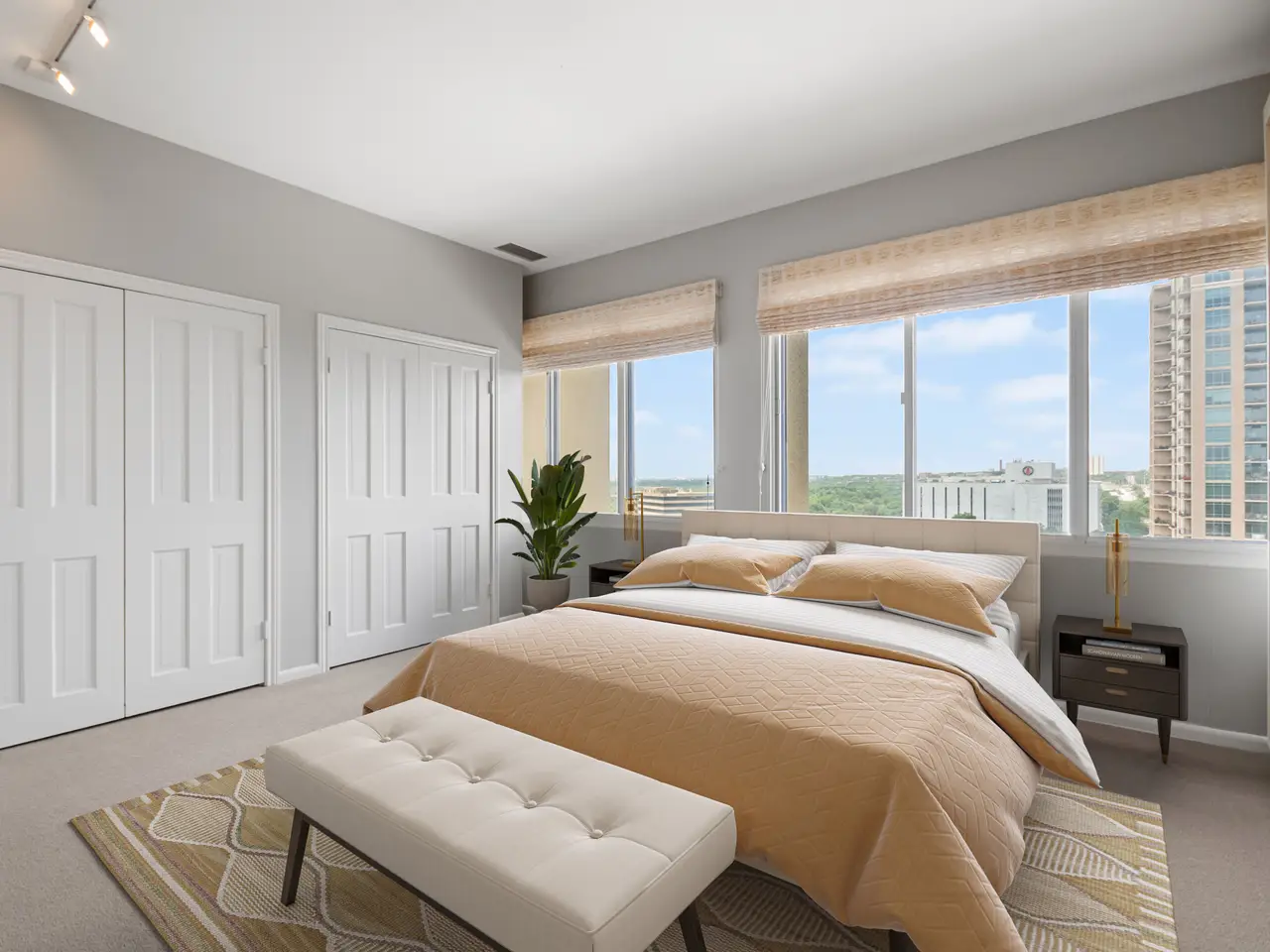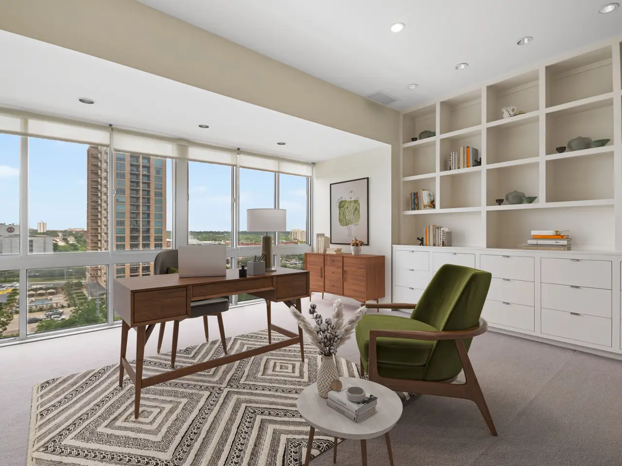 Perched high above the vibrant heart of Alamo Heights in San Antonio, this luxury high-rise condo offers a blend of modern sophistication, breathtaking views, and unmatched convenience. Step inside and you're greeted with floor-to-ceiling windows that flood the space with natural light and great views of the San Antonio Country Club golf course. The living space features sleek hardwood floors, cozy spaces, and incredible floor plan to take in the views from every room. The kitchen has a functional layout right off the main living room to make it easy for entertaining. The master suite is a tranquil retreat with a large walk-in closet, and a spa-inspired bathroom and a spacious sitting room. 3 generous size bedrooms with built-in cabinets, custom closets, bookcases and storage. This condo is just a walk across the street to the San Antonio Country Club and quick access to city life.