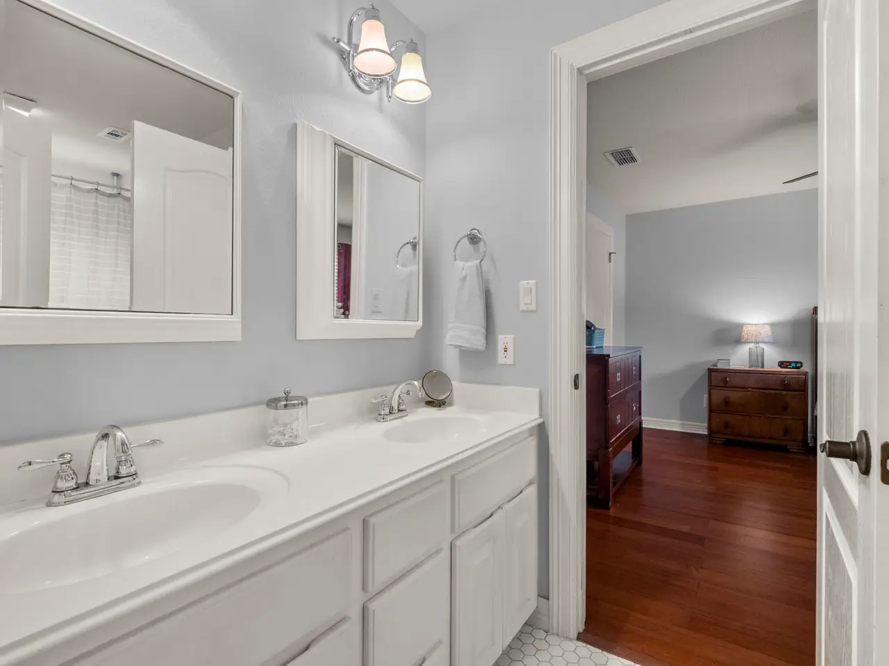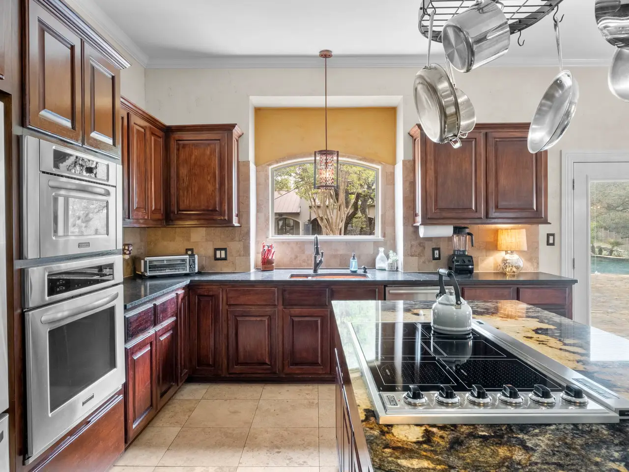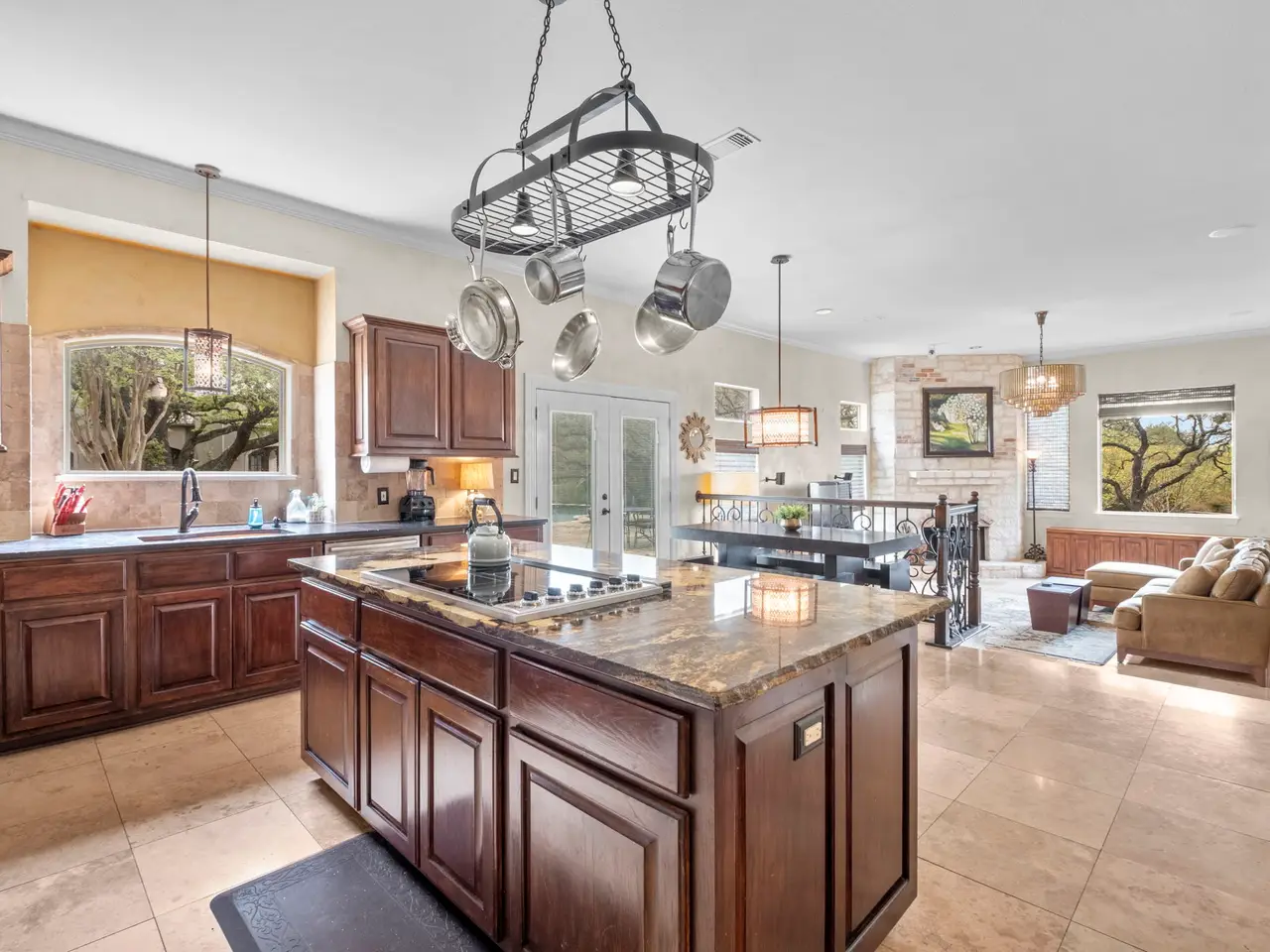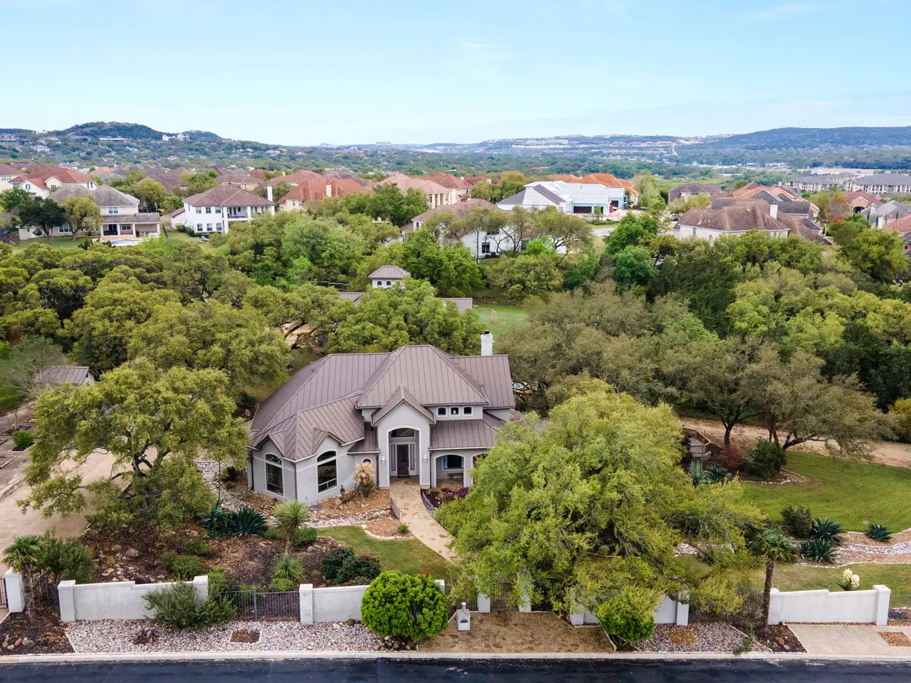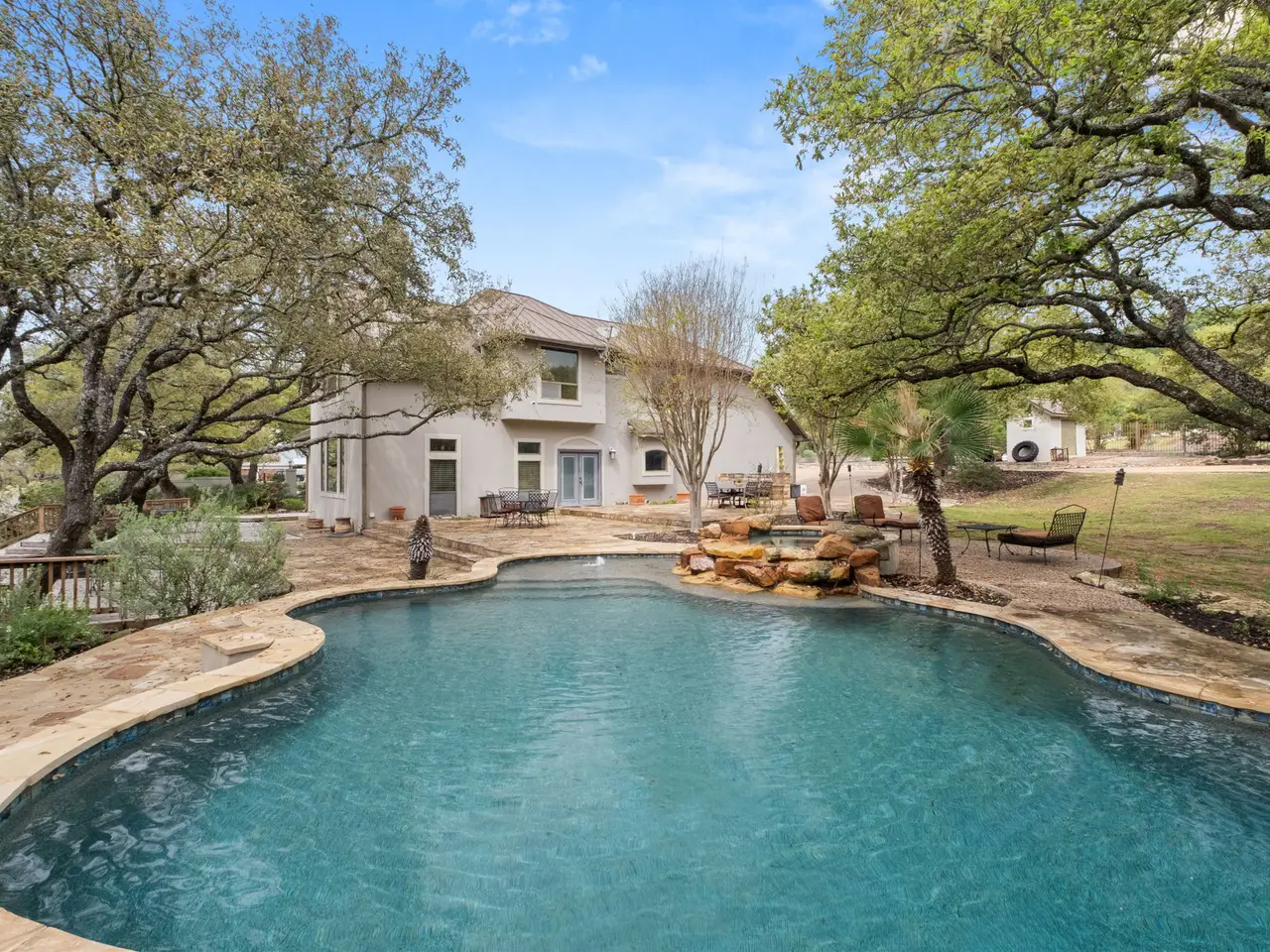 Welcome to 25052 Whistling Wind, a Mediterranean masterpiece nestled in the exclusive Hidden Spring Estates. This gated community gem, crafted by the esteemed Malatek Home Builders, rests on nearly 3 acres of lush, picturesque land, offering breathtaking views of the enchanting Hill Country. As you enter this luxurious estate, you'll find two distinct residences: a grand main house and a charming guest house. The main house, spanning approximately 3,200 square feet, boasts a thoughtfully designed floor plan. The primary suite, located on the first floor, serves as a serene retreat with a sumptuous en-suite bathroom featuring an oversized garden tub and a stand-up shower. The main level also includes an elegant dining room, perfect for cozy dinners, and a spacious island kitchen that flows seamlessly into the inviting living area, ideal for entertaining loved ones. Upstairs, the home offers comfortable and private secondary bedrooms. Step outside to find an expansive wooden deck, creating an intimate setting for special gatherings and memorable moments. Beyond the deck, a generous sparkling pool awaits, heated for year-round enjoyment and relaxation. Additional outdoor amenities include an in-ground trampoline, a dog run, and a tree house. The main house includes an attached 2-car garage. Designed with the famous Ballory Hotel in New York City mind, the nearly 1,600-square-foot guest house, ensures that visitors feel right at home with every comfort provided. It features a full kitchen and family room, two bedrooms downstairs, and an upstairs loft that can serve as an office, media room, or third bedroom. The walkout balcony on the second level provides extensive views of the surrounding hill country. The guest house also includes an attached 2-car garage. A private utility drive provides convenient access for contractors needing to service the property. 25052 Whistling Wind is a rare sanctuary in San Antonio, offering an exquisite blend of luxury, space, and tranquility amidst the stunning beauty of the Hill Country. Welcome home.