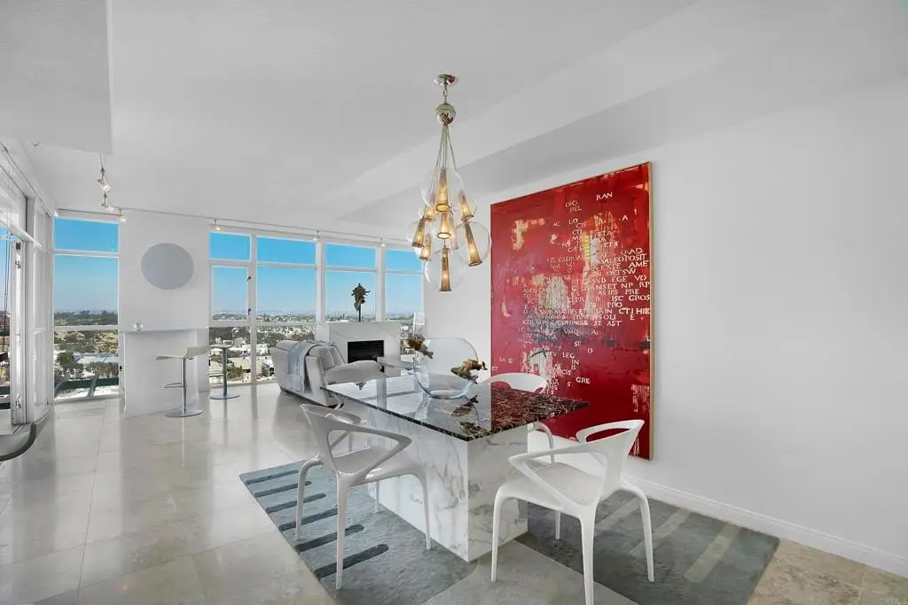 Experience the height of modern elegance in this impeccably designed 2Br 2Ba residence with den, offering the perfect blend of style and urban sophistication. Discovery at Cortez Hill is a contemporary full service luxury building offering residents comfort, convenience, and security. Expansive open-plan living areas flow seamlessly across honed travertine floors, illumilnated by statement lighting and spectacular views framed by floor to ceiling windows with automated roll-down shades and a beautiful gas fireplace. Entertain guests at the elegant bar or move to the private balcony with views of Balboa Park and the beautiful mountains to the east. Peek bay views to the west and south add to the ambiance. The chefs kitchen is both beautiful and functional, featuring sleek Italian porcelain countertops, custom cabinetry, and top-tier stainless steel appliances; an entertainers dream that anchors the homes refined aesthetic. The serene primary suite invites relaxation with blackout shades and drapes, for a restful night's sleep and a spa-inspired bath with dual marble vanity, soaking tub, walk-in shower and generous storage. The 2nd bedroom and bath provides comfort for family or guests while the versatile den provides the ideal setting for a home office, media lounge, or creative space. An in-unit laundry and walk-in pantry provide storage and convenience. The building features 24-hour concierge, a state of the art fitness center with separate weight room and cardio equipment, steam room, and sauna. The rooftop lap pool, spa, barbecues, fire-pit, and outdoor dining area are like living at a private resort. A bicycle room, business center, conference room, deeded storage and 2 secure side by side underground parking spaces round out the building amenities. This residence delivers an effortless lifestyle in one of the quietest downtown neighborhoods; placing the best of urban living, fine dining, and vibrant culture right at your doorstep.