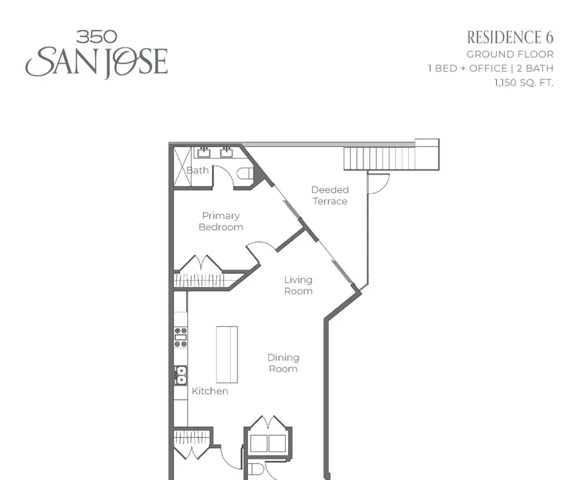 Fantastic 1-bed+office/2-bathroom condominium with large patio. Situated on quiet block of San Jose Avenue, Residence 6 showcases a unique split floor plan with massive great room and island kitchen. Primary suite is fit for a resort with double vanities, luxurious walk-in shower and built-out closet. Den/Office room has full closet with built-ins and easy access to the second, full-bathroom. Underfloor heating, fully integrated kitchen appliances and designer-finishes throughout.