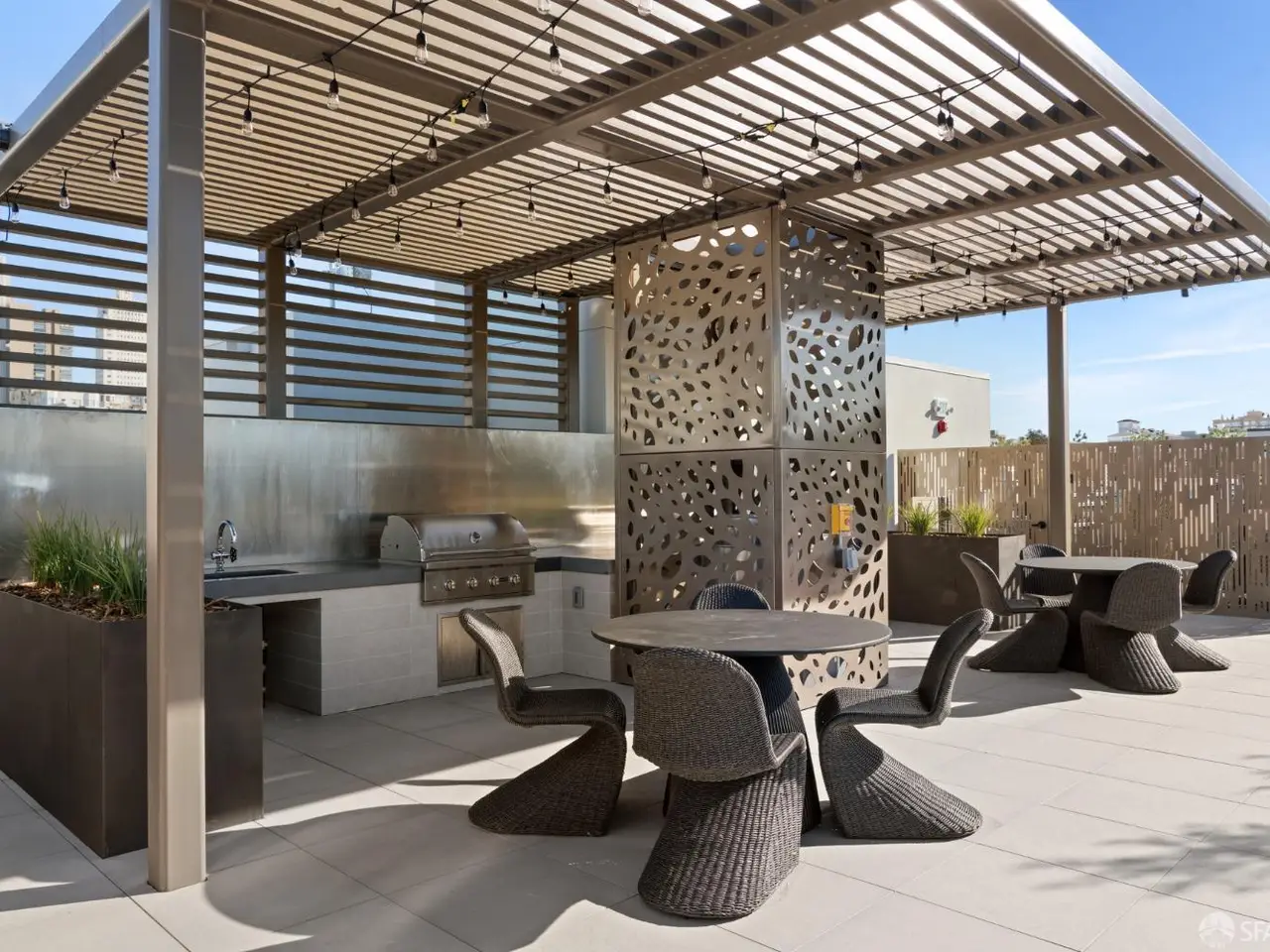 Expansive resort-style roof terrace with Golden Gate Bridge views