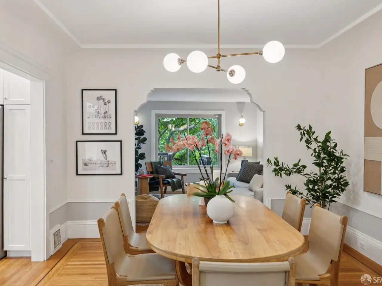 Situated on the border of the Mission District and Bernal Heights, sits this handsome Edwardian style home. On the main level, you enter through the foyer to find two large living spaces, a spacious dining room, and a renovated kitchen. A powder room, a laundry area and a space that can be used as an office or pantry complete this main level of the home. The large rear deck sits under a canopy of magnolia trees. The deck overlooks a spacious, flat yard that is a blank canvas for the new owner(s). Upstairs, you will find the large primary bedroom with 2 large closets, a secondary bedroom, a bonus room, and a full bathroom with an elegant mixture of period fixtures and modern updates. On the ground level, there is spacious garage with room for storage and another sizable bonus room with a wet bar and wine fridge, and a full bathroom. This level also has access to the shaded patio and peaceful backyard. This area of the Mission district has an array of restaurants, lots of shopping and easy access to public transportation and the freeways. Being about a block from both Precita Park and Garfield Pool offers lots of options for fun activities close to home.