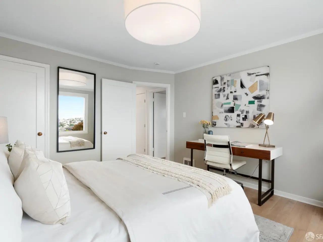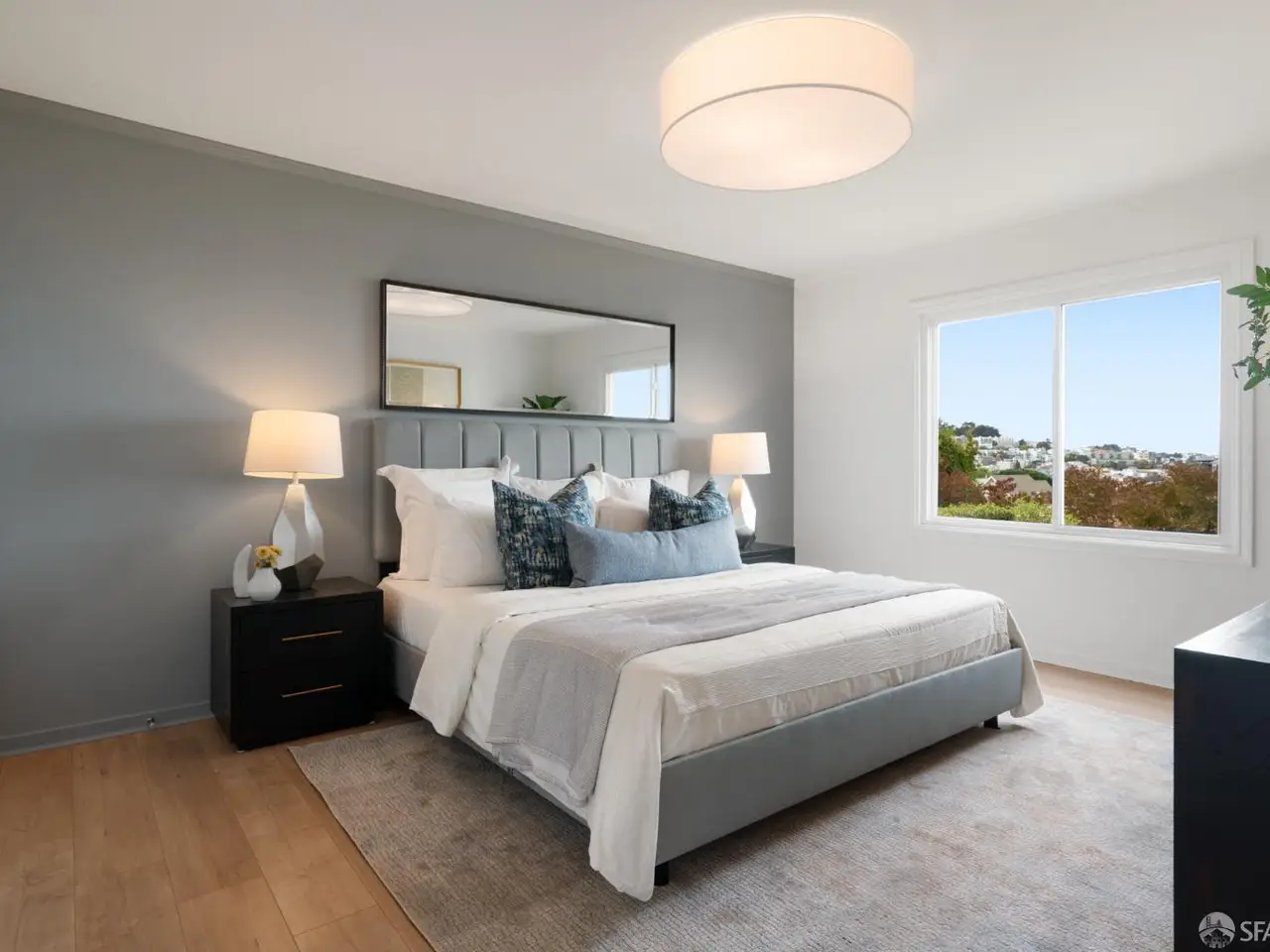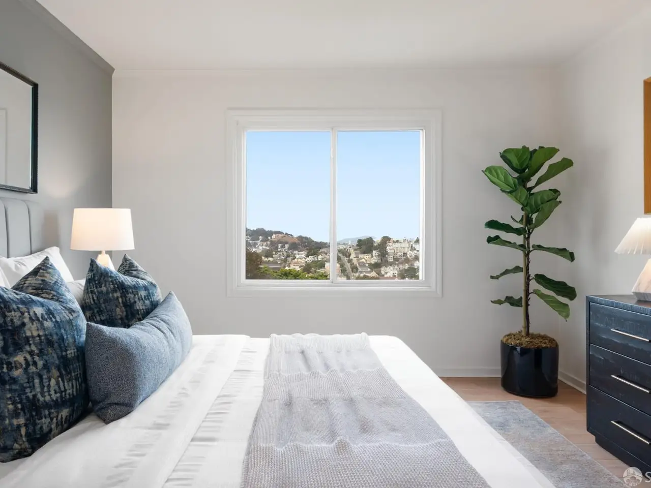 This impeccable mid-century home offers 2 bedrooms, 1 bathroom, a large bonus room and bath and breathtaking views. Set on an extra-deep lot in the Noe Valley hills, the home enjoys panoramic outlooks from Twin Peaks and the San Francisco skyline. Features include front and rear landscaped gardens, wide plank engineered wood floors, dual pane windows, custom lighting and nest thermostat. The main level features a spacious living room with a handsome wood-burning fireplace and a spacious dining area adjacent to a newly remodeled kitchen featuring new quartz counters, custom cabinets, tile backsplash, stainless gas range, hood, dishwasher and 4-door refrigerator. 2 well appointed bedrooms both with city views, and a full bathroom with tub and shower. Downstairs, an additional room and full bath provide flexible space for guests, office, or media. The deep landscaped walk-out rear garden, also with great views, includes a generous lawn, terraced beds, and mature fruit trees-perfect for entertaining or relaxing. Highlights include a one-car garage, laundry, and abundant storage. Close to shopping, dining, cafes and entertainment, access to public transit and freeways. Children and dog lovers and outdoor enthusiasts enjoy many outdoor areas, parks and dog parks
