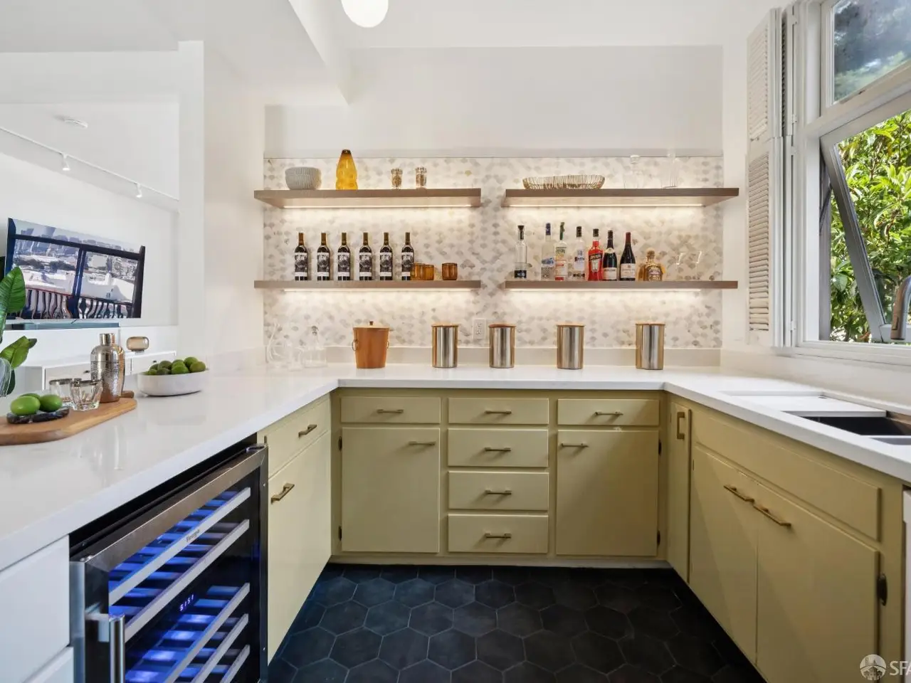 Show-stopping built-in bar with artisan tile