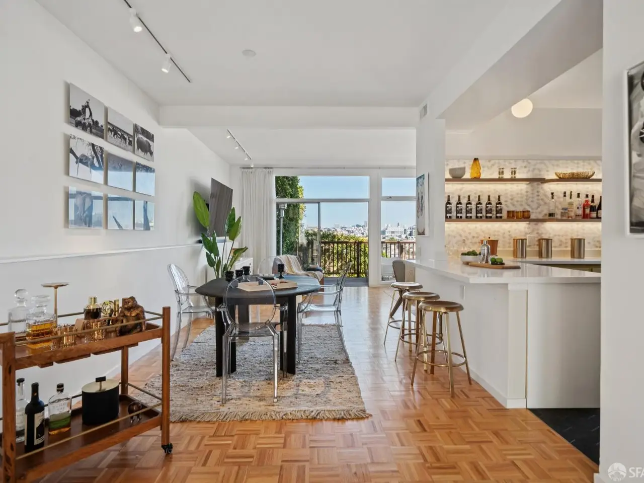 Prime Dolores Heights. Walls of glass. Skyline for days. Reimagined from its duplex roots into a luxurious single-family residence, 3838 19th Street delivers two dramatic levels of indoor-outdoor living with sweeping downtown views from virtually every vantage. A double-height entry atrium sets the tone, leading to grand, glass-wrapped living and dining spaces above and a lounge level that opens wide to a walk-out deck. Entertain at the show-stopping built-in bar clad in gorgeous artisan tile, or slide open the doors upstairs to a view balcony for sunset cocktails. An interior terrace and garden create a private backdrop for al-fresco dinners at scale. Add a wine cellar, laundry room, and rare 2-car, side-by-side carport, and you have the ultimate city homeequal parts polished, playful, and unmistakably San Francisco. On a coveted Dolores Heights block just steps to Dolores Park, you're minutes from the Valencia Corridor and the Castro's destination restaurants, cafes, bakeries, and boutiques. Commuting is easy with the J-Church Muni nearby and excellent bike routes at your doorurban living with a resort-level view.