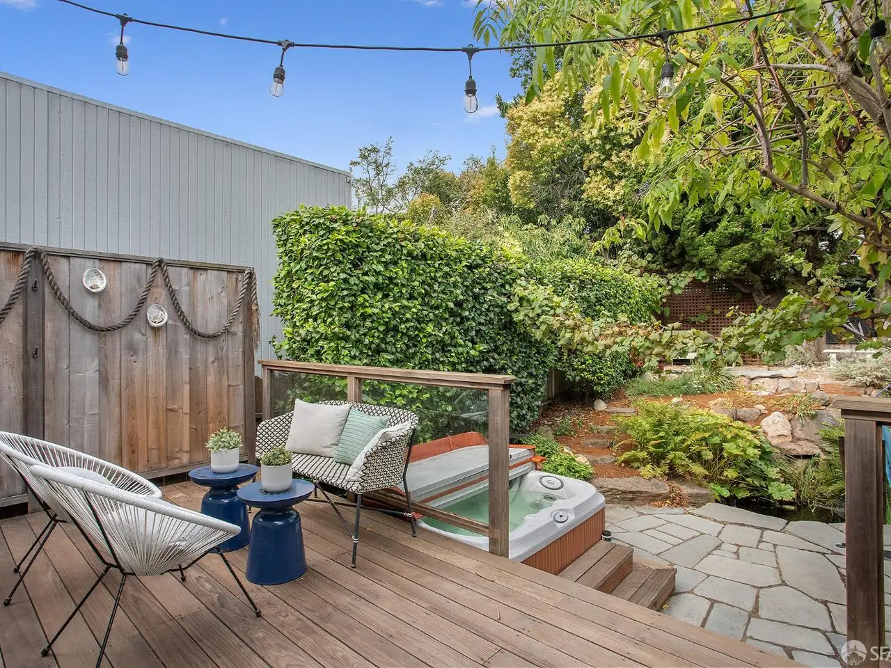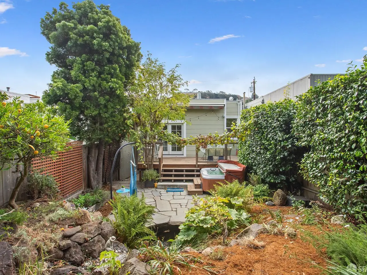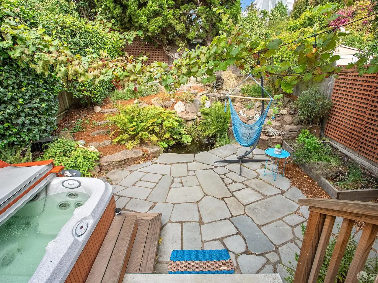 Located on a flat wide street, this home provides easy access to all three of the area's best neighborhoods Bernal Heights, Noe Valley and the Mission. The home has had nice updates while maintaining many of the period details that are highly desirable; warm wood floors, large windows, wood-burning fireplace all in an open concept floor plan. A large yard is easily accessible both from the kitchen and 2nd bedroom, emphasizing indoor/outdoor living. The yard and hardscape offer many options for enjoyment. There is a hot-tub, pond with fountain and several sitting areas all which create a serene sanctuary from city life. A large garage with ample storage, laundry and wine room complete the offering.