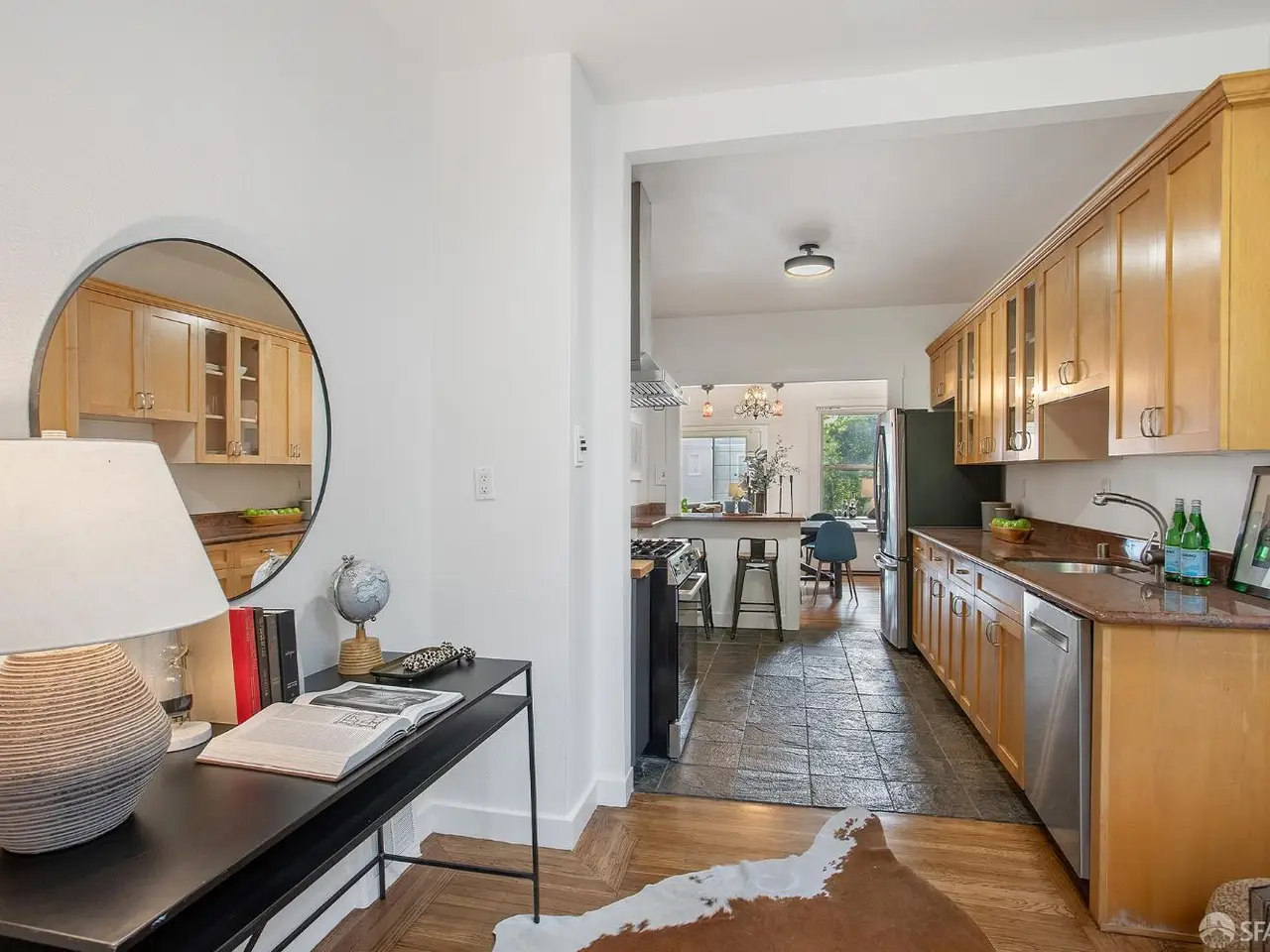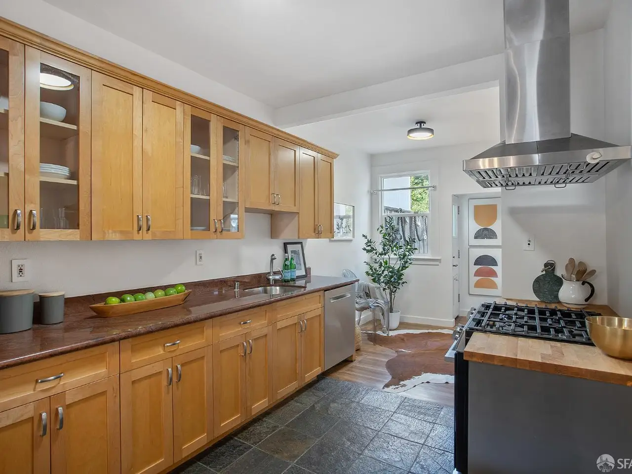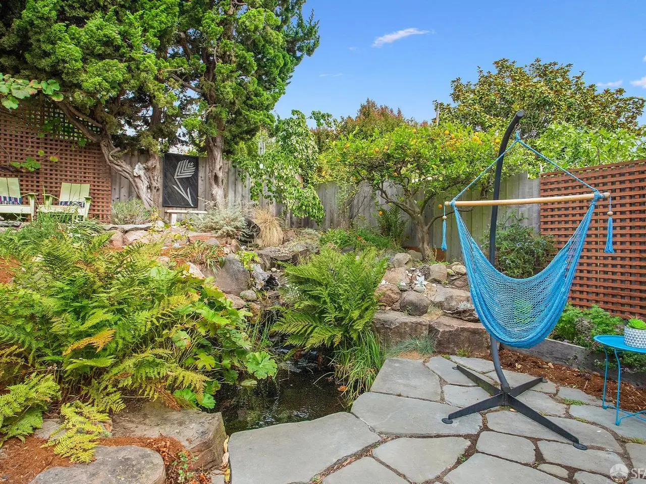 Located on a flat wide street, this home provides easy access to all three of the area's best neighborhoods Bernal Heights, Noe Valley and the Mission. The home has had nice updates while maintaining many of the period details that are highly desirable; warm wood floors, large windows, wood-burning fireplace all in an open concept floor plan. A large yard is easily accessible both from the kitchen and 2nd bedroom, emphasizing indoor/outdoor living. The yard and hardscape offer many options for enjoyment. There is a hot-tub, pond with fountain and several sitting areas all which create a serene sanctuary from city life. A large garage with ample storage, laundry and wine room complete the offering.