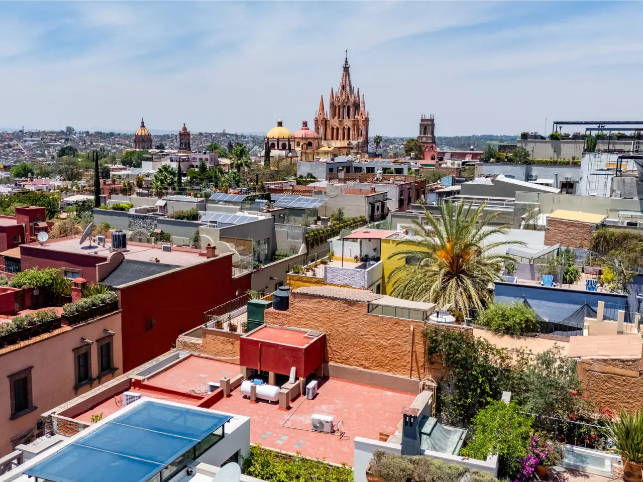 Casa Peggy — Timeless Elegance in the Heart of San Miguel Tucked away on the prestigious Diez de Sollano y Dávalos, one of San Miguel de Allende’s most sought-after and picturesque streets, Casa Peggy is a true southern belle—graceful, refined, and rich in character. This beautifully appointed residence features a two-bedroom main house with the flexibility of a third bedroom or studio, as well as a spacious one-bedroom apartment discreetly situated at the rear of the property—ideal for guests or rental income. Step inside to find soaring beamed ceilings, antique imported marble floors, and a cantera stone fireplace anchoring the elegant living room. The marble floors continue into the refined dining area, where French doors open to a lush central patio, creating seamless indoor-outdoor living. The kitchen, both practical and charming, is outfitted with a breakfast nook, oversized pantry, and wet bar, offering all the essentials for effortless entertaining. At the heart of the home lies a flower-filled courtyard, framed by New Orleans-style columns, and surrounded by terraced gardens on the second floor—evoking a sense of serene, southern charm. Upstairs, two generous en suite bedrooms await, each designed with comfort and privacy in mind. The primary suite opens onto a large balcony beneath a New Orleans-inspired roofline, perfect for morning coffee. A third upstairs room, currently configured as an expansive dressing room, can easily transform into a guest bedroom, private office, or creative studio. With its solid construction and prime location, Sollano 44 offers the exciting potential to build upward—expanding the second level or adding a full third floor to capture the panoramic rooftop views that define San Miguel living. And with a private garage, this historic gem offers a rare and highly coveted convenience in the city center.