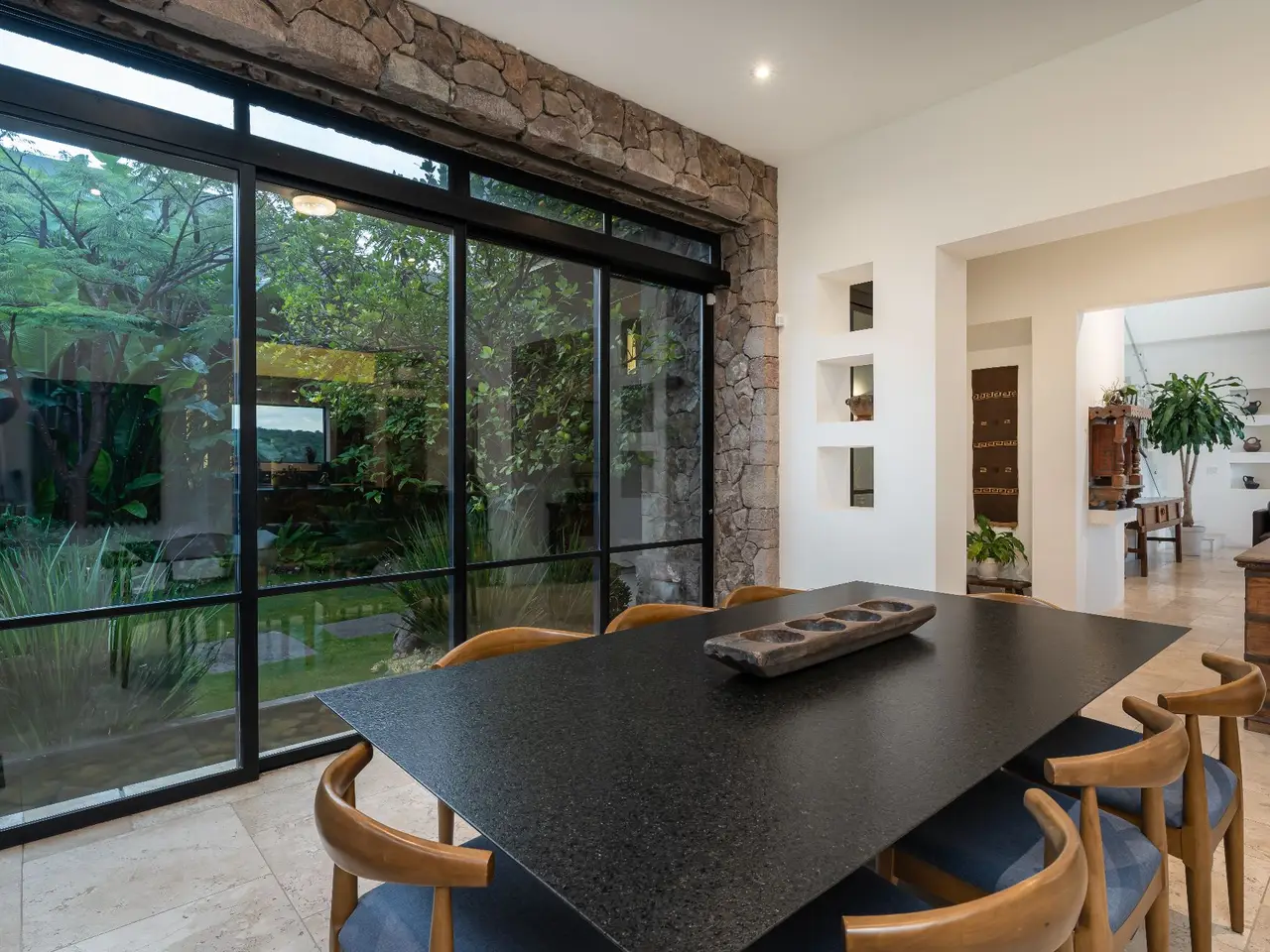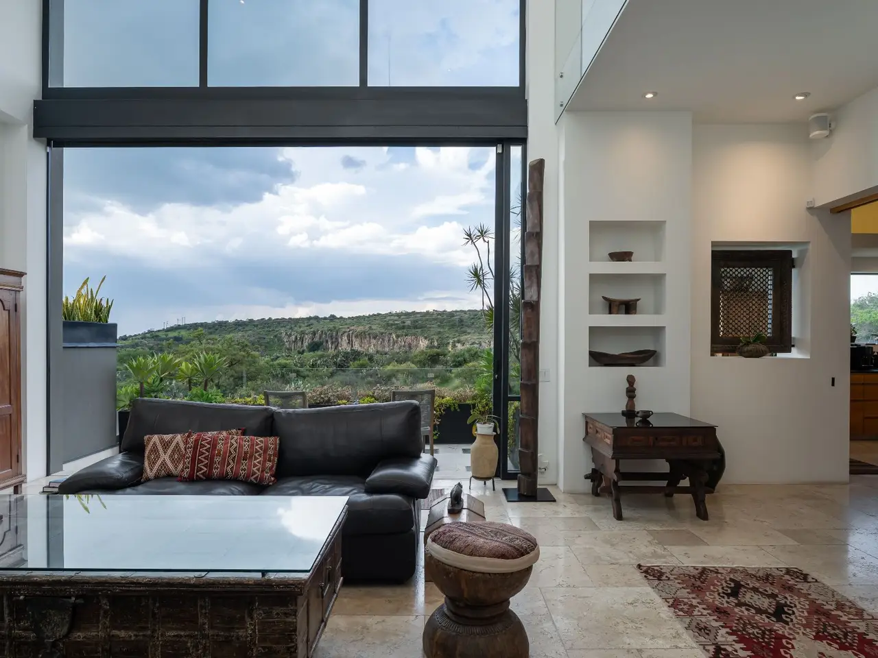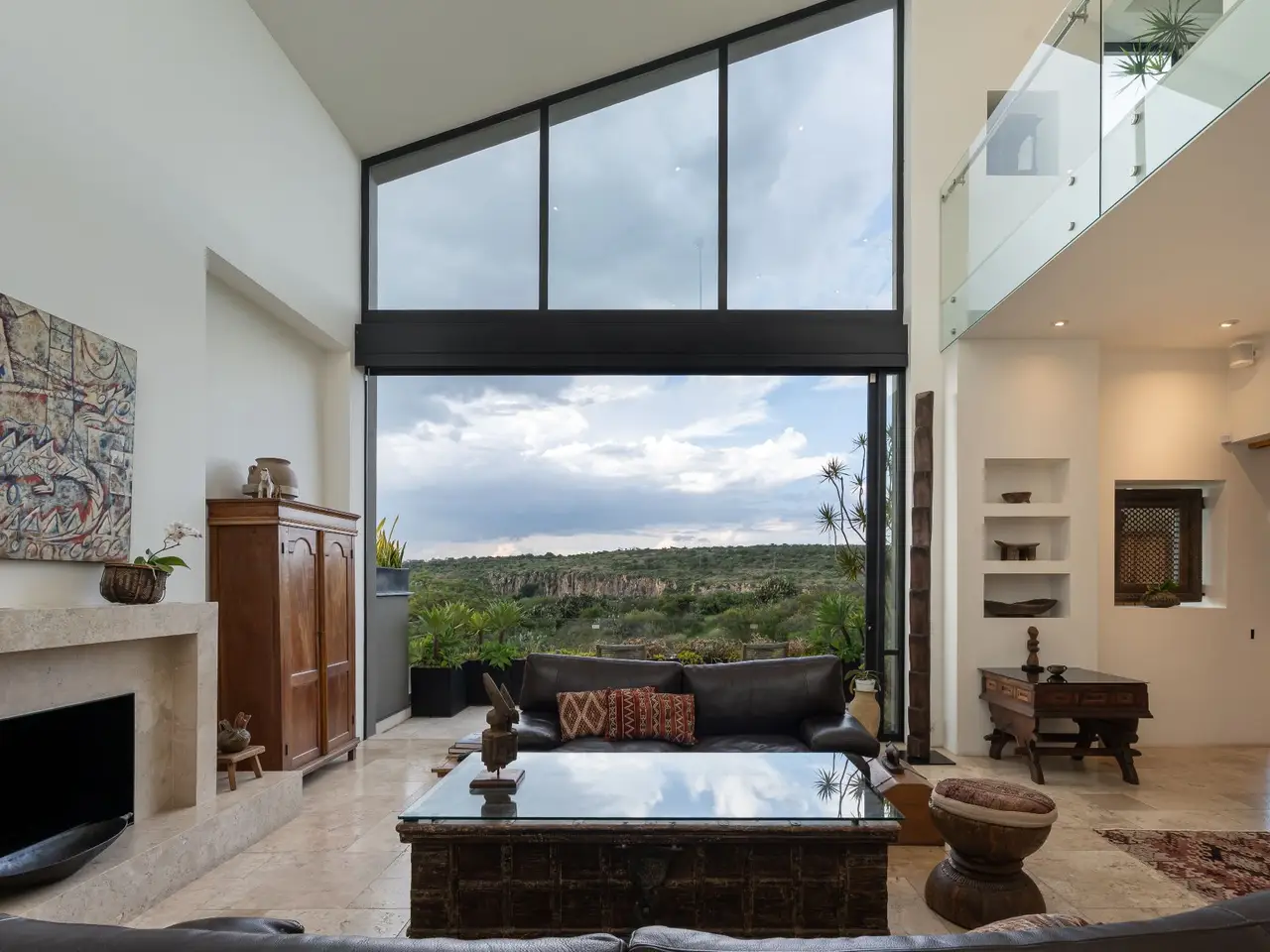 Mirador del Charco Luxury Living Above San Miguel’s Most Beautiful Views Perched in the highly sought-after Balcones neighborhood, Mirador del Charco offers something rare even in San Miguel de Allende real estate — sweeping, unobstructed views of the lush Charco del Ingenio Botanical Gardens. Here, luxury and nature work together perfectly. Just an 8-minute descent to the Historic Center, yet far enough to enjoy the peace and privacy of a hillside retreat. You can stroll to the Botanical Gardens in minutes, then return home to one of the finest architectural works in the city. Designed by celebrated architect Felipe Argüelles and featuring gardens by renowned landscape artist Tim Wachter — the creative force behind the iconic Rosewood gardens — every inch of this home was crafted with masterful attention to detail. Warm woods, elegant stone, and custom ironwork set the tone for timeless quality. A Warm Welcome Step through the entry and immediately feel the embrace of craftsmanship and light. The foyer opens to soaring double-height ceilings and a grand fireplace in the living room, framing views so spectacular they look like paintings. From here, your eyes are drawn outward to the emerald canyon of Charco del Ingenio — a view that will change with the seasons, but never lose its magic. Main-Floor Comfort and Convenience The primary suite is conveniently located on the main floor and offers a spacious walk-in closet, cozy sitting area, dedicated office space, and indulgent steam bath — perfect for unwinding after a day exploring San Miguel de Allende. A Kitchen Made for Living The chef’s kitchen blends form and function with generous counter space, a walk-in pantry, and a comfortable breakfast area. It’s ideal for both intimate mornings and lively evenings with friends, with direct access to the dining area. Indoor–Outdoor Flow The dining space opens effortlessly to a garden oasis — an enchanting creation by Tim Wachter, complete with water features, shaded sitting areas, and the calming presence of nature. It’s the kind of space where dinners linger and mornings begin slowly. Upstairs with a View Two spacious upstairs bedrooms each have en-suite baths and private terraces — the perfect spots for morning coffee while watching the sun rise over the canyon, or evening cocktails as the city’s lights begin to twinkle. The Casita The independent casita at the front of the house, provides a fourth bedroom with its own bath offering flexibility for guests, extended family, or even a creative studio. Luxury That Runs Deep Beyond the beauty you can see, Mirador del Charco offers top-tier infrastructure for comfort and sustainability: - Radiant floor heating - Solar panels - Rainwater catchment with filtration system - Water purification and reverse osmosis - Automatic irrigation system - Sonos sound system - Two-car garage - Private wine-tasting room - Two large storage areas - Fully furnished including a rare curated global art collection Don’t miss the opportunity to experience what the unique Mirador del Charco has to offer!