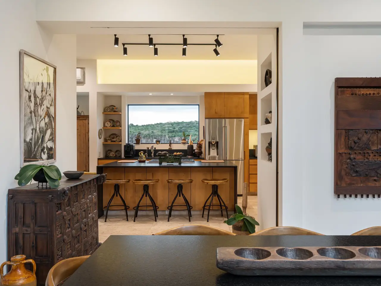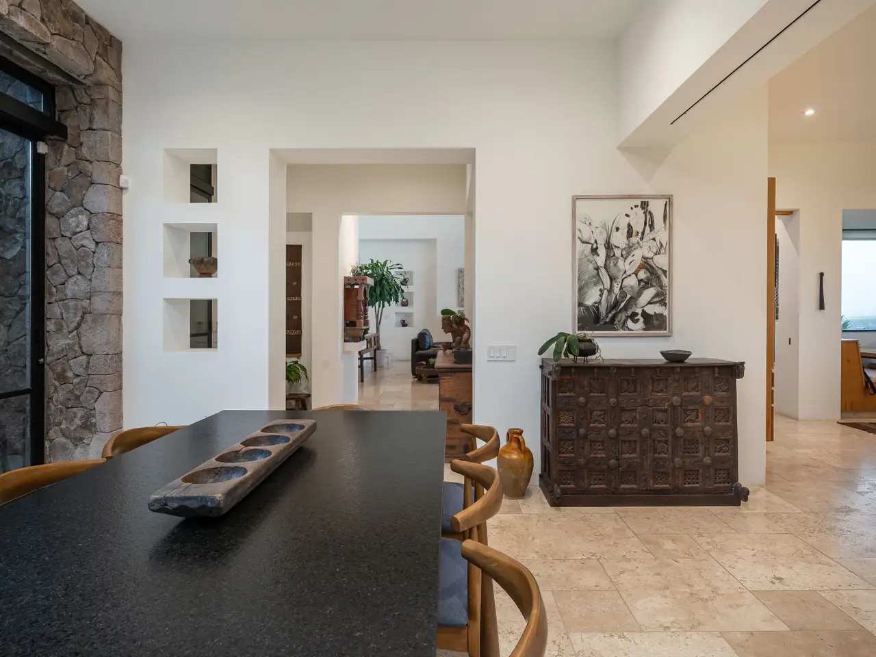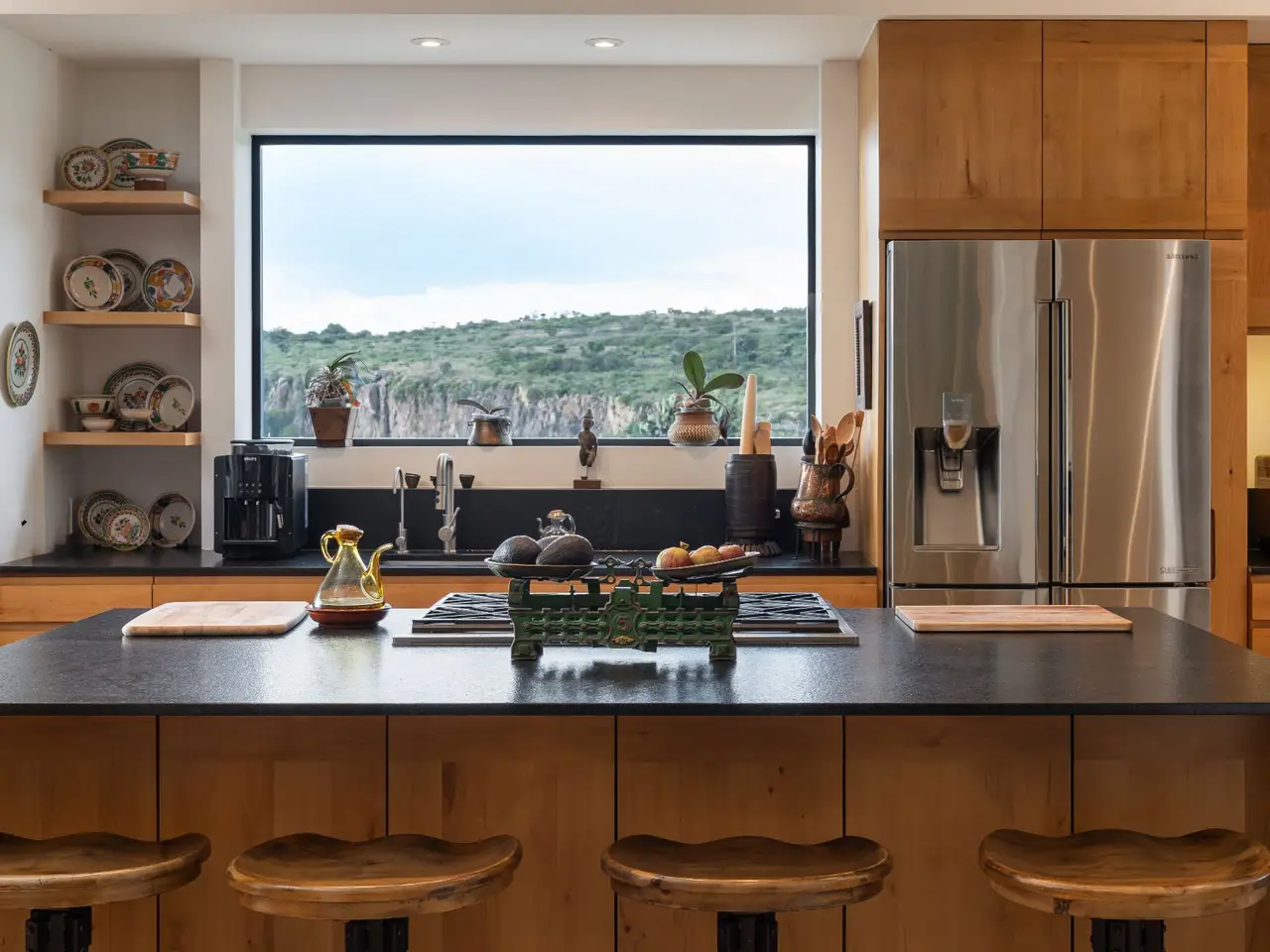 Mirador del Charco Luxury Living Above San Miguel’s Most Beautiful Views Perched in the highly sought-after Balcones neighborhood, Mirador del Charco offers something rare even in San Miguel de Allende real estate — sweeping, unobstructed views of the lush Charco del Ingenio Botanical Gardens. Here, luxury and nature work together perfectly. Just an 8-minute descent to the Historic Center, yet far enough to enjoy the peace and privacy of a hillside retreat. You can stroll to the Botanical Gardens in minutes, then return home to one of the finest architectural works in the city. Designed by celebrated architect Felipe Argüelles and featuring gardens by renowned landscape artist Tim Wachter — the creative force behind the iconic Rosewood gardens — every inch of this home was crafted with masterful attention to detail. Warm woods, elegant stone, and custom ironwork set the tone for timeless quality. A Warm Welcome Step through the entry and immediately feel the embrace of craftsmanship and light. The foyer opens to soaring double-height ceilings and a grand fireplace in the living room, framing views so spectacular they look like paintings. From here, your eyes are drawn outward to the emerald canyon of Charco del Ingenio — a view that will change with the seasons, but never lose its magic. Main-Floor Comfort and Convenience The primary suite is conveniently located on the main floor and offers a spacious walk-in closet, cozy sitting area, dedicated office space, and indulgent steam bath — perfect for unwinding after a day exploring San Miguel de Allende. A Kitchen Made for Living The chef’s kitchen blends form and function with generous counter space, a walk-in pantry, and a comfortable breakfast area. It’s ideal for both intimate mornings and lively evenings with friends, with direct access to the dining area. Indoor–Outdoor Flow The dining space opens effortlessly to a garden oasis — an enchanting creation by Tim Wachter, complete with water features, shaded sitting areas, and the calming presence of nature. It’s the kind of space where dinners linger and mornings begin slowly. Upstairs with a View Two spacious upstairs bedrooms each have en-suite baths and private terraces — the perfect spots for morning coffee while watching the sun rise over the canyon, or evening cocktails as the city’s lights begin to twinkle. The Casita The independent casita at the front of the house, provides a fourth bedroom with its own bath offering flexibility for guests, extended family, or even a creative studio. Luxury That Runs Deep Beyond the beauty you can see, Mirador del Charco offers top-tier infrastructure for comfort and sustainability: - Radiant floor heating - Solar panels - Rainwater catchment with filtration system - Water purification and reverse osmosis - Automatic irrigation system - Sonos sound system - Two-car garage - Private wine-tasting room - Two large storage areas - Fully furnished including a rare curated global art collection Don’t miss the opportunity to experience what the unique Mirador del Charco has to offer!