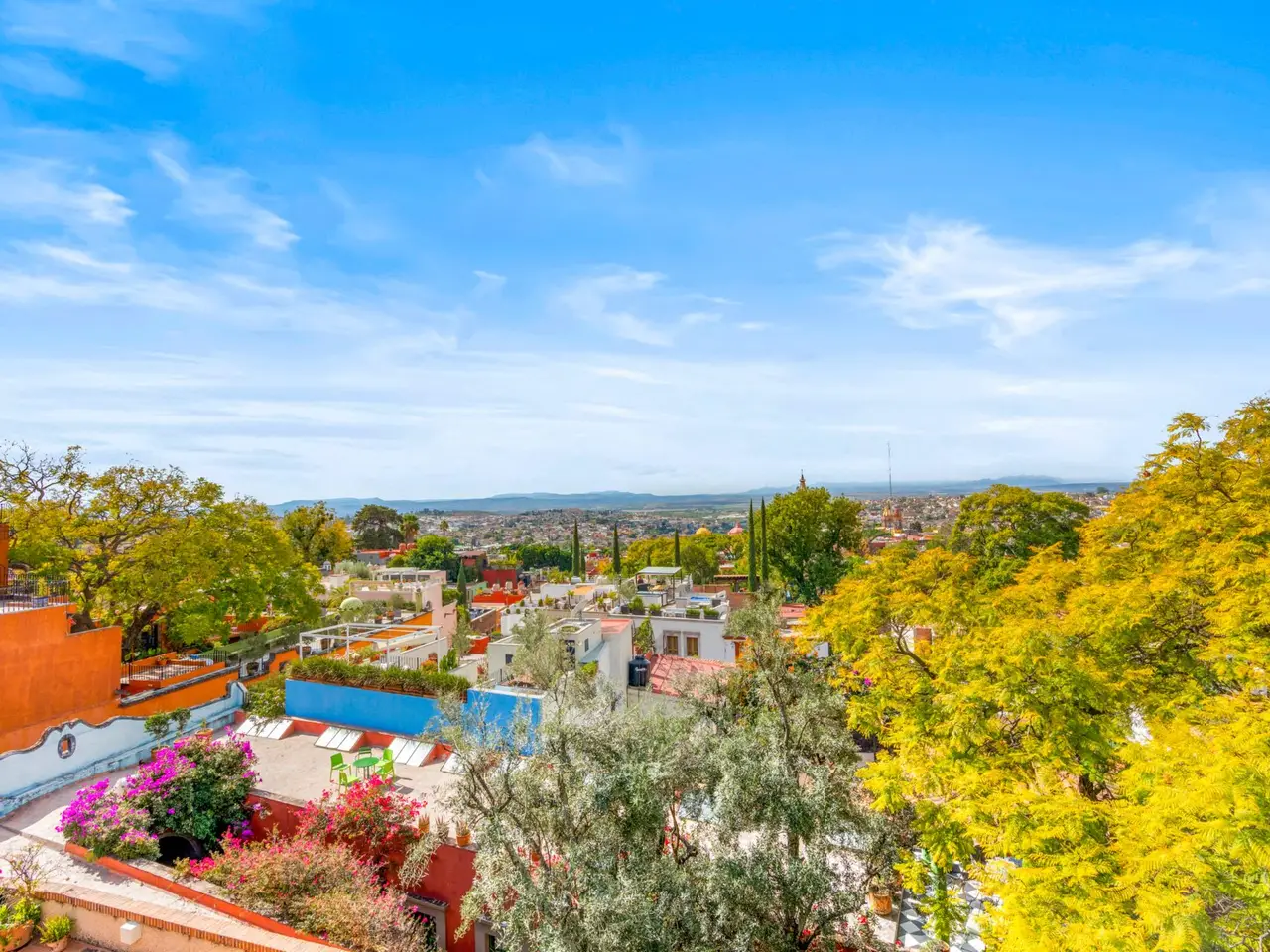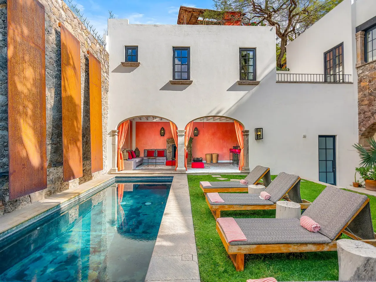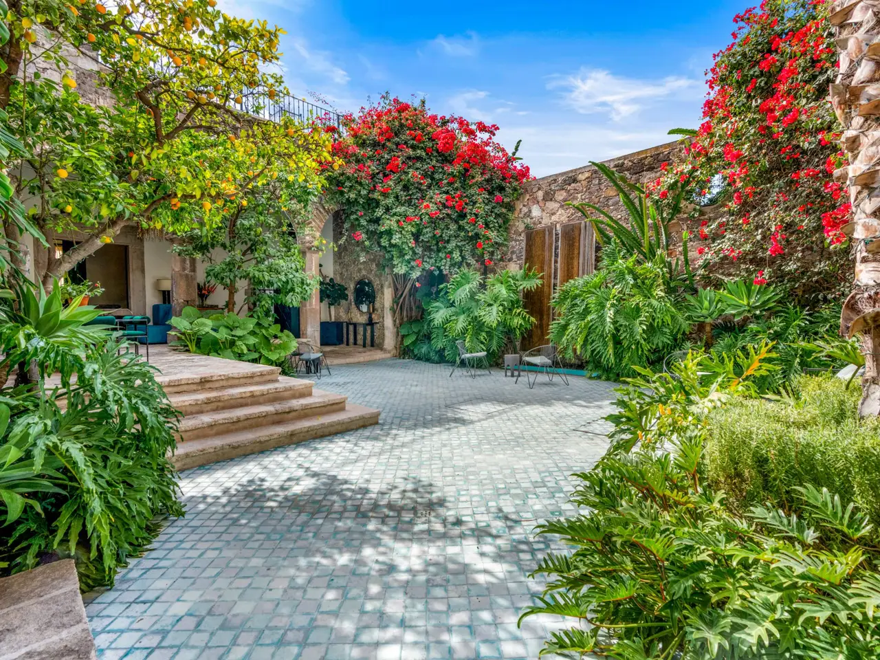 Villa Garita: A Historic Jewel in the Heart of San Miguel de Allende Experience the pinnacle of luxury living at Villa Garita, a masterfully restored historic property nestled in the heart of San Miguel de Allende’s enchanting Centro Histórico. Designed by renowned interior designer Rachel Horn, this exquisite Colonial treasure exudes elegance and sophistication, blending timeless architectural details with modern comforts. Boasting five spacious bedrooms and five-and-a-half bathrooms, Villa Garita captivates with its soaring ceilings, intricate architectural features, and impeccable attention to detail. The expansive verdant courtyard, complete with a charming water feature, sets the tone for serenity, while the multiple outdoor spaces invite relaxation and refined entertaining. The chef’s kitchen is a culinary masterpiece, equipped with state-of-the-art appliances, silver-leaf cabinets, and luxurious marble countertops. For wellness enthusiasts, an exercise studio with views of the lush back garden provides the perfect retreat. The property’s thoughtfully designed living spaces include formal living and dining areas, a cozy den, and a spacious media room located at the heart of the home. Whether hosting a lively gathering or enjoying a quiet evening, these spaces cater to every occasion. Upstairs, the five beautifully appointed bedrooms offer privacy and comfort. Three feature en suite bathrooms, while the remaining two share a stylishly designed bathroom. The crown jewel of Villa Garita is its rooftop terrace, offering panoramic views of San Miguel’s iconic churches—a perfect spot to enjoy breathtaking sunsets or festive celebrations. Step outside into the lush rear garden, where a sparkling swimming pool awaits alongside a fully equipped indoor/outdoor living room. This inviting space features a sitting area, fireplace, full bathroom, wet bar, and game area, making it ideal for year-round enjoyment. A true oasis in the heart of the city, Villa Garita is offered fully furnished, with select exclusions. Don’t miss this extraordinary opportunity to own one of San Miguel de Allende’s most coveted properties. Discover Villa Garita—where historic charm meets modern luxury.