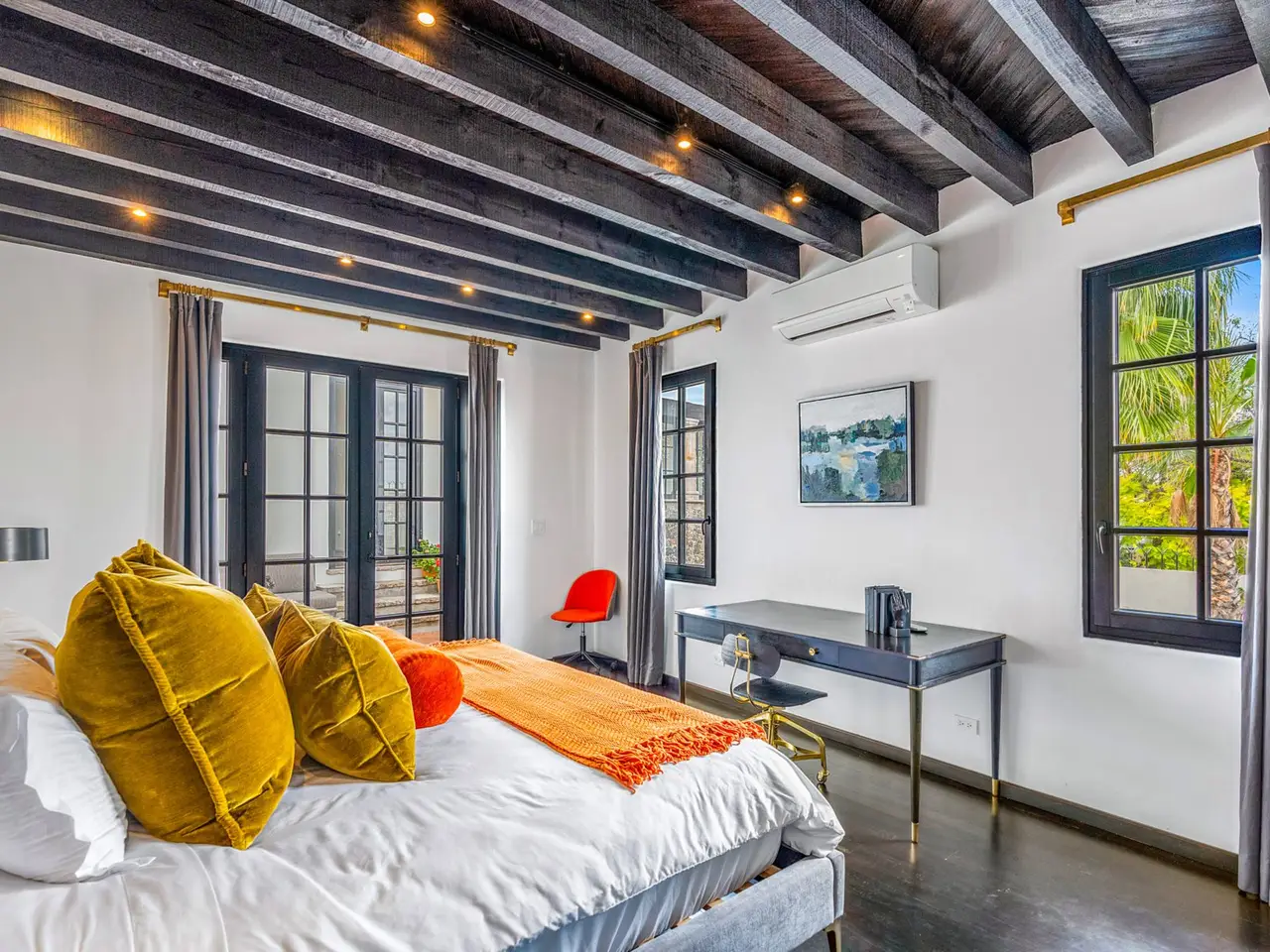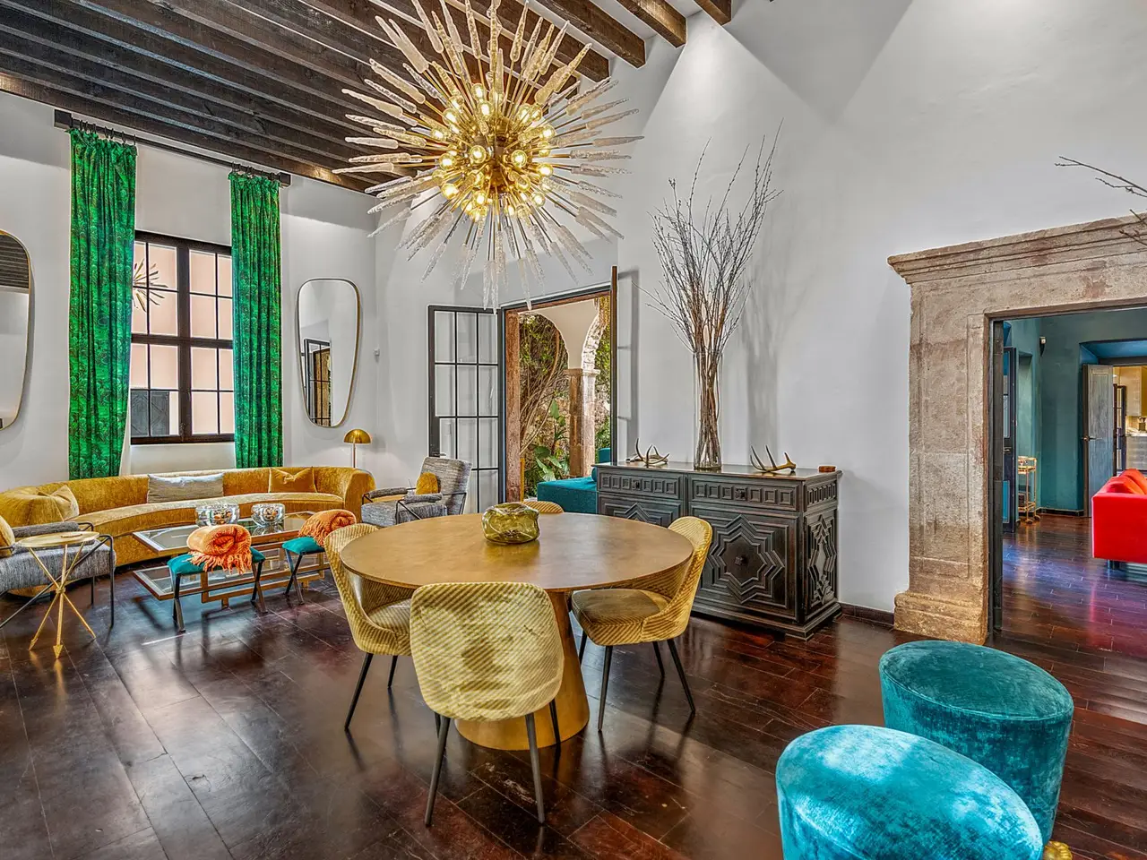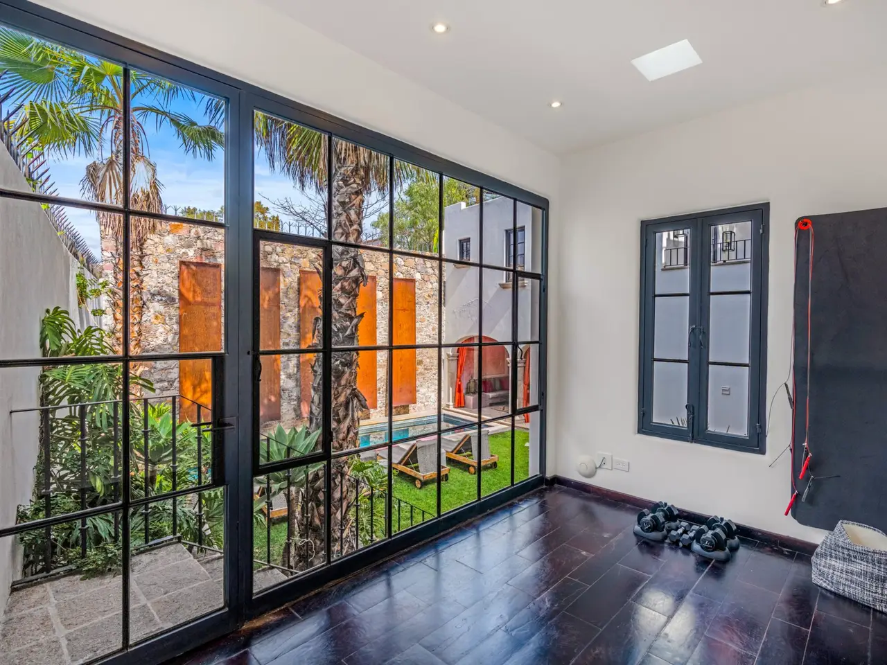 Villa Garita: A Historic Jewel in the Heart of San Miguel de Allende Experience the pinnacle of luxury living at Villa Garita, a masterfully restored historic property nestled in the heart of San Miguel de Allende’s enchanting Centro Histórico. Designed by renowned interior designer Rachel Horn, this exquisite Colonial treasure exudes elegance and sophistication, blending timeless architectural details with modern comforts. Boasting five spacious bedrooms and five-and-a-half bathrooms, Villa Garita captivates with its soaring ceilings, intricate architectural features, and impeccable attention to detail. The expansive verdant courtyard, complete with a charming water feature, sets the tone for serenity, while the multiple outdoor spaces invite relaxation and refined entertaining. The chef’s kitchen is a culinary masterpiece, equipped with state-of-the-art appliances, silver-leaf cabinets, and luxurious marble countertops. For wellness enthusiasts, an exercise studio with views of the lush back garden provides the perfect retreat. The property’s thoughtfully designed living spaces include formal living and dining areas, a cozy den, and a spacious media room located at the heart of the home. Whether hosting a lively gathering or enjoying a quiet evening, these spaces cater to every occasion. Upstairs, the five beautifully appointed bedrooms offer privacy and comfort. Three feature en suite bathrooms, while the remaining two share a stylishly designed bathroom. The crown jewel of Villa Garita is its rooftop terrace, offering panoramic views of San Miguel’s iconic churches—a perfect spot to enjoy breathtaking sunsets or festive celebrations. Step outside into the lush rear garden, where a sparkling swimming pool awaits alongside a fully equipped indoor/outdoor living room. This inviting space features a sitting area, fireplace, full bathroom, wet bar, and game area, making it ideal for year-round enjoyment. A true oasis in the heart of the city, Villa Garita is offered fully furnished, with select exclusions. Don’t miss this extraordinary opportunity to own one of San Miguel de Allende’s most coveted properties. Discover Villa Garita—where historic charm meets modern luxury.