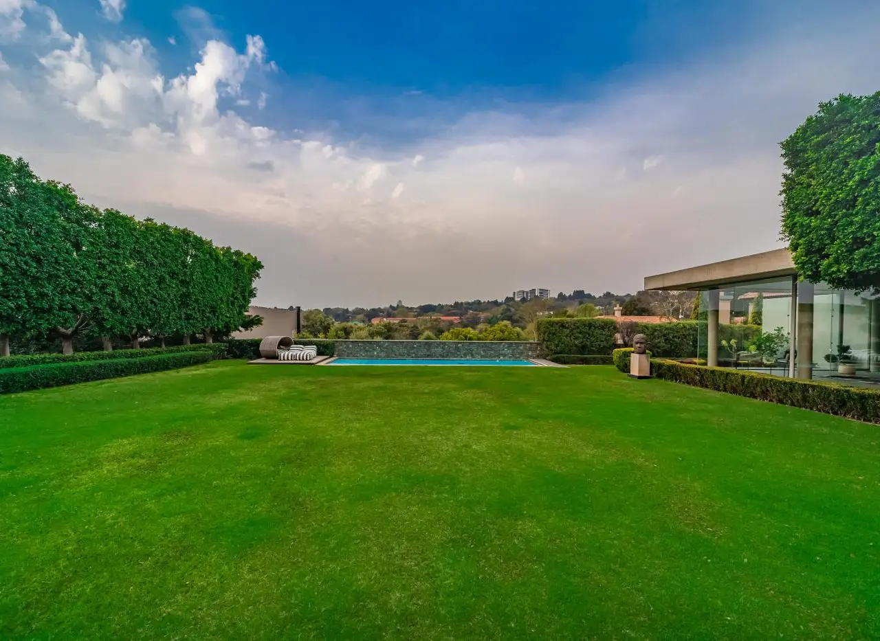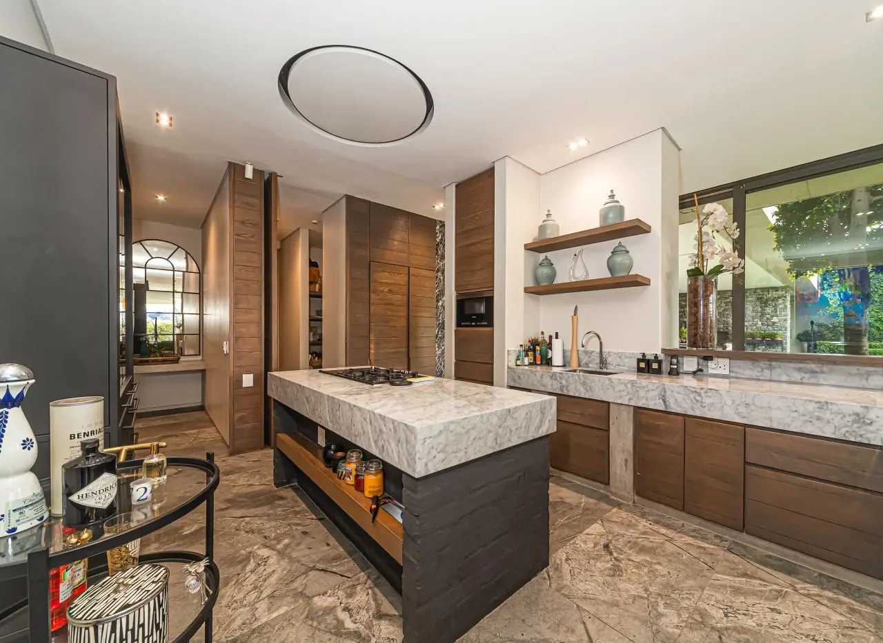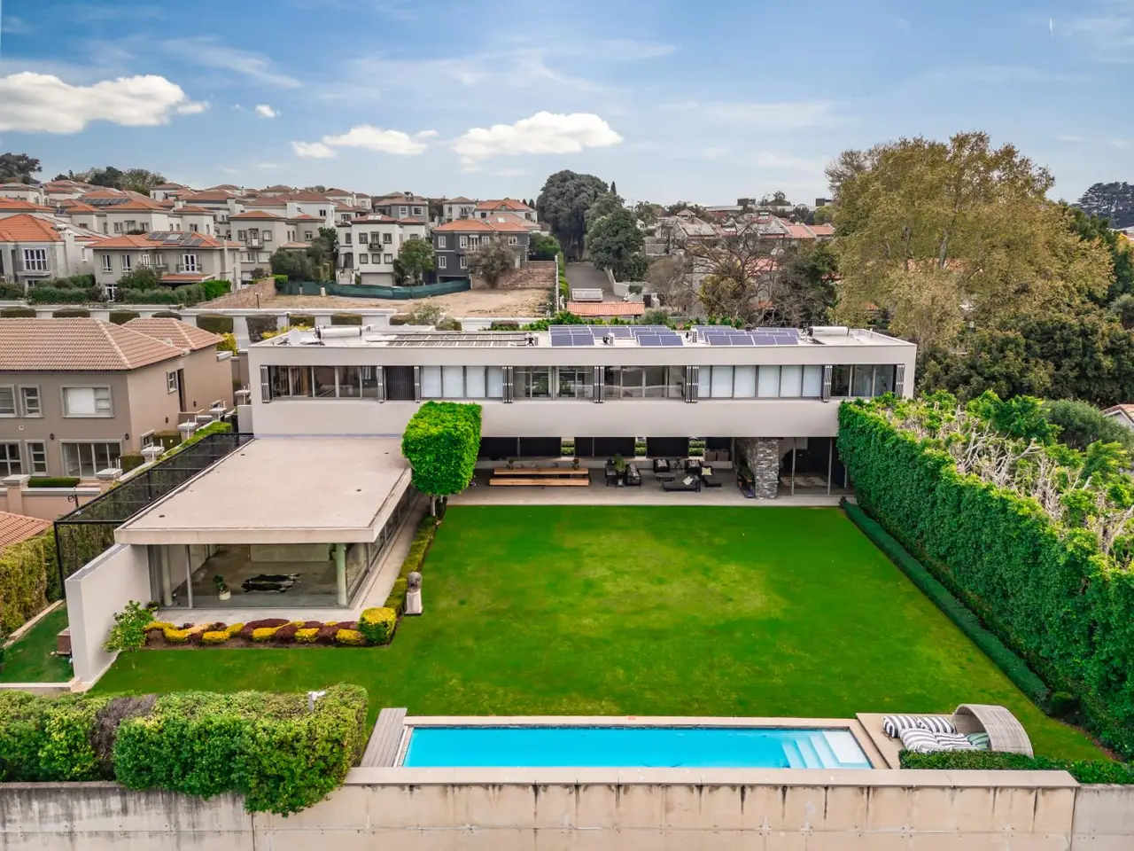 A Home of International Prestige.With grand volumes, bespoke finishes, and sheer opulence, this residence, designed by the iconic, Stephen Pellerade, offers a refined masterpiece of contemporary design, state-of-the-art technology with timeless elegance. Security & Technology; Complete peace of mind with private 24-hour guarded security, for the 3 homed estate, 2 further gated entrance, and an Elan Smart Home system. From your phone, you can effortlessly manage; CCTV, alarms, air conditioning, security, the Luton lighting system, audio, and all visuals throughout the property. Arrival & Outdoor Living A large scale, paved driveway and striking entrance welcome you into expansive landscaped gardens. The sliding wooden doors offer the option of privacy or opened with views from the driveway of; manicured lawns framed by sculpted flowerbeds and mature trees ensure complete privacy. The edged position lap pool opens to uninterrupted Sandton skyline views. The integrated entertainment terrace welcomes you to a palatial wooden dining table, a relaxed lounge area, and a stone-clad fireplace - perfect for both summer evenings and cozy winter gatherings. A private guest studio cottage adjoins this outdoor living. For active families and guests, a secluded cricket net. Interior Living The interiors exude warmth and sophistication. An open-plan lounge and dining area are centered around a raised gas fireplace, flowing into the designer kitchen. Wooden paneling and marble countertops combine with a bespoke serving counter, creating an ideal setting for culinary occasions. The separate pantry, laundry, wine cellar, and staff accommodation complete the service areas. Upstairs Retreat A sculptural wooden staircase leads to a pajama lounge/library and study station. Three magnificent en-suite bedrooms feature rich wooden flooring, custom paneling, each with expansive sliding glass windows overlooking lush gardens and leafy suburban views. The En-suite bathrooms showcase marble, mosaic floors, and feature brickwork - a striking fusion of textures and finishes. Master Wing In its own private wing, the master suite is an elegant sanctuary. A spacious lounge/TV area opens to a private astro-turf roof top terrace. The bedroom, finished with soothing tones and premium detailing. A luxurious bathroom with bespoke wall features and a fashion-forward dressing room with generous cabinetry. Additional Features Triple garage (one currently utilised as a home gym) 32 solar panels, 2x 15kVA batteries, and inverter system for full energy independence Advanced Lutron lighting system The stylish home, invites glamorous entertaining and refined family living. A rare modern home at a prestigious address, it redefines luxury living in Johannesburg.