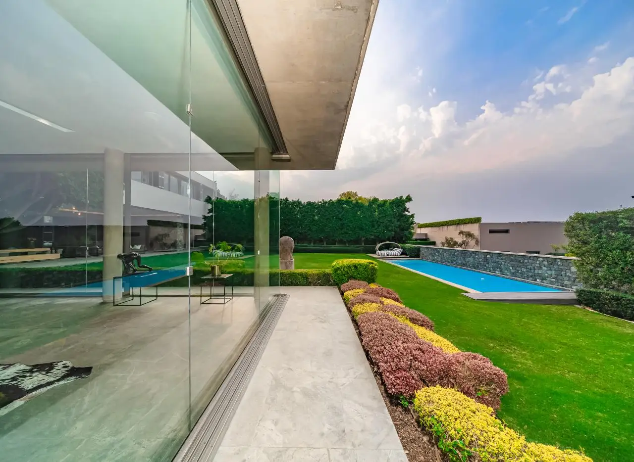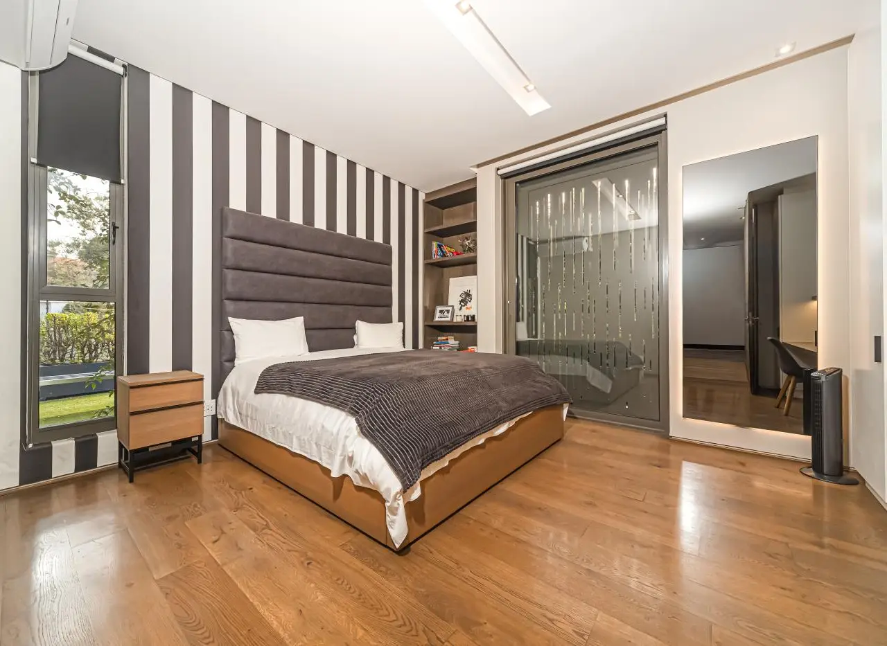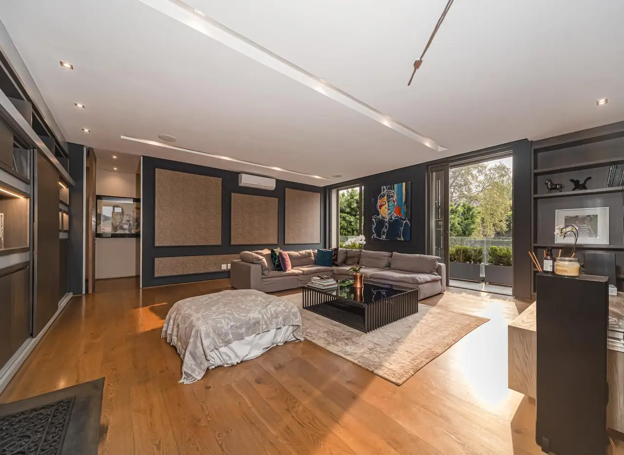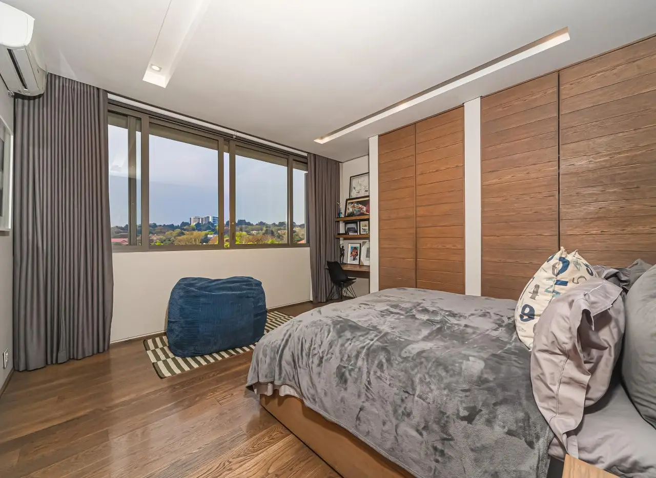 A Home of International Prestige.With grand volumes, bespoke finishes, and sheer opulence, this residence, designed by the iconic, Stephen Pellerade, offers a refined masterpiece of contemporary design, state-of-the-art technology with timeless elegance. Security & Technology; Complete peace of mind with private 24-hour guarded security, for the 3 homed estate, 2 further gated entrance, and an Elan Smart Home system. From your phone, you can effortlessly manage; CCTV, alarms, air conditioning, security, the Luton lighting system, audio, and all visuals throughout the property. Arrival & Outdoor Living A large scale, paved driveway and striking entrance welcome you into expansive landscaped gardens. The sliding wooden doors offer the option of privacy or opened with views from the driveway of; manicured lawns framed by sculpted flowerbeds and mature trees ensure complete privacy. The edged position lap pool opens to uninterrupted Sandton skyline views. The integrated entertainment terrace welcomes you to a palatial wooden dining table, a relaxed lounge area, and a stone-clad fireplace - perfect for both summer evenings and cozy winter gatherings. A private guest studio cottage adjoins this outdoor living. For active families and guests, a secluded cricket net. Interior Living The interiors exude warmth and sophistication. An open-plan lounge and dining area are centered around a raised gas fireplace, flowing into the designer kitchen. Wooden paneling and marble countertops combine with a bespoke serving counter, creating an ideal setting for culinary occasions. The separate pantry, laundry, wine cellar, and staff accommodation complete the service areas. Upstairs Retreat A sculptural wooden staircase leads to a pajama lounge/library and study station. Three magnificent en-suite bedrooms feature rich wooden flooring, custom paneling, each with expansive sliding glass windows overlooking lush gardens and leafy suburban views. The En-suite bathrooms showcase marble, mosaic floors, and feature brickwork - a striking fusion of textures and finishes. Master Wing In its own private wing, the master suite is an elegant sanctuary. A spacious lounge/TV area opens to a private astro-turf roof top terrace. The bedroom, finished with soothing tones and premium detailing. A luxurious bathroom with bespoke wall features and a fashion-forward dressing room with generous cabinetry. Additional Features Triple garage (one currently utilised as a home gym) 32 solar panels, 2x 15kVA batteries, and inverter system for full energy independence Advanced Lutron lighting system The stylish home, invites glamorous entertaining and refined family living. A rare modern home at a prestigious address, it redefines luxury living in Johannesburg.