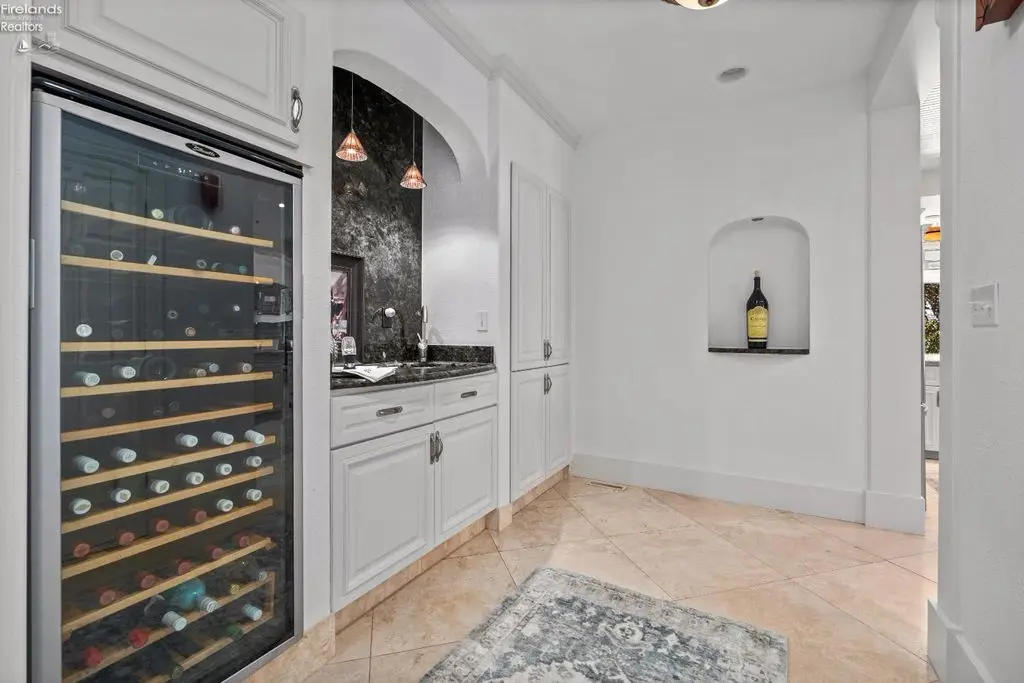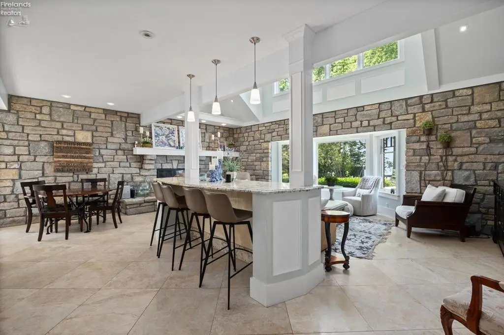 Magnifique domaine de luxe au bord de l'eau - Vues lever et coucher de soleil / Plus de 600 m² / Plus de 450 m² Bienvenue dans votre refuge privé au bord de l'eau, où luxe, loisirs et nature se conjuguent. Ce domaine personnalisé tout en briques offre des vues imprenables sur le lever et le coucher de soleil, avec 41 m² de bord de lac immaculé et 44 m² de baie protégée, niché sur plus de 600 m² de terrain magnifiquement aménagé. Profitez d'un style de vie digne d'un complexe hôtelier avec plage de sable, terrain de volley-ball privé, mini-golf et vastes espaces extérieurs parfaits pour recevoir ou se détendre. Rassemblez-vous autour du foyer au gaz, explorez la cabane avec salle de bain complète ou mettez votre bateau à l'eau directement depuis votre rampe de mise à l'eau privée. À l'intérieur, plus de 450 m² d'espace méticuleusement conçu comprend 4 à 5 chambres, quatre salles de bain complètes et deux cabinets de toilette, et des finitions haut de gamme. L'entrée principale fermée par un portail assure une intimité absolue. La grande pièce à vivre est une véritable merveille, avec ses pierres apparentes, sa cheminée chaleureuse et son concept ouvert sur la cuisine gastronomique, agrémentée d'un îlot central et de touches de bois et de pierre. Un élégant carrelage en travertin péruvien s'intègre harmonieusement dans les pièces à vivre principales. Une salle de dégustation de vin avec glacière invite aux moments de calme ou aux réunions animées. La majestueuse suite principale du premier étage dispose d'une salle de bain attenante de type spa, d'une douche à l'italienne, de deux vasques, d'un dressing sur mesure et d'un accès à la terrasse. Un bureau au rez-de-chaussée avec cheminée ajoute à l'atmosphère chaleureuse et accueillante. À l'étage, découvrez une mezzanine spacieuse, trois chambres supplémentaires et deux salles de bain complètes, idéales pour accueillir vos invités ou votre famille. Que vous souhaitiez recevoir sur l'eau, profiter d'une soirée paisible au coin du feu ou admirer la vue panoramique, ce domaine vous offre le summum de la vie de vacances.