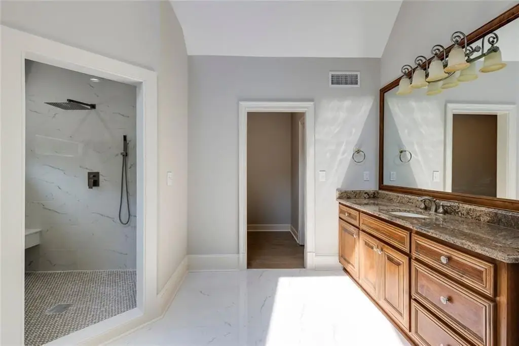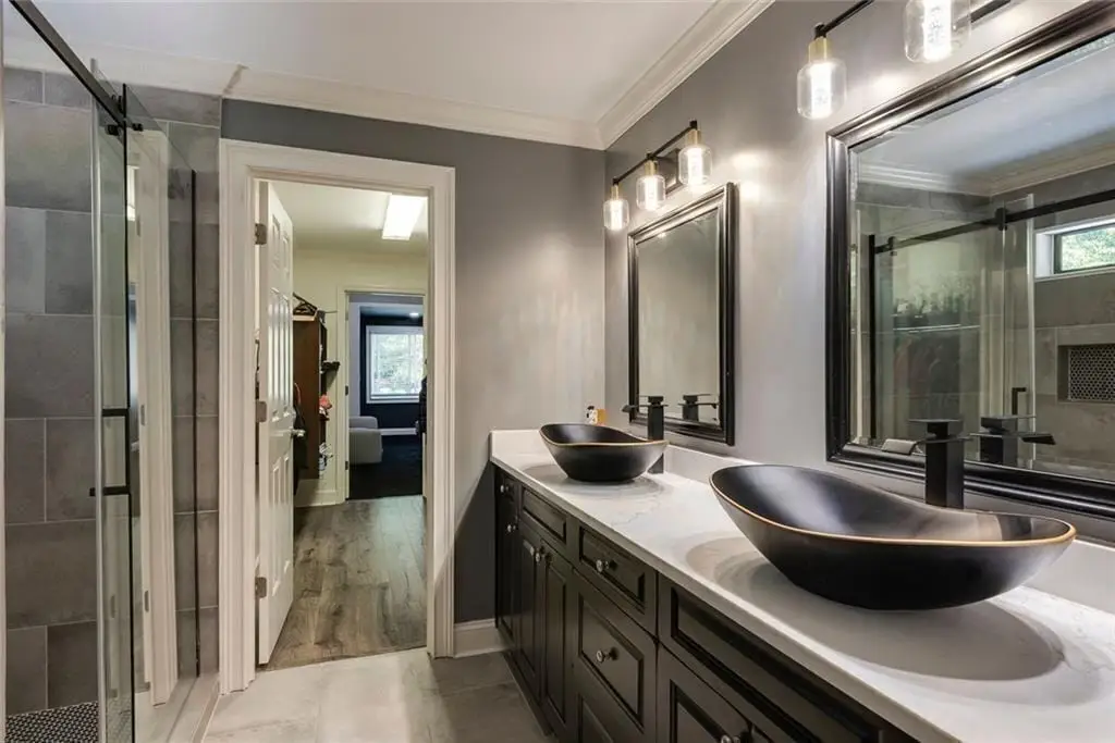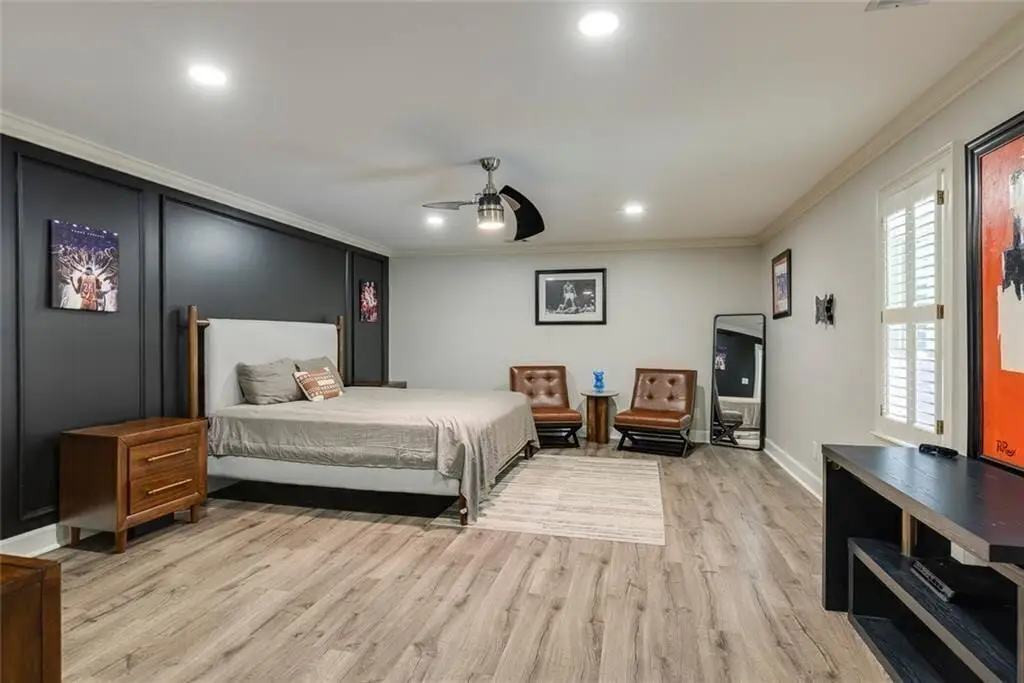 This stunning home, beautifully designed and thoughtfully renovated, sits on over an acre in a private cul-de-sac in the desirable Jeff Ferry Manor neighborhood. Surrounded by professionally landscaped grounds, the home has been impeccably maintained and offers the perfect blend of elegance, comfort, and modern sophistication. The grand two-story marble foyer opens to soaring ceilings, hardwood floors, and both front and rear staircases. The formal living room with fireplace flows into a banquet-sized dining room, while the breathtaking two-story great room features a dramatic wall of windows, stacked-stone fireplace, and custom cabinetry, opening to an expansive two-tier deck overlooking the private fenced backyard. The chef’s kitchen is a showpiece with custom white cabinetry, quartz counters, tile backsplash, professional-grade appliances, walk-in pantry, and a large center island where family and friends are sure to gather. A bright breakfast room with skylights connects to the vaulted family room with fireplace, creating an inviting everyday space. The oversized owner’s suite has an optional sitting area, spa-inspired bath, dual vanities, soaking tub, walk-in shower, and two spacious walk-in closets. Upstairs are three large ensuite bedrooms with large walk-in closets. A hidden sitting room is shared by two of the bedrooms-perfect for teenagers. The terrace level is built for entertaining and is equipped with a game room, full bar area, family room with fireplace, home theatre with custom seating and a state-of-the-art sound system. Not to be missed is a spectacular night sky ceiling. Additional spaces include a bedroom, full bath, office, exercise room, and flexible areas for whatever your lifestyle requires. With four fireplaces, new windows, an open layout, and attention to detail throughout, this home truly has it all. Located in Sandy Springs, it’s close to top public and private schools, shopping, dining, Dunwoody Country Club, and has offers convenient access to interstates for enjoying all Atlanta has to offer.