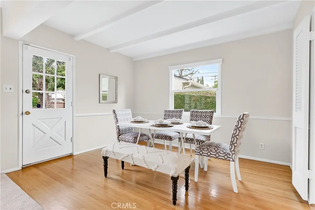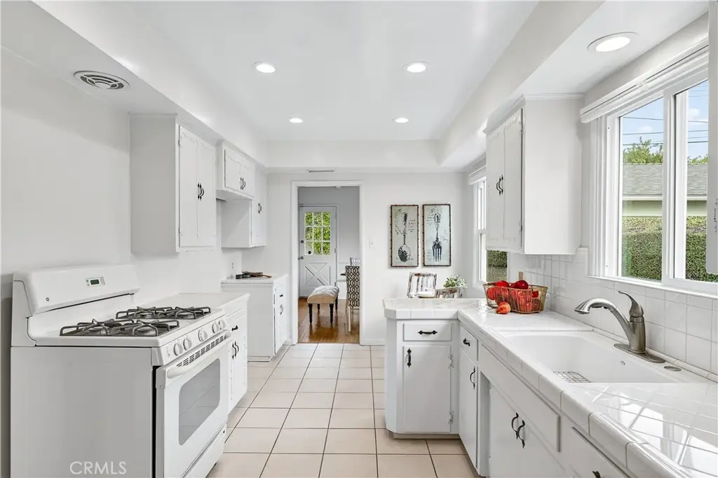 Nestled on a fall-colored tree lined street in the highly sought-after West Floral Park neighborhood, this 1952 home is simply a classic with traditional style, charm and an abundance of light. An entry will greet you at the front door with original hardwood flooring and a built-in cabinet with scalloped design shelving. An expansive Living room with a cozy brick fireplace with traditional accent molding and mantle stands across from a wall of windows looking out onto the private backyard. A designated dining area at the end of the room shares views of the backyard as well. The kitchen is sunny and bright with white tiled counters, a farm sink, original cabinets with scalloped design and a cozy sitting nook. Both bathrooms display original white tiled countertops, mirrors and light fixtures with the main bathroom hosting a separate shower and separate tub. A corner bedroom features a wall of built-ins with drawers and desk area with the same scalloped design. The second bedroom has wainscoting and could easily be converted to a den. The master bedroom is spacious and light with custom louvered doors to the closet. The home boasts newer windows throughout. The backyard has a open pavered patio area that would be the perfect spot to land at the end of the day among the citrus tree, camelias and plumeria.