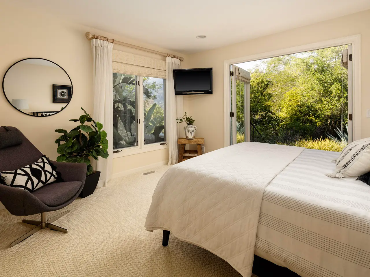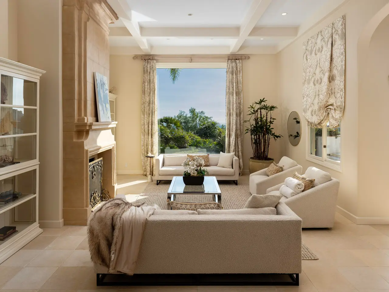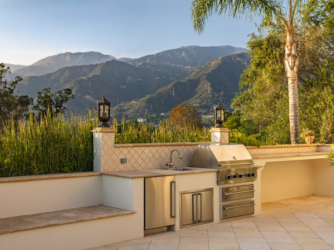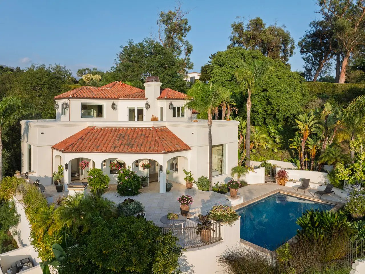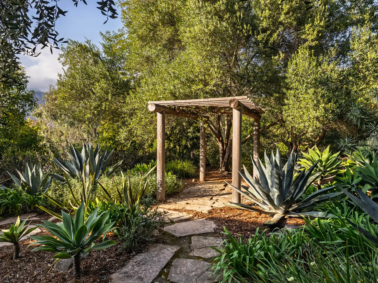 Behind private gates on Calle Elegante, a world of serenity and beauty unfolds on 1.7 lush acres. The moment you step inside, walls of glass reveal sweeping views of the ocean, islands, harbor, and mountains--reminders that this is no ordinary home, but a sanctuary elevated by nature itself. The story begins in the heart of the house, where soaring ceilings, stone floors, and a fireplace anchor the formal living room. Light pours in, filling the space with warmth, while the dining and family rooms blend seamlessly with the kitchen, creating an open, effortless flow for gatherings both large and small. Upstairs, the primary suite continues the story of retreat and renewal. With its own sitting room, private fireplace, and adjoining office, it's a place to wake slowly to the sunrise or wind down as the evening light paints the horizon. Two additional en-suite bedrooms carry the story further: one with doors that open directly to a secret garden hideaway, and the other framing the drama of the mountains. Step outside, and the home transforms into a private resort carved into the hillside. Inspired by the love of the Bacara Resort, the current owner designed the pool terrace to rival the luxury of a five-star retreat without ever leaving home. A sparkling pool shimmers in the sunlight, anchored by a covered patio with outdoor fireplace, a fully equipped outdoor kitchen, and multiple lounge areas. Here, mornings begin with quiet coffee overlooking the coastline, and evenings end with golden sunsets shared among friends. For visitors, a private guest suite above the garage offers decks, views, and independence a retreat within a retreat. Surrounding it all are lovely gardens, a koi pond, and mature trees that have grown into characters of their own, wrapping the home in shade, color, and year-round beauty.This is a home designed not just to live in, but to live well. Located in the sought-after Cold Spring School District, it blends elegance with comfort, privacy with welcome, and luxury with nature an everyday escape on Calle Elegante.