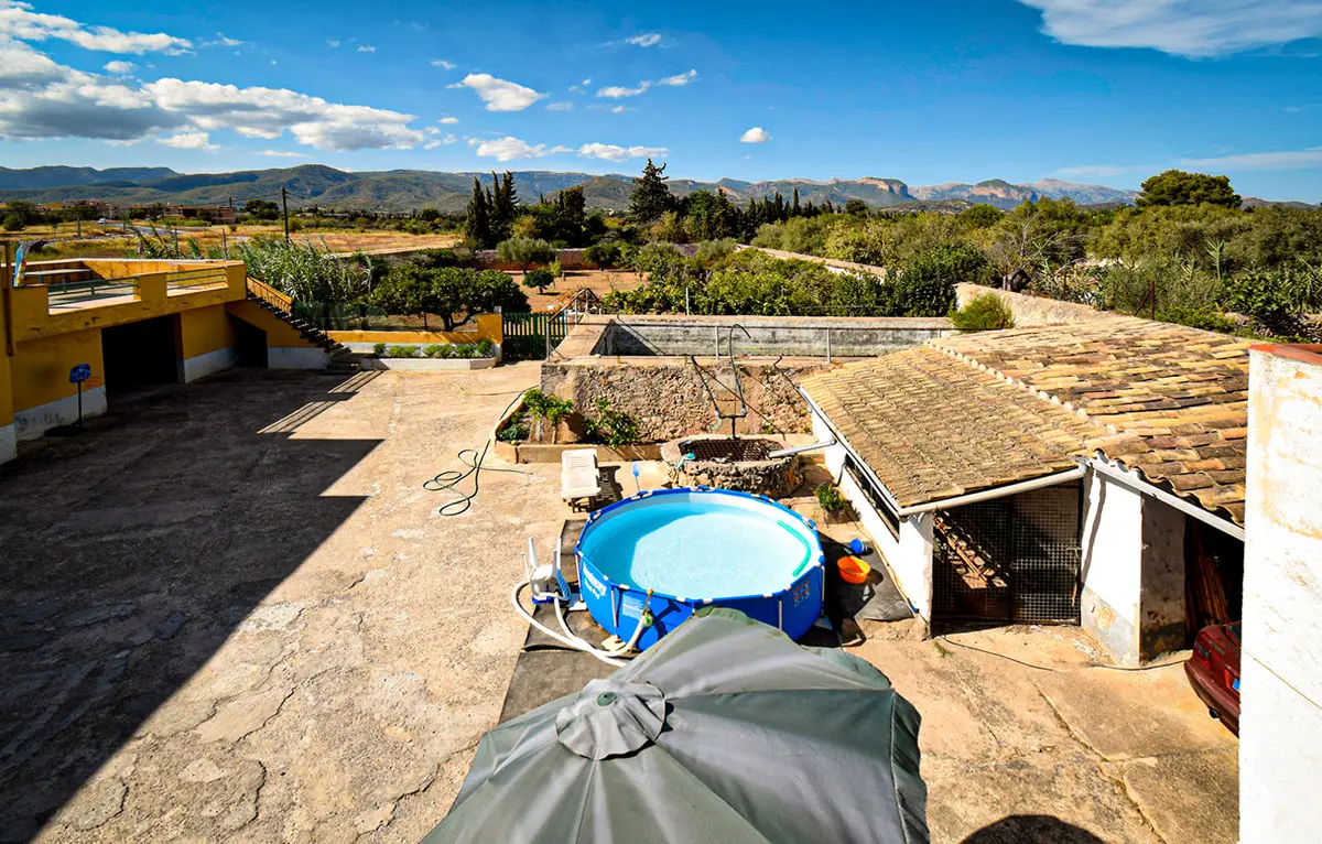 This 19th century mansion is notable for retaining many old features. With appropriate modernization, this jewel can shine in new splendor. The original elements, such as the popular cement tiles with colorful patterns, the high ceilings and the typical wooden beams and Marés arches, add to the charm of this property. In addition to the many rooms, including nine bedrooms, there is a courtyard, a storage room and an old wine cellar converted into a warehouse. Outside there is a large terrace with unobstructed views of the mountains and a garden, as well as several garages and covered areas. It is also possible to divide the property to create a smaller unit. This is an interesting investment opportunity as the size, number of rooms and location just five minutes from the village center offer a variety of possibilities for future use. In addition to the main house, the price includes an approximately 130 m2 apartment with a separate entrance that can be used by guests, for example.