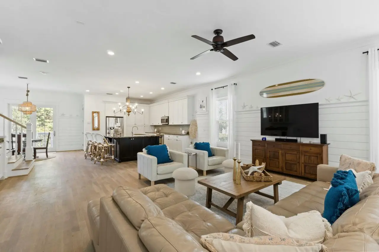 Gorgeous custom home in Blue Mountain Beach with luxury finishes and attention to detail around every corner. Built by Ben Giles, this home stands set apart in the coastal community of Highland Parks. Situated towards the front of the community this home allows quick access to the resort style community pool and easy access to all that 30A has to offer. This home has been meticulously maintained and it shows! As you enter the spacious open living area, you will immediately fall in love with this coastal retreat! Equipped with smart home technology, a new hot water heater, HVAC's from 2021 and stainless steel appliances, your days will be spent relaxing in the comfort of this beach oasis. With 10 ft ceilings and c custom finishes, this home boasts wide open spaces to rest and play.