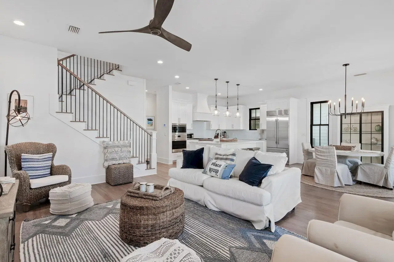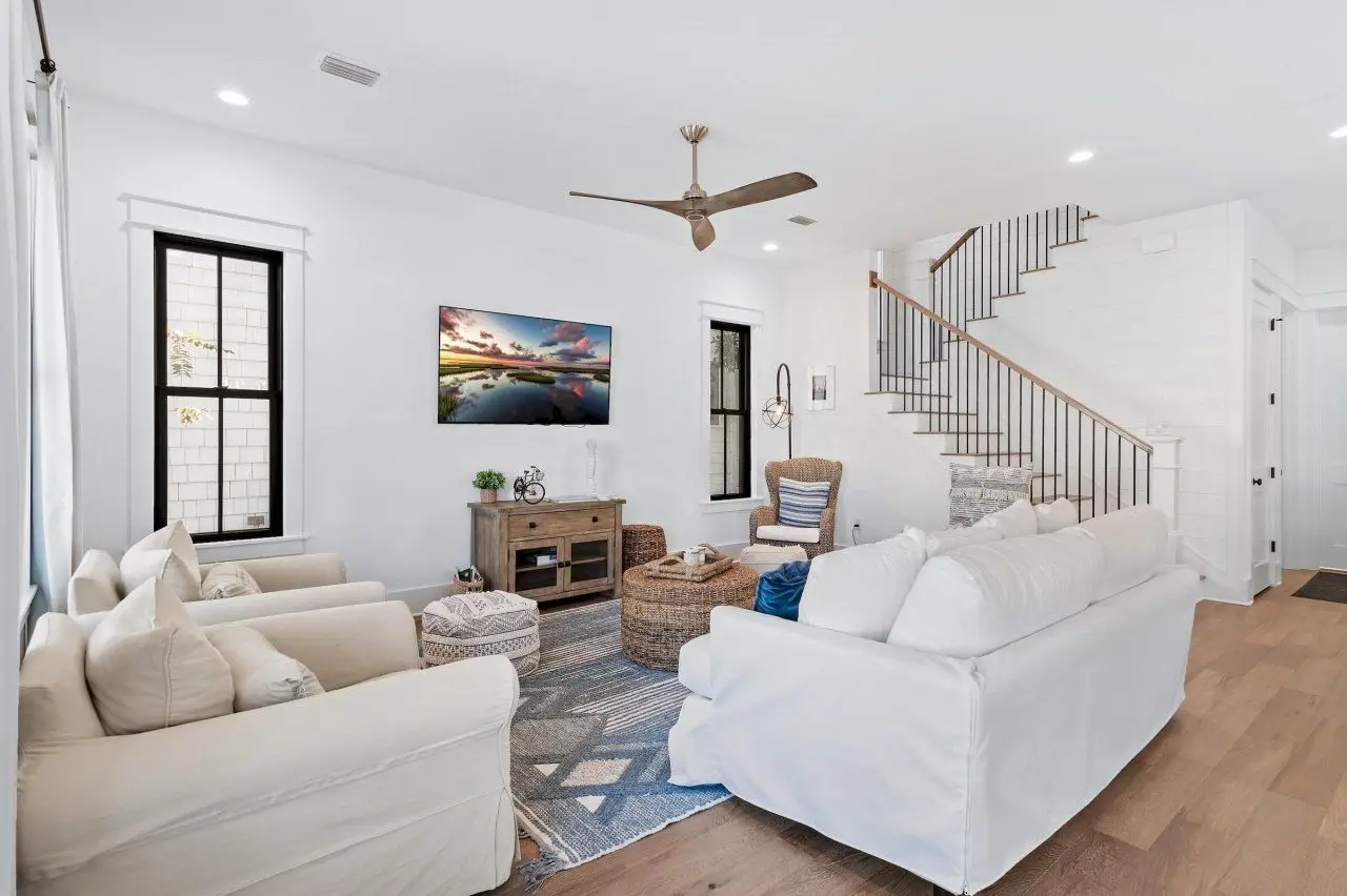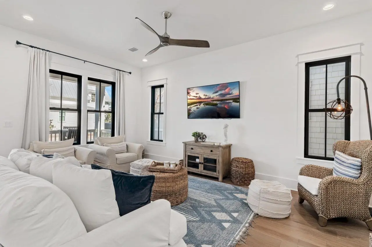 Experience the ultimate in coastal living with this turnkey, fully furnished 4-bedroom, 3-bathroom masterpiece located in the prestigious gated community of Cypress Dunes on Scenic 30A. Every detail of this newly constructed home has been thoughtfully designed to deliver a perfect balance of comfort, elegance, and functionality, with richly appointed spaces that combine sophistication and style. The reimagined open floorplan creates a spacious family room that seamlessly flows into the kitchen and dining areas, making it ideal for entertaining or enjoying quiet moments with loved ones. The chef-inspired kitchen is a true showstopper, featuring a Wolf stainless steel gas cooktop, double wall oven, Sub-Zero refrigerator, large central island, and custom shaker-style cabinetry for unmatched style and practicality. Added upgrades include a tankless water heater and thermostatic controls in the bathrooms for enhanced convenience and efficiency. Coastal charm radiates throughout the home, from the first-floor bedroom and bath to the striking wood and shiplap accents along the stairway. Bathrooms are meticulously crafted to capture the essence of breezy coastal design, with abundant natural light creating airy, refreshing, and inviting spaces. Luxury finishes elevate the home, including soaring 10-foot ceilings and stunning wood floors that enhance its warmth and natural light. Step outside to enjoy two full-length front porches and a serene rear screened porch perfect for soaking in the tranquil, park-like surroundings. Cypress Dunes offers an array of world-class amenities, including two resort-style pools, a fitness center, a jetted spa, an Owners Clubhouse, an outdoor fireplace, recreational greens, tennis courts, and picturesque nature walkovers. The natural beauty of this community perfectly complements the relaxed sophistication of 30A living. Don't miss this opportunity to own a fully furnished coastal retreat that epitomizes luxury, charm, and the vibrant lifestyle of Scenic 30A.