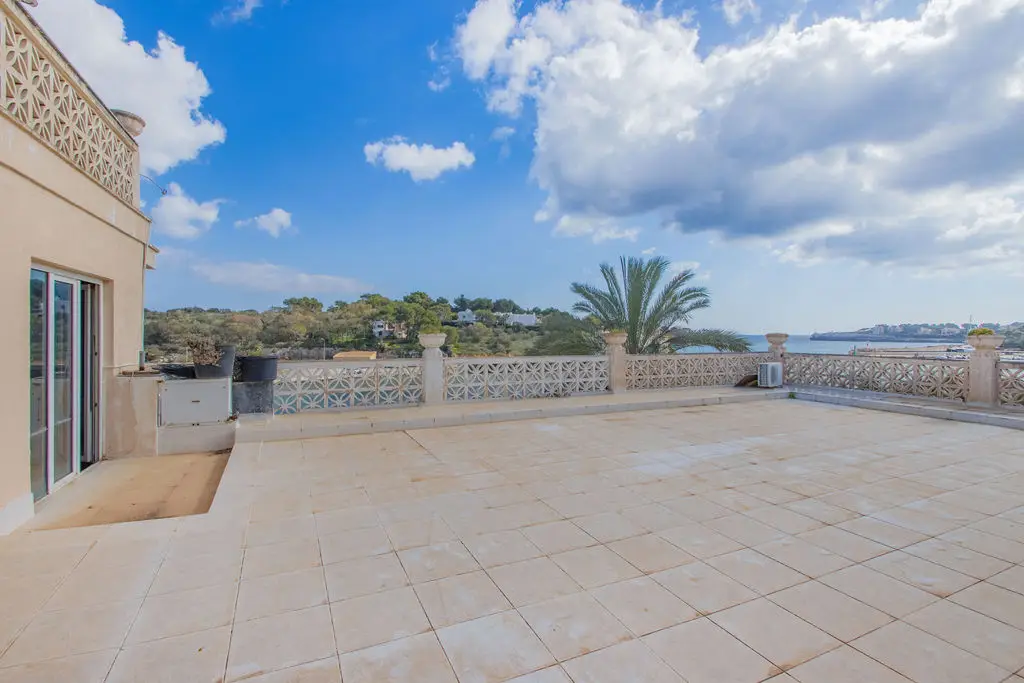 This impressive villa is located in the sought-after area of Porto Petro, in the municipality of Santanyí, Mallorca. Surrounded by the natural beauty of the surrounding area, it stands on a plot of approximately 1035 m², directly on the sea and offering spectacular views. The villa is arranged on three levels, ensuring an optimal and functional layout. The ground floor, previously used as a restaurant, houses a kitchen, bathrooms, cold storage rooms, two garages, and various storage rooms. Of particular note are the areas with tables overlooking the sea, offering a unique experience. Furthermore, this floor features a spacious outdoor area, a workshop, and various technical rooms. The first floor is exclusively for the living area. From the entrance area, a distributor leads to a well-equipped kitchen and two lounges, complemented by two dining rooms. This floor also includes five spacious bedrooms, three bathrooms, a guest toilet, and two large terraces offering views of the surrounding area and creating a relaxing atmosphere. The second floor offers even more living space with three additional bedrooms, a second fully equipped kitchen with a laundry room, a dining room, and a bathroom. This floor features two terraces, one of which offers access to the roof, offering panoramic views of the surrounding area and the sea. It's worth noting that the villa's outdoor areas have been designed and maintained to maximize both their functionality and visual appeal, creating an environment that invites you to enjoy the Mediterranean climate year-round. This property represents an ideal option for those seeking to integrate into a social environment that offers the convenience of a big city, but at a quieter and more relaxed pace. In addition to its use as a residential home, the villa's flexible layout allows it to be adapted to various needs. Take advantage of this opportunity to discover a home that combines a privileged location, intelligent spatial planning, and investment potential. Contact us for more information about this unique property. Position Porto Petro is located at the southern tip of Mallorca. It is a small fishing village with a natural harbor and several coves. Nearby are the areas of Cala d'Or, Cala Ferrera, Cala Serena, and the Mondragó Natural Park, which includes the beaches of Cala Mondragó, s'Amarador, and Caló d'es Burgit. parking space 2 x garage