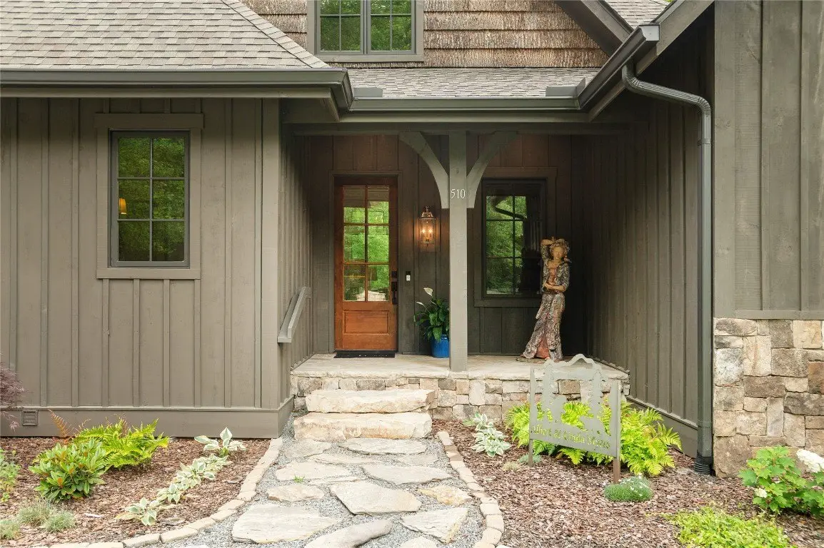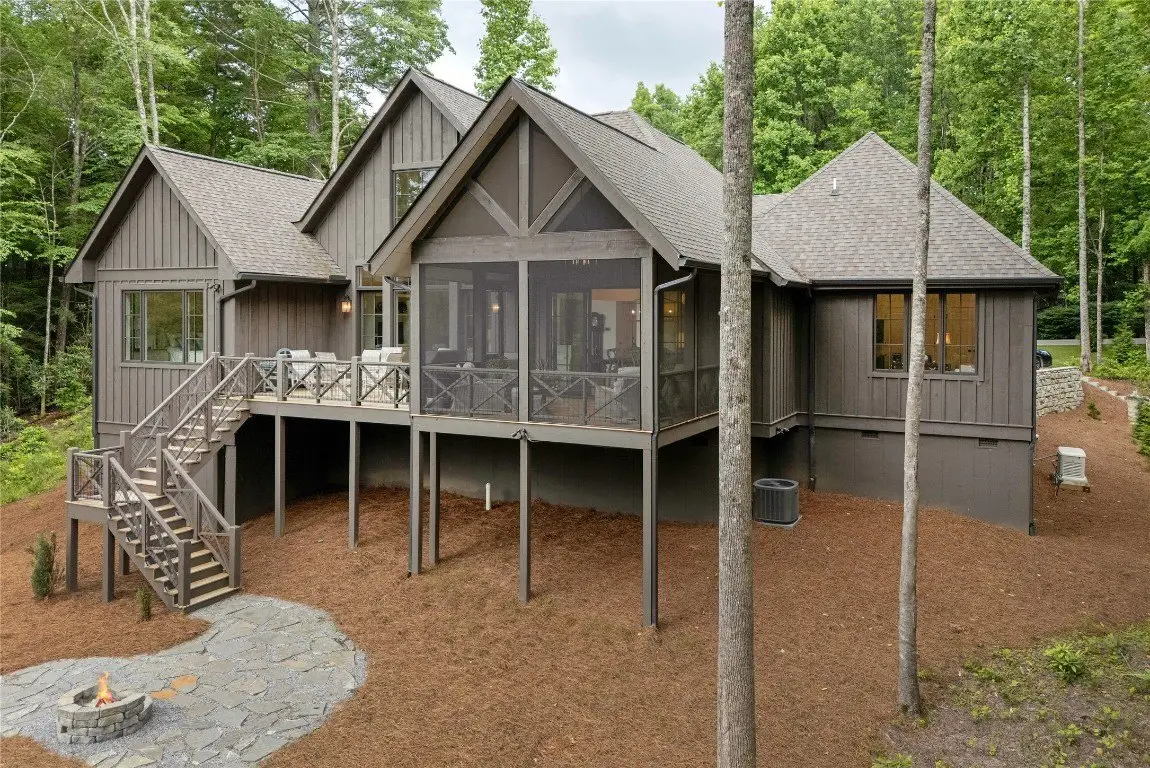 Built in late 2022, this beautiful home offers an incredible opportunity to live in the desirable Burlingame Country Club. Situated on a level-entry lot, it features a fenced and landscaped yard for added privacy and curb appeal. An abundance of windows fills the modern open floor plan with natural light and provides stunning year-round views of Hogback Mountain. The chef’s kitchen is a dream, complete with high-end appliances and finishes. A soaring stone fireplace serves as the centerpiece of the inviting living area, perfect for relaxing or entertaining. The primary suite is a personal sanctuary with a luxurious bathroom, while two additional ensuite bedrooms offer comfort and privacy for guests. A finished room with a full bathroom above the garage is ideal for an office or overflow accommodations. Enjoy mountain living on the screened porch or open deck, designed for relaxation and taking in the views. Additional features include a whole-house generator and numerous thoughtful upgrades throughout. Don’t miss the chance to own this remarkable home! Membership to Burlingame Country Club is by invitation, offering access to world-class golf, tennis, fitness, dining, and a welcoming social calendar — but is not required for ownership.