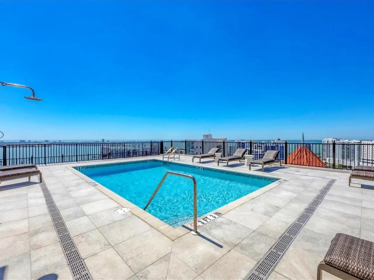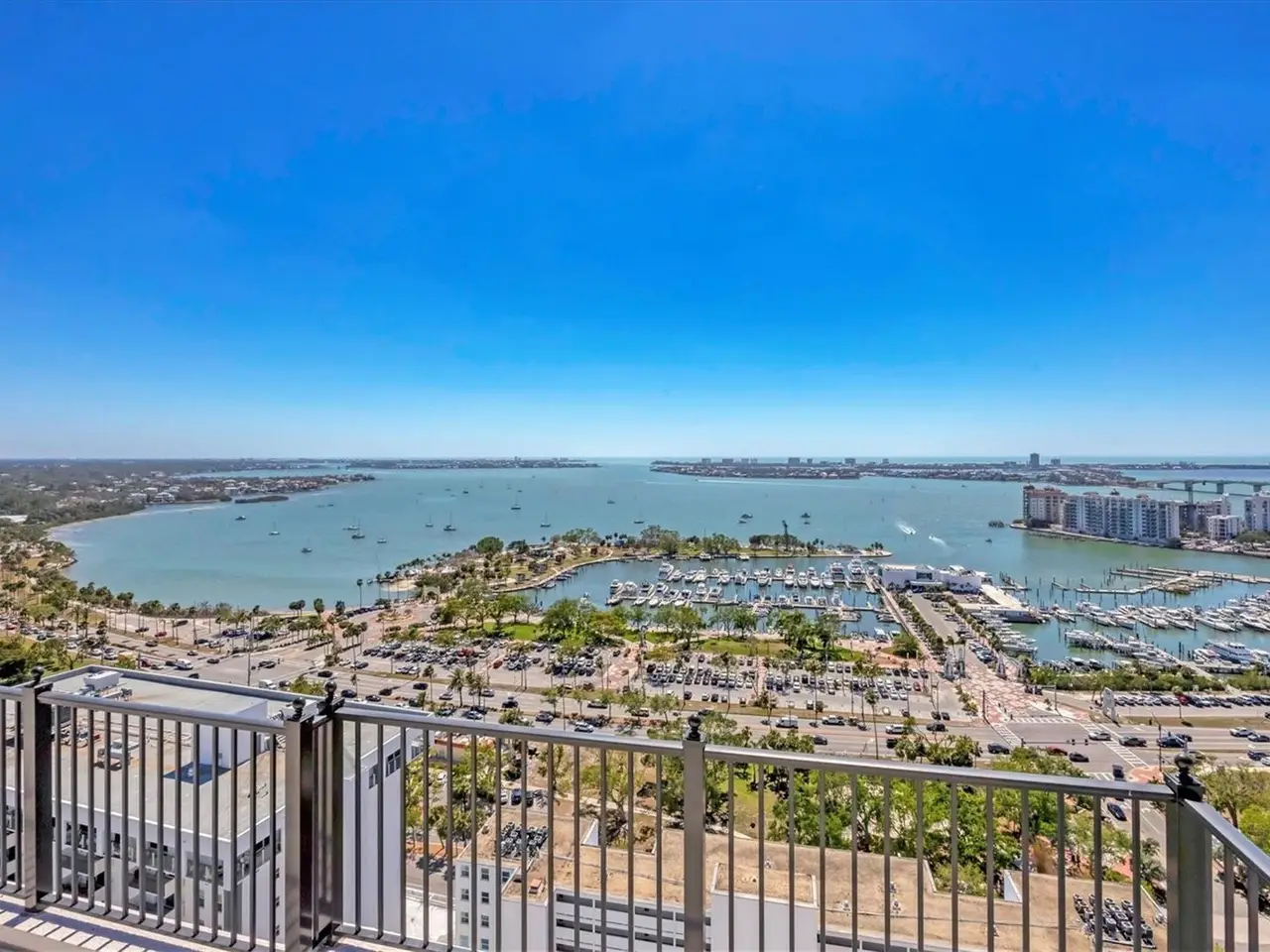 Welcome to the DeMarcay- an 18-story boutique condominium community located on Palm Avenue, in the heart of downtown Sarasota. This beautiful 2 bedroom, 2 bathroom home on the 14th floor comes fully appointed and furnished. The residence features 11-foot ceilings, Italian cabinetry, Miele appliances including a gas cooktop, porcelain floors throughout, quartz countertops, built-out closets, and a custom dry bar. Relax on the terrace and enjoy the abundance of natural light and sweeping views of Sarasota. An array of thoughtful amenities are found on the 18th floor rooftop - all with unobstructed 360-degree views of the Bay and downtown skyline. The outdoor amenities include a heated, saltwater pool and lanai area, an outdoor kitchen and a generous entertaining area. Inside you will find a fitness center and sophisticated club room with a lounge area, dining table, bar and catering kitchen where you can entertain guests or just enjoy the views and sense of community that the DeMarcay has to offer. On-site staff is available 24/7 providing resident services for owners whether they are in town or traveling, offering a true "lock and leave" lifestyle.