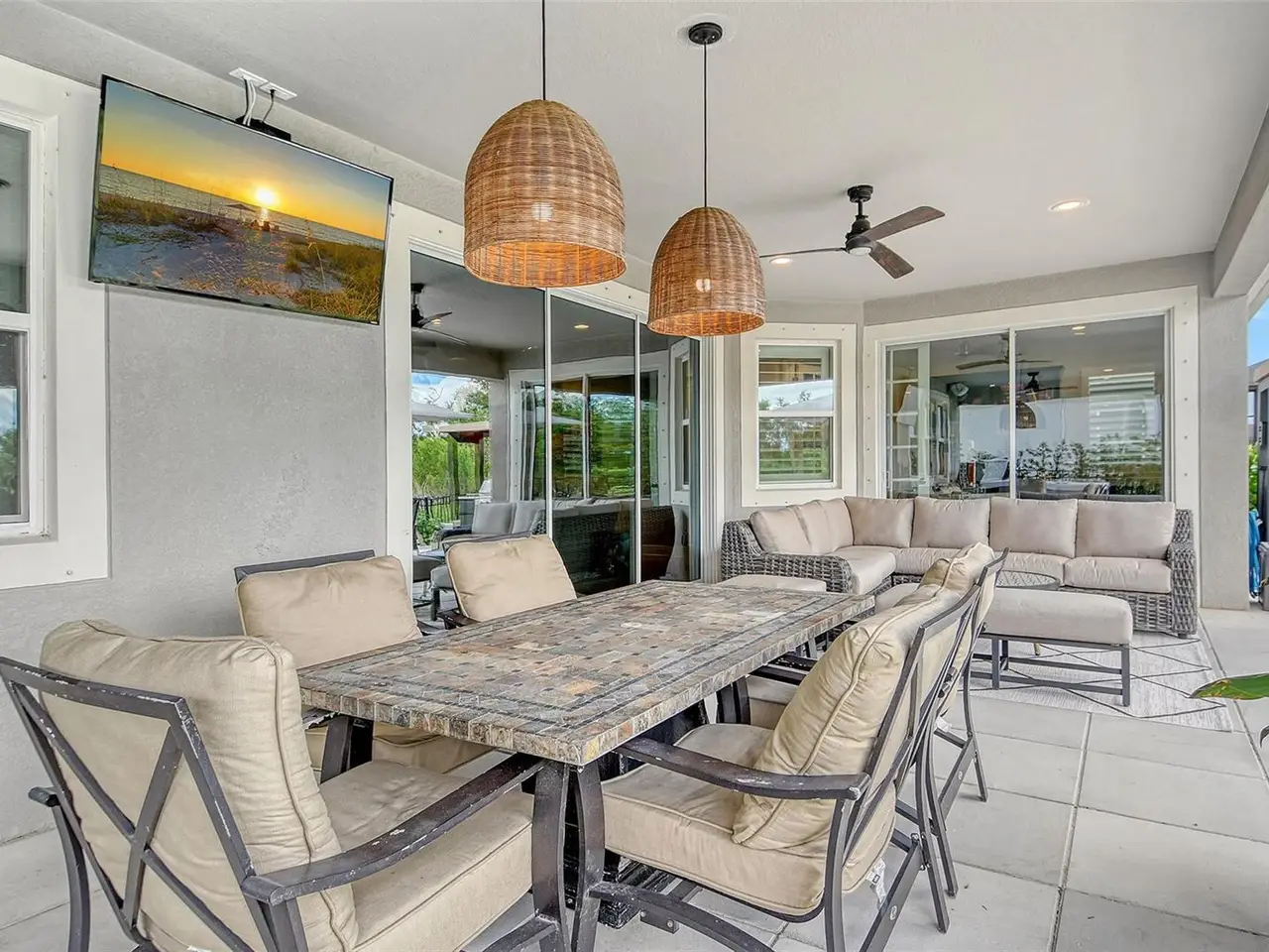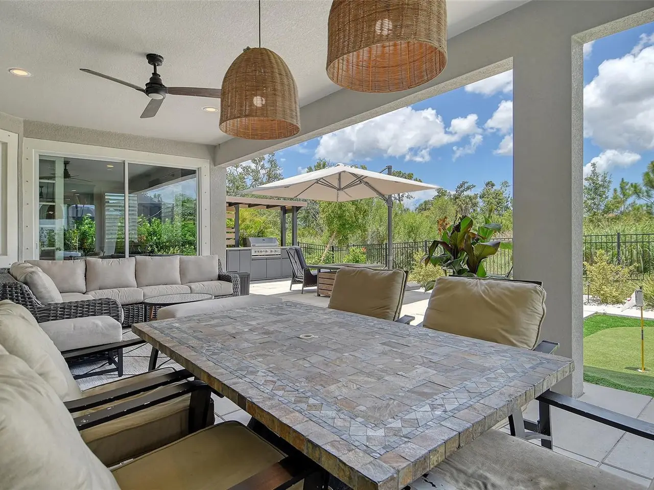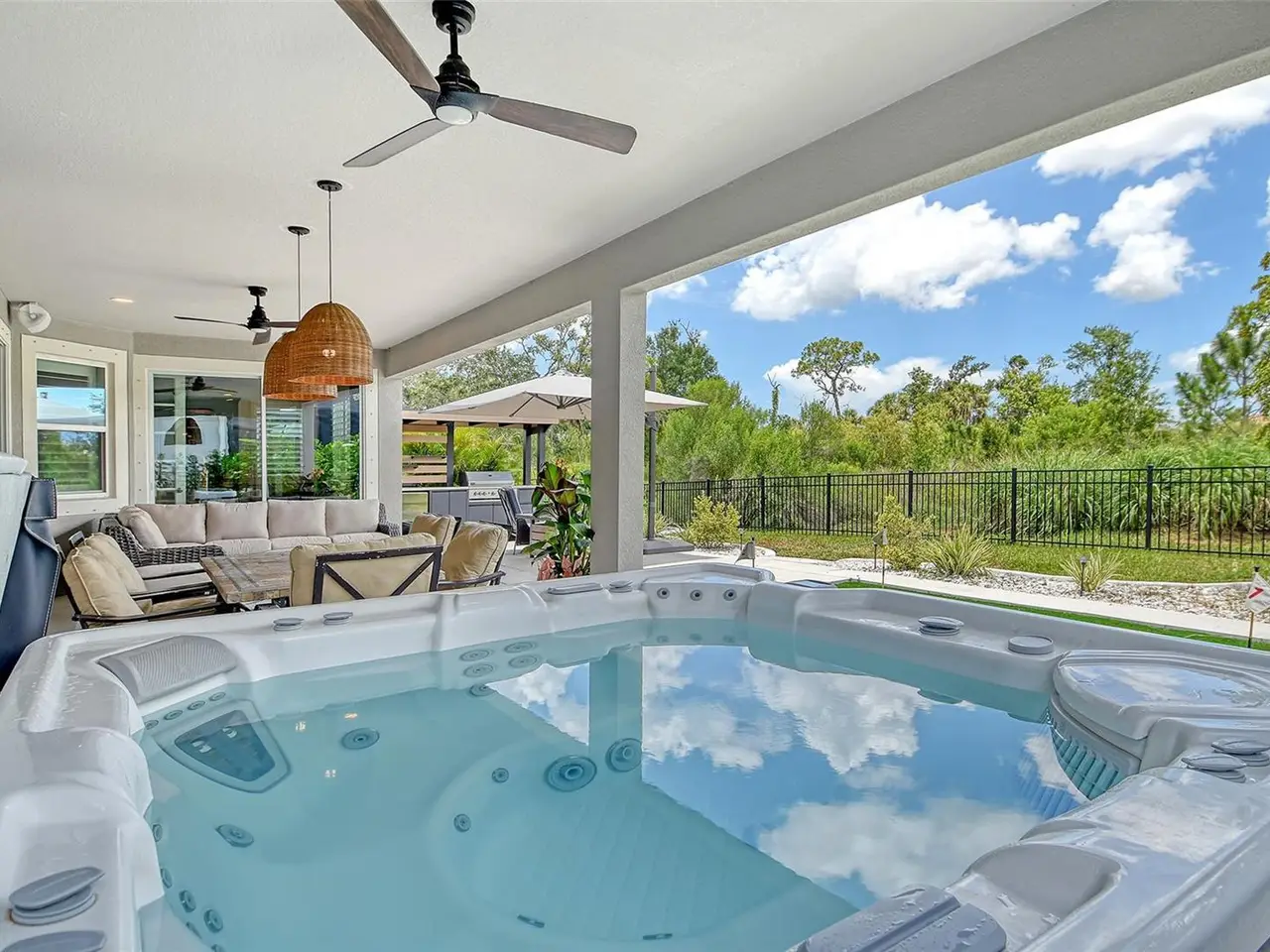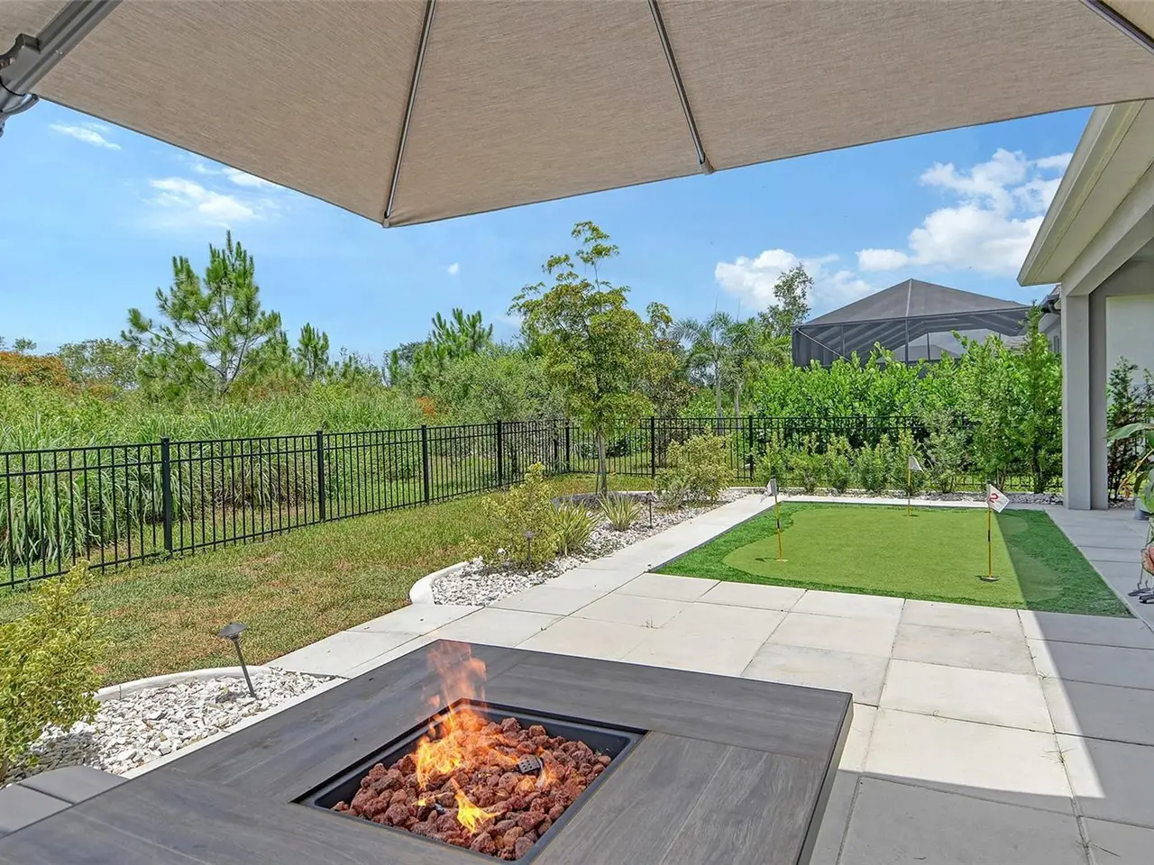 Stunning Coastal-Inspired Retreat in Gated Community! Welcome to this beautifully designed 3-bedroom, 3-bath home with spacious den/office, where style, comfort, and thoughtful upgrades come together in perfect harmony. From the moment you arrive, you'll be impressed by the tile roof, lush landscaping, and paved driveway leading to a spacious 3-car garage with epoxy floors. Inside, the open floor plan is perfect for entertaining, featuring coastal-cozy colors, luxury vinyl plank flooring, and over-the-top designer lighting throughout. The light and bright kitchen shines with a fabulous pantry and flows effortlessly into the main living areas. The upgraded A/C system ensures year-round comfort. The primary suite is a peaceful escape with a fireplace, amazing walk-in closet, and tranquil preserve views. One of the additional bedrooms features a private en-suite bath and walk-in closet, making it perfect for guests or extended family. A large laundry room, keyless entry, and hurricane shutters add everyday ease. Wine lovers will appreciate the newly built, climate-conscious wine cellar, a unique and elegant addition for entertaining and storage. Step outside to your expansive private outdoor lanai area designed to enjoy a true-Florida lifestyle, with an outdoor kitchen featuring a built-in gas grill and refrigerator with a private putting green, and a fenced, open yard - all designed to enjoy Florida's gorgeous sunsets in comfort and style. Perfectly located near shopping, dining, world-class beaches, and downtown Sarasota, this one-owner home is part of a gated community with excellent amenities and low HOA fees. This exceptional property truly has it all - luxury, location, and lifestyle. Don't miss your chance to call it home!