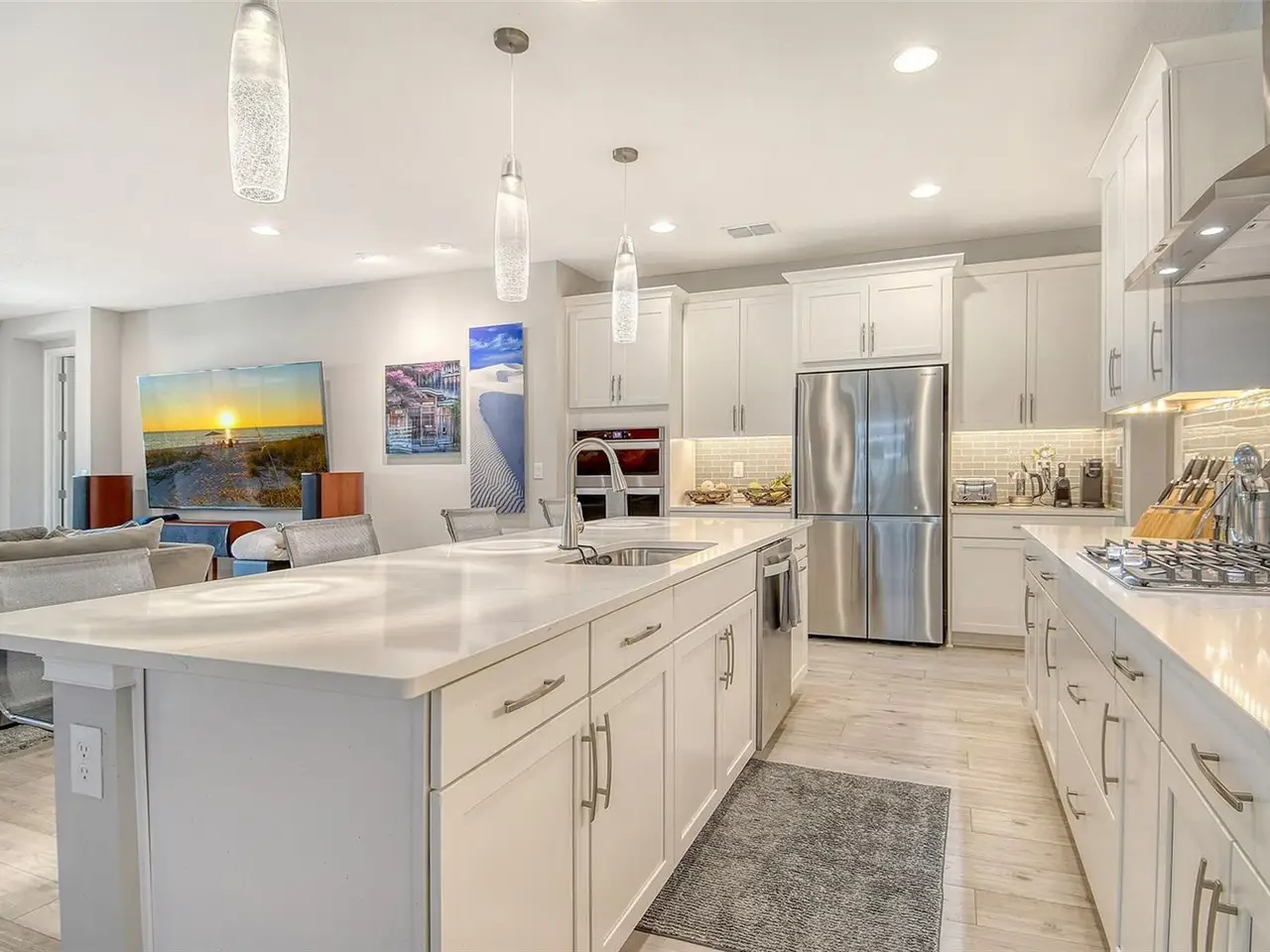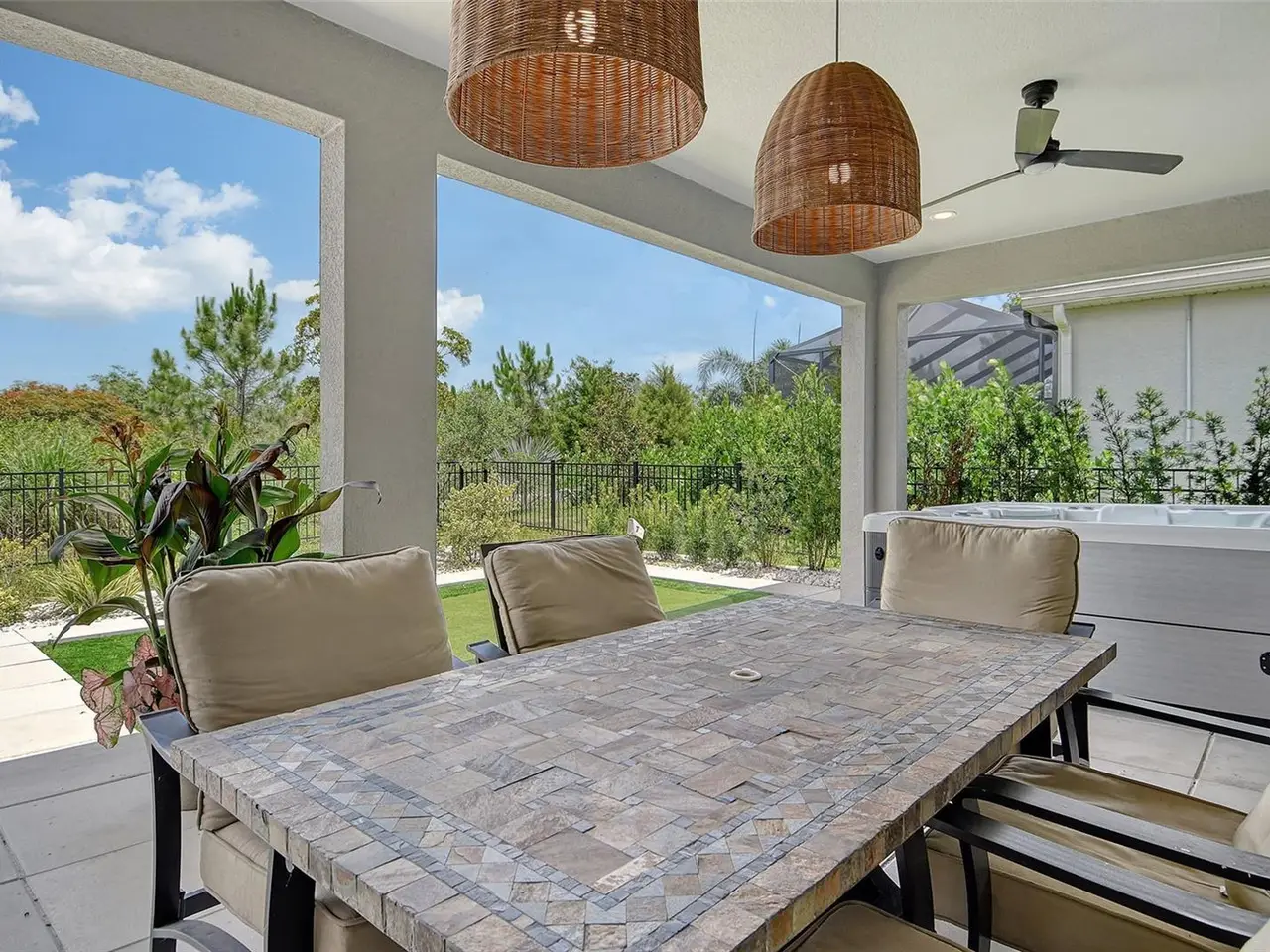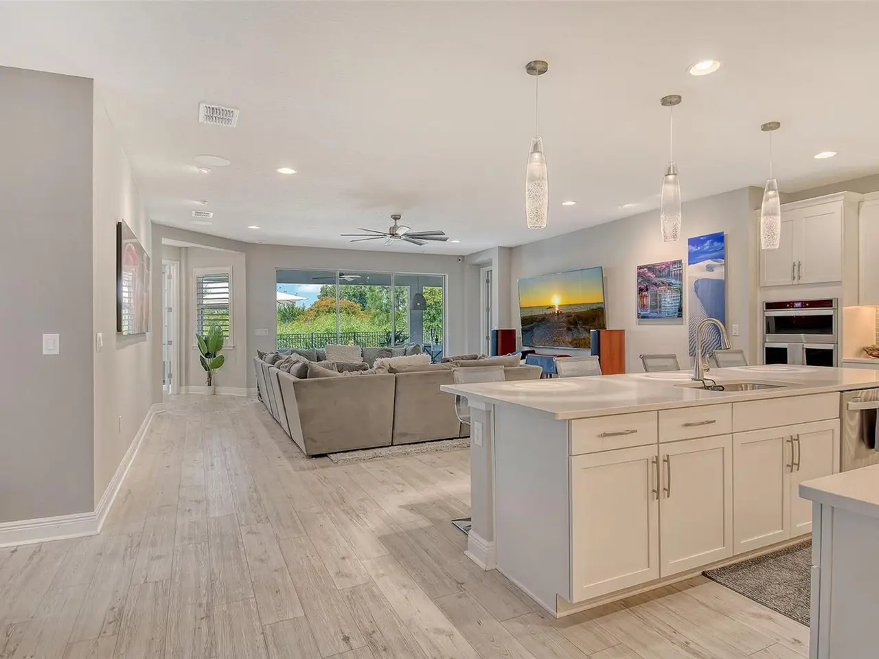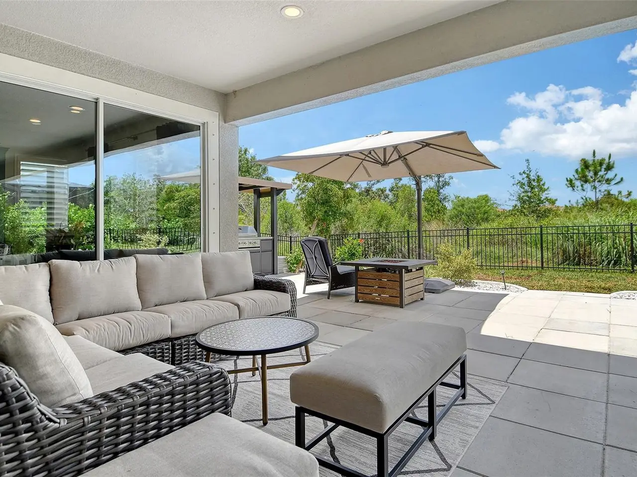 Stunning Coastal-Inspired Retreat in Gated Community! Welcome to this beautifully designed 3-bedroom, 3-bath home with spacious den/office, where style, comfort, and thoughtful upgrades come together in perfect harmony. From the moment you arrive, you'll be impressed by the tile roof, lush landscaping, and paved driveway leading to a spacious 3-car garage with epoxy floors. Inside, the open floor plan is perfect for entertaining, featuring coastal-cozy colors, luxury vinyl plank flooring, and over-the-top designer lighting throughout. The light and bright kitchen shines with a fabulous pantry and flows effortlessly into the main living areas. The upgraded A/C system ensures year-round comfort. The primary suite is a peaceful escape with a fireplace, amazing walk-in closet, and tranquil preserve views. One of the additional bedrooms features a private en-suite bath and walk-in closet, making it perfect for guests or extended family. A large laundry room, keyless entry, and hurricane shutters add everyday ease. Wine lovers will appreciate the newly built, climate-conscious wine cellar, a unique and elegant addition for entertaining and storage. Step outside to your expansive private outdoor lanai area designed to enjoy a true-Florida lifestyle, with an outdoor kitchen featuring a built-in gas grill and refrigerator with a private putting green, and a fenced, open yard - all designed to enjoy Florida's gorgeous sunsets in comfort and style. Perfectly located near shopping, dining, world-class beaches, and downtown Sarasota, this one-owner home is part of a gated community with excellent amenities and low HOA fees. This exceptional property truly has it all - luxury, location, and lifestyle. Don't miss your chance to call it home!