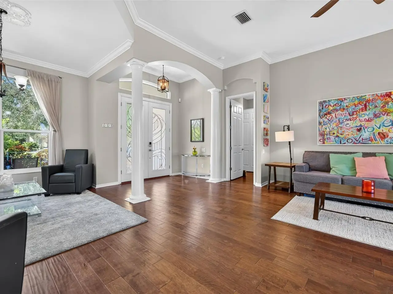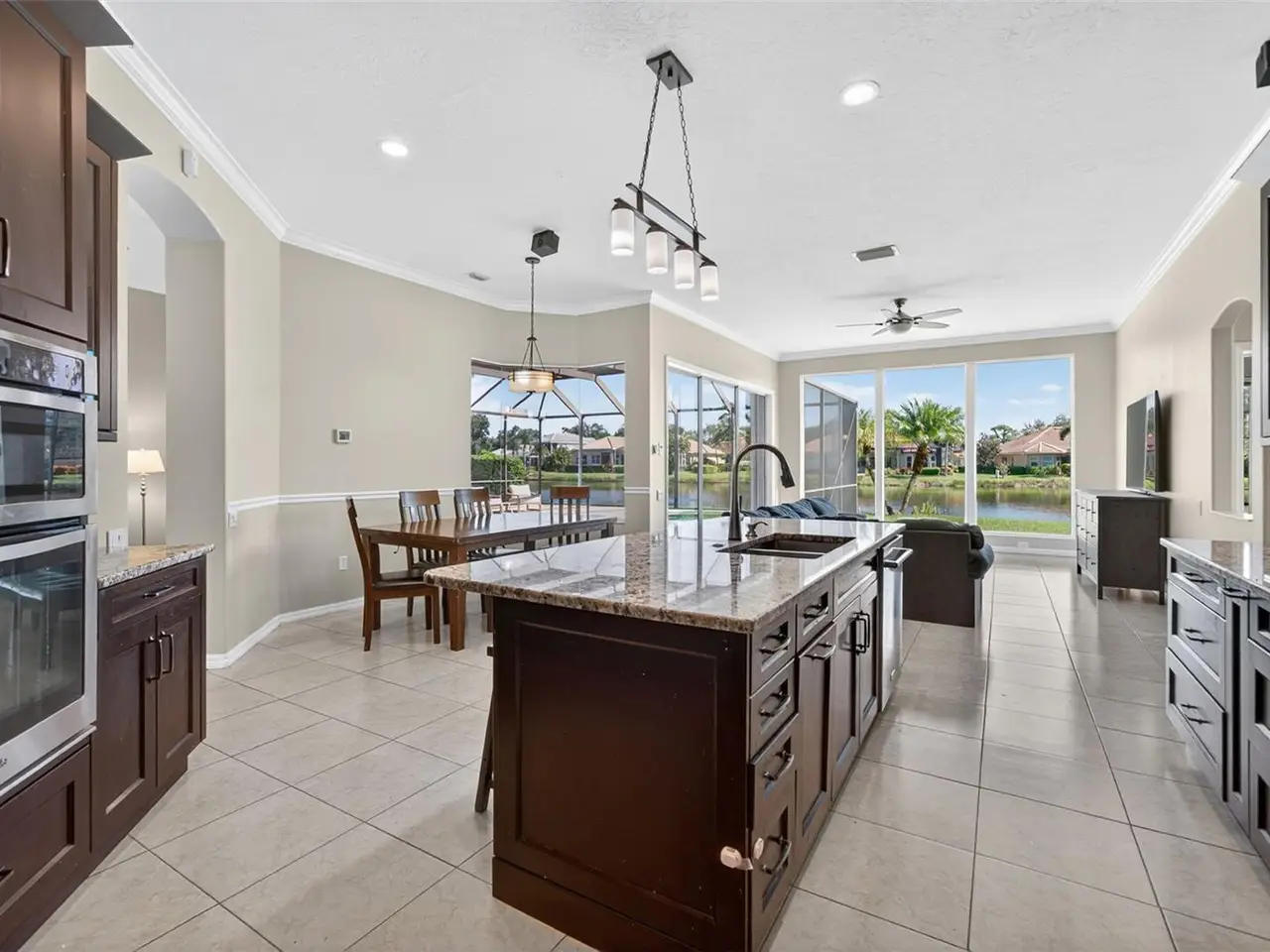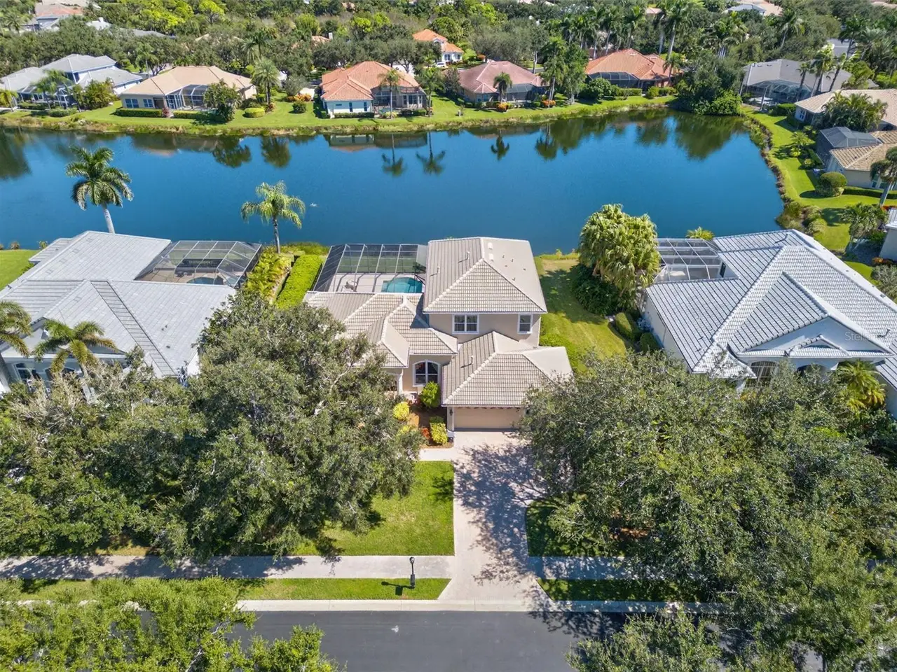 Enjoy peaceful premium lake views and over 3,500 sq. ft. of elegant living space, designed for both comfort and entertaining. This 4 bedroom, plus 2 office/flex rooms, 3 bath home offers a great floor plan for many uses. The main level includes the primary suite, private guest room, plus office while the second floor adds a spacious bonus/media room plus two additional bedrooms and an office/flex room. The home features hurricane-impact windows, wide-plank engineered hardwood flooring and lots of natural light. A spacious kitchen with an oversized island, granite counters, and gas range. The expansive pool area overlooks the shimmering lake, offering a serene backdrop from nearly every room. A 3-car garage, and spacious lot complete the package. Silver Oak is an exclusive sought-after enclave of luxury homes known for its lush landscaping and mature oaks. A gated community, and ideal Sarasota location minutes from world-class beaches, dining, shopping, and the Legacy Trail. Please See Video Walkthrough (Virtual Tour 1) for a comprehensive view of the home!