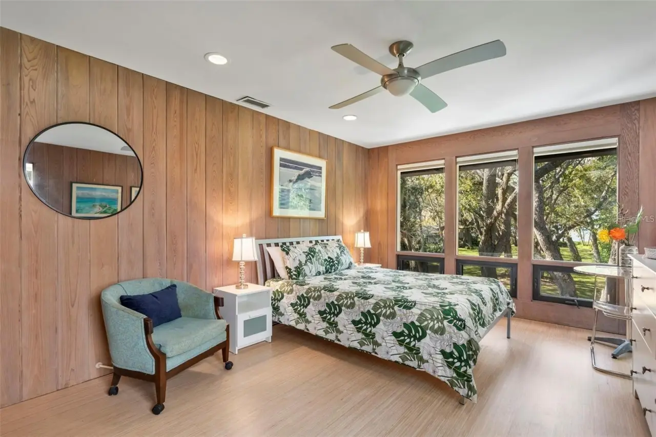 Stunning Mid-Century Masterpiece, close to beach and walk to Southside Village. Featuring cypress inside and out. High ceilings and open spaces offer comfort and airiness, while the walls of glass sliders and windows fill the interior with natural lighting while showcasing gorgeous views of the lush landscaping. The expansive great room features floor-to-ceiling sliders and a wood-burning fireplace, creating a warm and inviting space, while the open kitchen with an island is perfect for creating culinary delights and entertaining. Also on the first level is an additional living space and a large flex room with sliders leading to a screened outdoor patio. This bonus room is ideal for a home gym, playroom, or art studio. Adjacent to this room you'll find a large heated indoor pool perfect for swimming laps day or night or just relaxing in while admiring the scenery. Upstairs, is a laundry room, 2 comfortable guest rooms, and a generous primary suite with a fireplace, large windows, and a well-appointed spa-like bath with a walk-in shower and soaking tub. Amazing views of the lush landscaping, offering total privacy. The property is offered as a package of 2 parcels being sold together or separately, additonal parcel 3350 Old Oak Drive, MLS# A4632289.