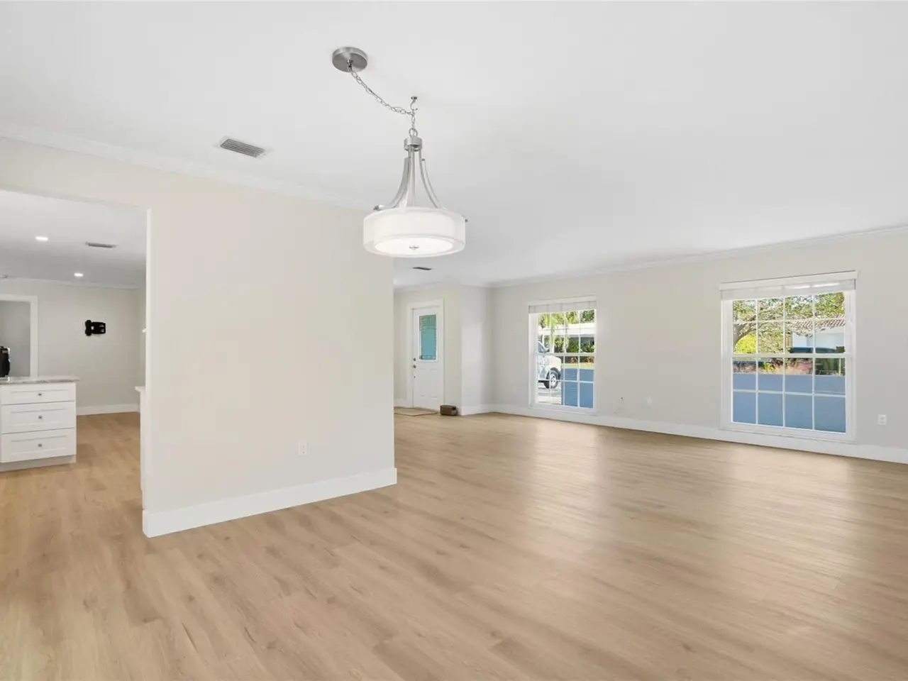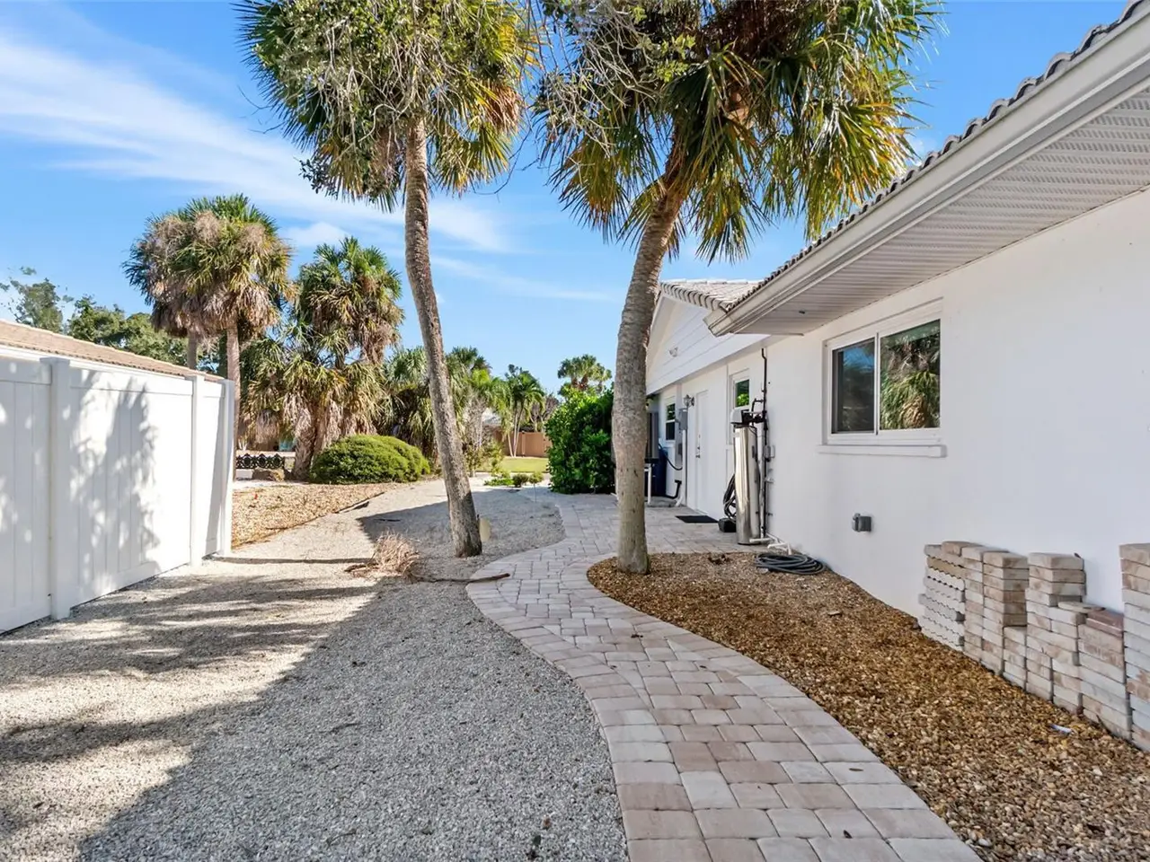 One or more photo(s) has been virtually staged. Nestled near the gentle waters of Roberts Bay, this enchanting Siesta Key home rests on a quiet cul de sac street where the only sounds are the whisper of palms and the laughter of neighbors walking by. Though not waterfront, the location captures the essence of island life - peaceful, private, and just moments from where the sun dips into the Gulf. A short stroll or quick bike or golf cart ride has you in the center of vibrant Siesta Key. Step inside, and you'll feel the warmth of a home that's been lovingly renewed. Every detail reflects care and comfort - from the four inviting bedrooms and two full baths to the light-filled kitchen adorned with stainless steel appliances and a captivating blue glass tile backsplash reminiscent of the Gulf waters just moments from your front door. The dining area invites long, easy meals, while two separate living spaces offer versatility for gathering, relaxing, or simply enjoying the rhythm of coastal living. Life is low maintenance and carefree with durable lvp flooring that looks modern and will compliment your coastal decor. Beyond the back door lies a spacious, fenced yard - a blank canvas waiting for your imagination. Picture a pool glimmering under the afternoon sun, a lush garden framed with tropical blooms, or a firepit where evenings stretch into starlit conversations. Here, you aren't confined to someone else's vision - you have the freedom to create your own perfect oasis suited to your tastes and dreamy outdoor vibe. The charming front porch welcomes your guests - a cheerful prelude to the life that awaits within. New hurricane-rated windows offer confidence and calm, while the spacious two-car garage with smart epoxy flooring and the generous, indoor laundry room offers convenience. This is more than a house; it's a fresh beginning on Siesta Key - a place where your coastal dream can take root.