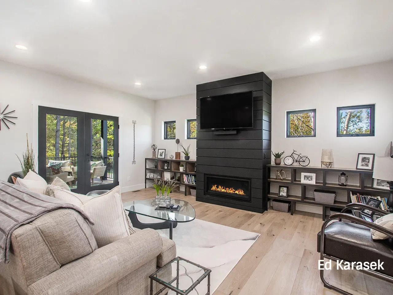 Stunning contemporary ranch in The Ravines, Southwestern Michigan's premier golf community. Set on 1.1 wooded acres, this like-new walkout home offers approx. 3,700 sq ft finished living space with three bedrooms, three full baths, exercise room, and flexible office/bedroom. Enjoy open-concept living, 9' ceilings, engineered hardwood floors, fireplace centered Great Room, a spacious kitchen with custom cabinetry and stainless appliances, and a dedicated pantry accessible from the three-car garage. Ensuite primary bedroom and bath featuring dual sinks and custom tiled shower, with spacious walk-in closet. Lower level features a family room with kitchenette and walkout access, plus a hot tub. Community amenities include private road maintenance, snow removal, trash/recycling, in-ground pool, and sewer infrastructure. Minutes to downtown Saugatuck, Holland, and Grand Rapids--close to beaches, dining, and entertainment. Short-term rentals not allowed, preserving the peaceful setting.
