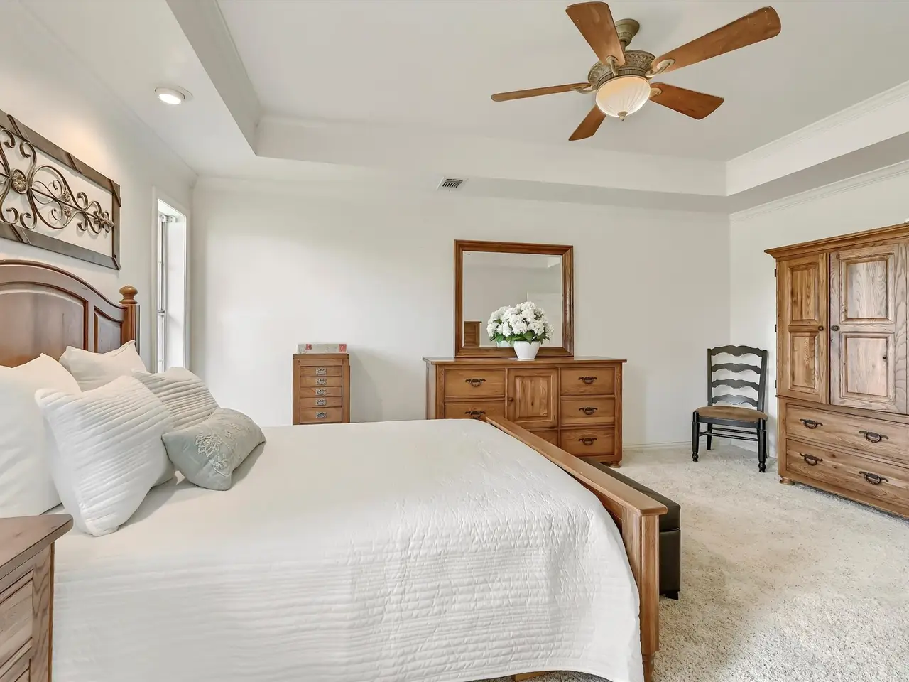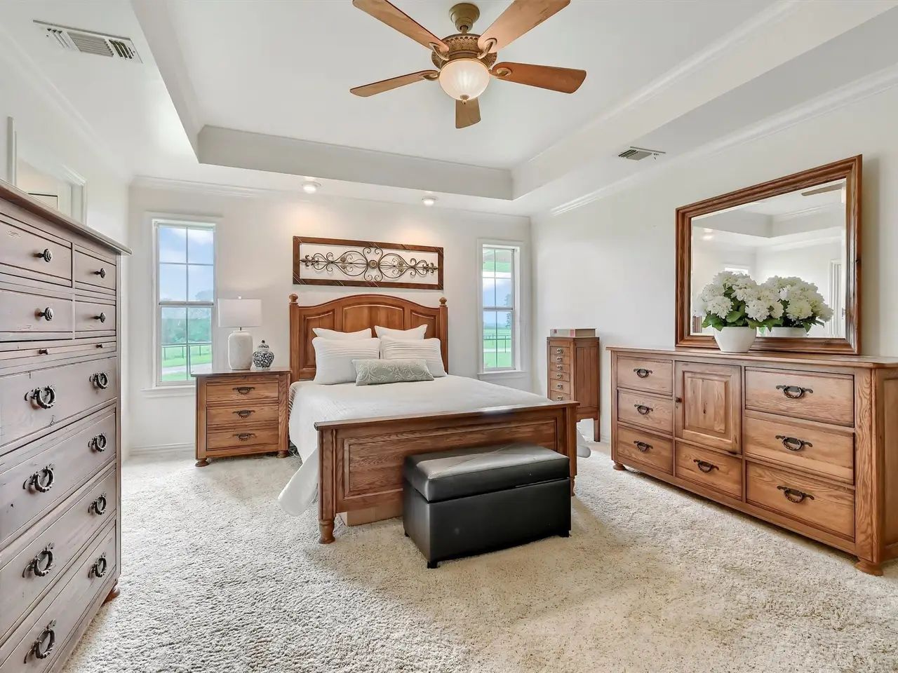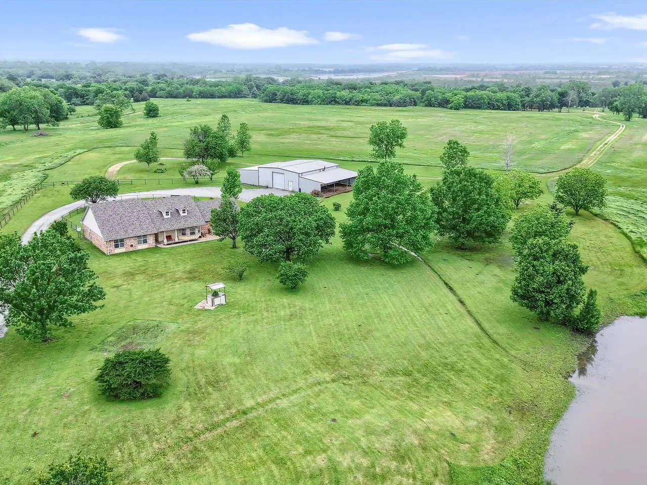 This AG exempt property combines a meticulously maintained home with equally cared for acreage. The open floor plan offers a spacious kitchen with island, breakfast bar, walk-in pantry, and a cozy brick fireplace. The primary suite features a soaking tub, separate shower, and abundant natural light. Outside, enjoy a covered porch, fenced in backyard, workshop with electricity and well water, plus a catfish pond, and beautiful mature pecan, fig, and date trees. With rural and well water, AG exemption, and numerous hobby opportunities, this property delivers country charm, functional space, peace and just about 20 minutes from Sherman Town Center.