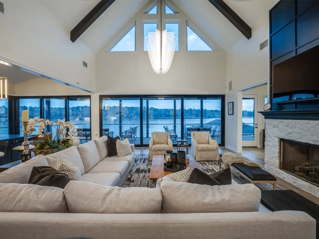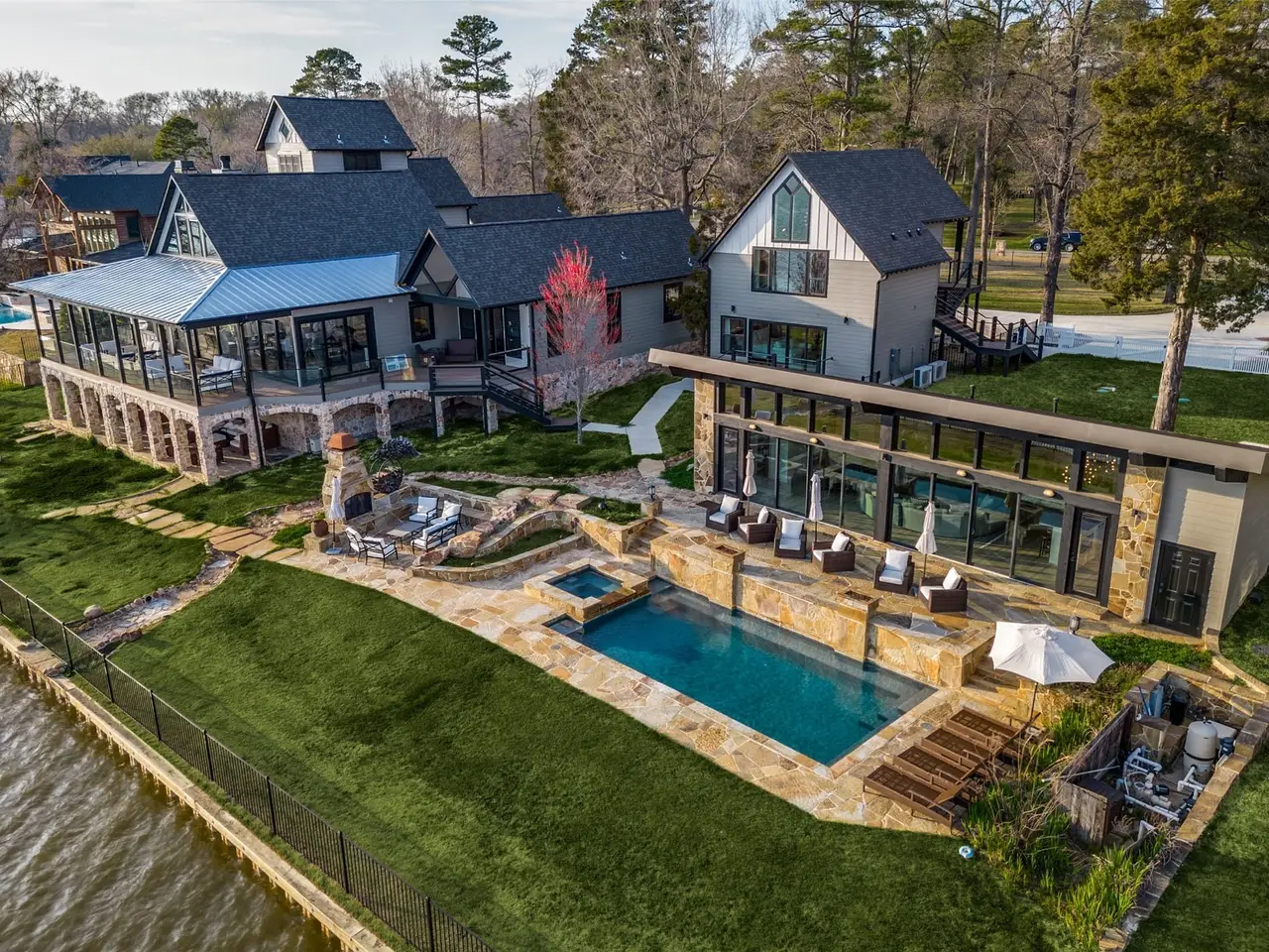 STUNNING & BEAUTIFULLY UPDATED multi-generational property HAS IT ALL & is on 1 acre of gated lakefront accommodating 20+ family & friends! Over 6400 sq ft of living space includes Main House (3602), Pool House-Great Room (1077), 2 Story Guest Carriage House (1236) & Guest Room over garage (499)! Main house has gorgeous kitchen and living room with lake view, 3 bedrooms, game room, loft & wrap around porch! Amazing pool house with wall of windows has full kitchen, plus bath & is perfect for entertaining & opens to amazing pool & outdoor fireplace! 2 story Carriage House has kitchenette, living, full bath & bedroom on first floor. Second floor offers king bedroom, two sets of full sized built in bunk beds, full bath, & beautiful cathedral ceiling & windows with lake view! Guest room & bath over 2 car garage! Boat house for 2 boats-2 jet skis has a sitting & sun deck! Minutes to charming restaurants & shops in Mt Vernon & Winnsboro, The Cove Marina & Restaurant. Quick access from I30.