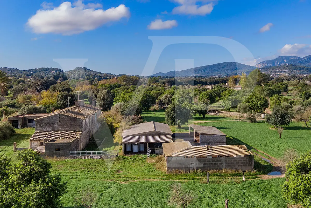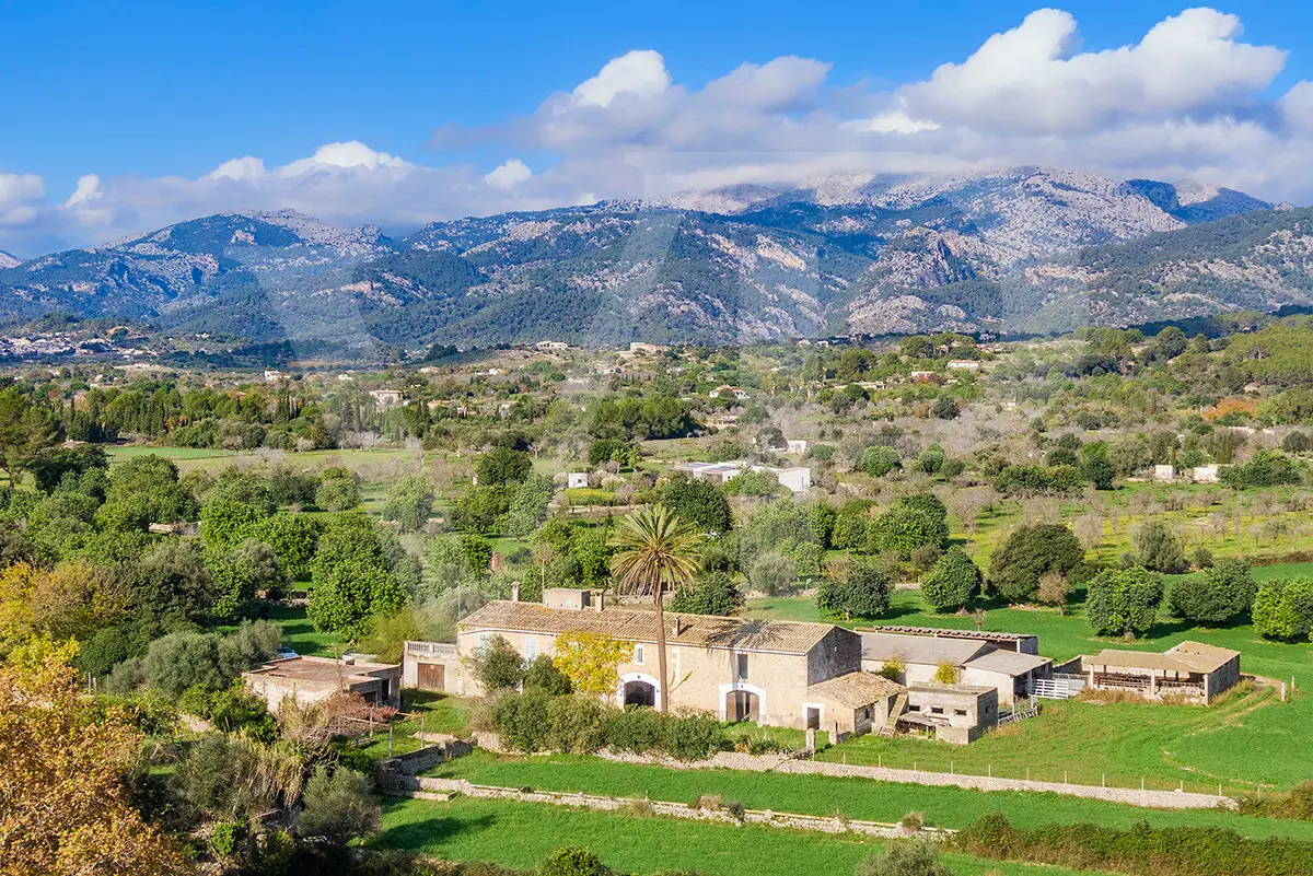 Beautiful Mallorcan property to renovate with large plot near Selva, Mallorca. This beautiful finca in typical Mallorcan style has a lot of potential to be converted into a large family home or even a rural hotel or agritourism. With its large plot of 180,000m2, this fabulous villa is full of fruit trees such as lemon trees, orange trees, pomegranate trees and etc. The property also has a private well with abundant water. The main house of 951m2 has five bedrooms and two bathrooms spread over two floors, large kitchen, living-dining room, large terrace on the first floor and an annex that could perfectly be a guest house. The whole area is quiet and peaceful, a perfect place to create your own paradise. Great opportunity. Selva is a municipality at the foot of the Tramuntana Mountains, halfway between Palma and Alcudia and borders the municipality of Inca. It consists of five villages, the largest of which is Selva, where the town hall is also located. The other towns are Caimari, Moscari, Biniamar and Binibona, all of which are within walking distance of each other and have many similarities. The setting is spectacular, surrounded by cultivated fields, olive and almond trees and always with a magnificent view of the mountains in the background. Selva, the main town with around 2,000 inhabitants, is a very popular tourist destination as you have to cross it to get to the Lluc Monastery and other sights in the Sierra de Tramuntana. In the center of the town are the town hall, the main square where the weekly market takes place, the 13th century Gothic church of San Lorenzo and the park with its large square where locals gather for their popular fiestas - from here you have a wonderful view.