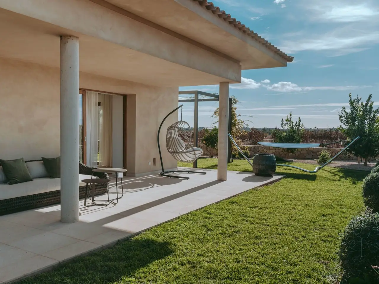 This impressive country estate is currently under construction and is located just five minutes drive from Binissalem and around twenty minutes from Palma, in Mallorca's most famous wine region. The property offers a great location with privacy and panoramic views of the Sierra de Tramuntana and the wine fields. The property features a wine cellar, a spacious living area with high ceilings and beams, a fully equipped kitchen with island, a guest toilet and four spacious bedrooms, each with its own bathroom and fitted wardrobes. The large windows lead outside where you can enjoy the saltwater pool and the various terraces, some of which are covered and all facing different directions to take advantage of the sun at any time of the day. The property includes a private well, water tanks, an air heat system, solar panels, home automation controls, electricity supply, an automatic pool cleaning system and an alarm system. The landscaping and traditional stone wall give the property a welcoming atmosphere. A unique opportunity for wine lovers to purchase this special estate.