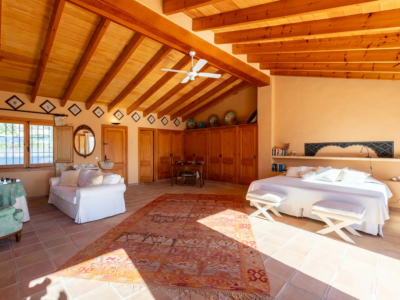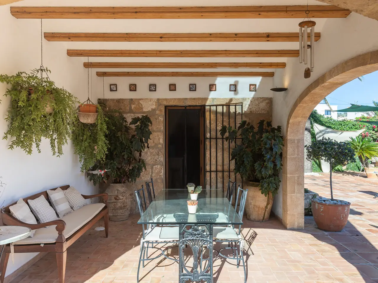 A magnificent property is presented in the quiet area of Senioles, in Jávea, Alicante. This property has a large plot of 2,436 m², completely flat, offering an ideal space to enjoy outdoor life. It has an orchard with different types of fruit trees. With 4 bedrooms and 3 bathrooms, of which 2 are en suite, this villa is perfect for families or those looking for comfort and privacy. The proximity to the old town, the port and the beach makes it an unbeatable option for living all year round or vacationing. The villa is characterized by a large naya typical of the area, with tosca arches, followed by a spectacular entrance hall with views of the interior patio, which is ideal for outdoor dinners or gatherings throughout the year. Next is the large living room with fireplace, sunny and very cozy, dining area, kitchen and laundry room. On this same floor there are two bedrooms and a bathroom. From the kitchen you can access the porch that overlooks the pool, which has a large terrace around it to enjoy the sun, with a dining area under the palm trees and next to the barbecue with typical Valencian tiles. From the large entrance hall you can access the upper floor, where you will find the spectacular and bright master bedroom with its en-suite bathroom and two open terraces, one with views of the Montgó and the other facing south, with open views of the valley. Through an elegant corridor, with a balcony overlooking the inner courtyard, you can reach another bedroom with an en-suite bathroom. The exterior of the property is equally impressive, with large areas, plants and fruit trees. It is worth highlighting the pool and the entire surrounding area, very private and comfortable due to its proximity to the kitchen, porch and barbecue, where in summer time people spend almost all day together. The interior patio of the house is one of the most welcoming spots, full of plants, with stone and rough walls, the floor is paved, imitating the old one of the town's church square. In addition, it has a large garage, a DIY and storage area. It has an alarm system for added security. Due to all its features, this villa is a unique opportunity. Without a doubt, it is an ideal option for those looking for a comfortable home in a privileged environment.