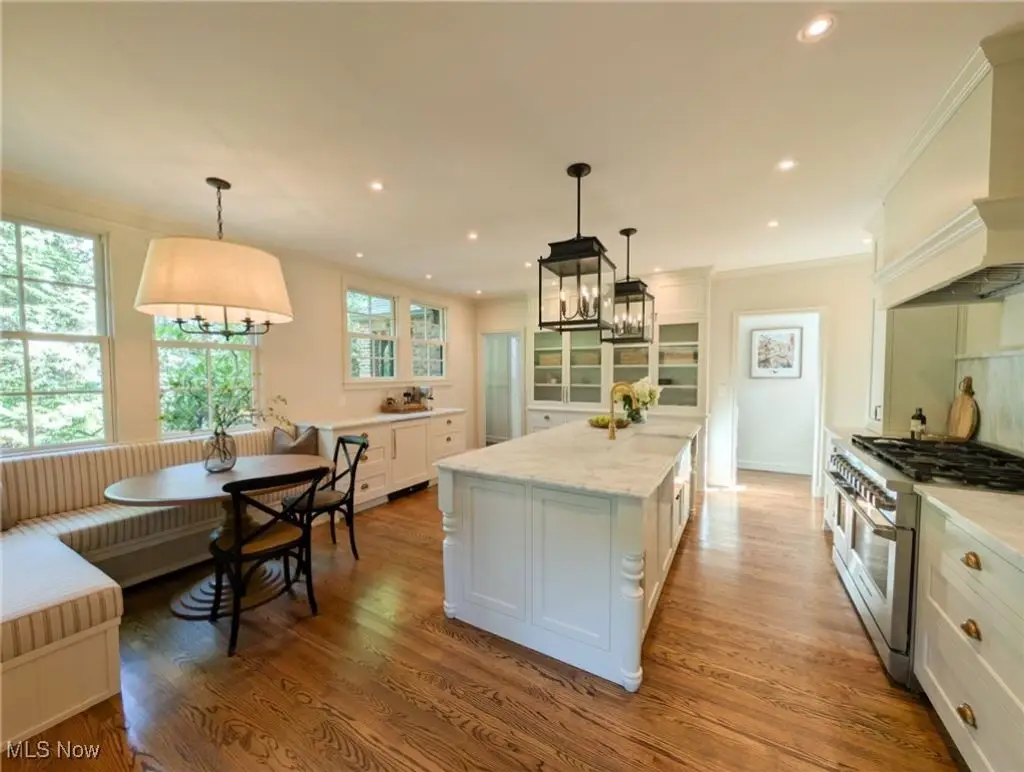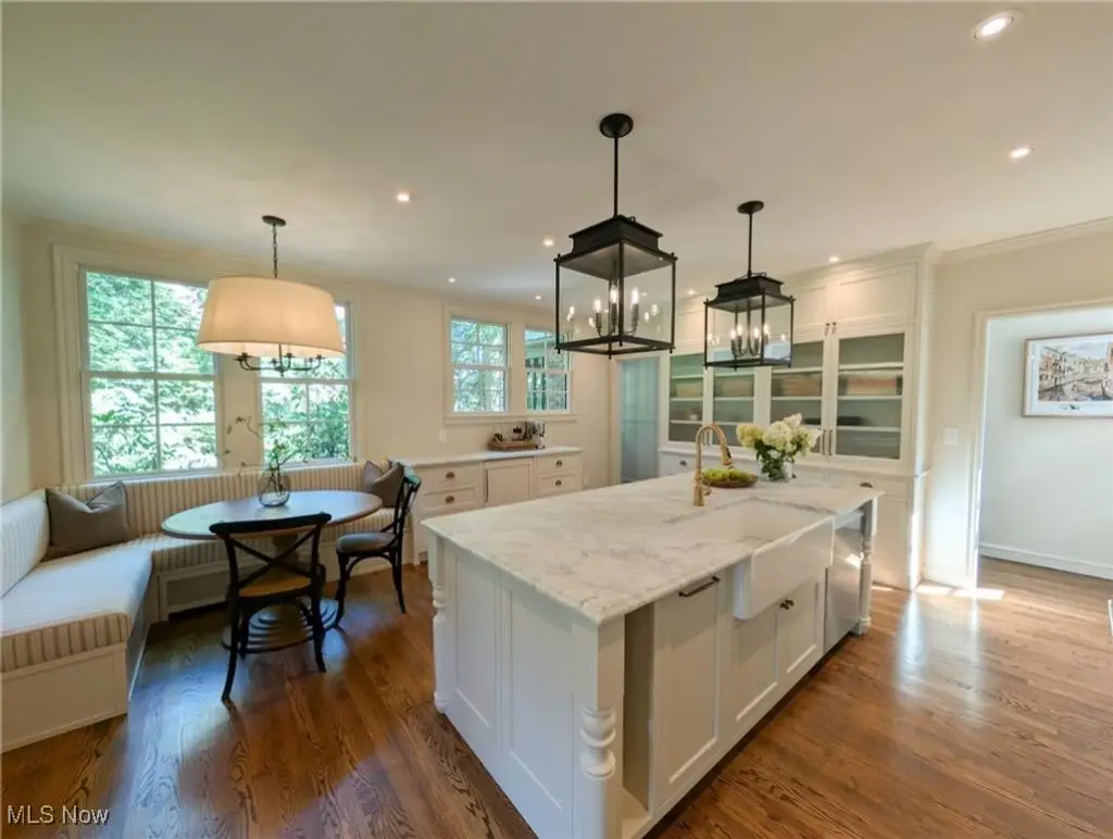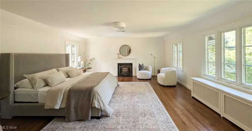 Stunning brick and stone Tudor that has been skillfully restored by craftsmen from the Woodland Design Company. Upon entering, you're welcomed by a dramatic two-story foyer with a curved reverse staircase and intricate wrought iron detailing. Beautifully re-finished hardwood flooring throughout. The Foyer opens to a Library featuring rich wood paneling, built-in bookshelves, fireplace and French doors leading to a rear stone patio. The sun-drenched Living Room boasts a large bay window, wood-burning fireplace and opens to a stunning terrace overlooking a landscaped and private backyard perfect for indoor-outdoor living. Remarkable floor to ceiling French Door windows creates a unique formal Dining Room that flows seamlessly into a new custom gourmet Kitchen, showcasing white marble countertops, custom cabinetry, high-end stainless steel appliances, and a large banquette. Designed with both entertaining and family living in mind, the kitchen offers an abundance of storage and prep space. The second floor features six Bedrooms and four luxurious, newly renovated spa-like Bathrooms. The Primary Suite includes a generous Bedroom, a walk-in closet with built-ins, and a marble tiled bath with double vanity sinks. A newly created Laundry Room is conveniently located on the second floor. The third floor offers two additional Bedrooms, a large Multi-Purpose Room, and a newly renovated spa-style bath =ideal for guests, au pair quarters, or office space. The lower level provides excellent utility space and a large Recreation Room featuring yet another fireplace. Additional upgrades include architectural grade replacement windows. Truly, the upgrades are too numerous to list.