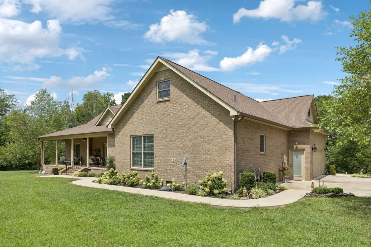 Welcome to your country paradise! Beautiful 18 acre property complete with a natural spring and a pond and 2,800-plus square foot gorgeous brick three bedroom, 2.5 bath home w/Bonus/Rec room on 2nd level, as well as walk-in attic storage or expansion area! This home built in 2014 has covered front and back porches (8x38 and 8x40) to watch the wildlife and enjoy the peaceful serenity, attached two-car garage and detached 24x26 carport on concrete pad. There is also a detached building that houses a 600-plus square foot apartment/guest house, built in 2007, with covered front patio, kitchen (Stove and Refrigerator remain), full bath and combo living/dining/bedroom area attached to a three-car garage/shop w/concrete pad, cabinets, electricity and water! You wind your way from the entrance with an open gate, up the wooded hillside to the property at the top of hill! The main home is mostly on one level with large Owner Suite, spacious open Kitchen/Dining/Eat-In and Living Room w/stacked rock propane fireplace and beautiful finished wood flooring! Kitchen has granite counters, walk-in pantry, counter bar and all kitchen appliances remain (GE Stove, Dishwasher, Microwave and Refrigerator). An outbuilding with lean-to also remains. This home is a wonderful oasis with woods, acreage, pond, natural spring and privacy!
