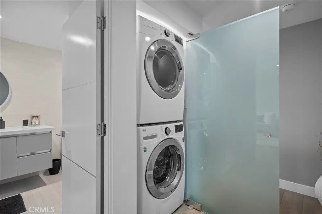 Elevate your everyday experience with this brilliantly designed living space that blends luxury with sleek functionality. Every inch of this home has been thoughtfully designed with custom, European-inspired millwork and architectural wall treatments that balance modern minimalism with depth and texture. The layout is equally impressive, starting with an unmatched entertainment level spanning forty-four feet of soothing ambiance from softly sunlit windows and a statement-making backdrop of white oak slats that adds organic depth to its modern minimalist vibe. An open dining space has room for your biggest dinner gatherings. It flows to a pristine kitchen with European-style slab cabinetry finished in luminescent lacquer for an ultra-modern aesthetic and clean lines, yet also functional with easy cleaning and deep, soft rolling drawers with room for all your favorite chef's toys. Upstairs, you'll find an expansive primary suite and a generous walk-in closet fully outfitted with custom organizers for maximum efficiency, and a luxurious en-suite bath for maximum relaxation. A floating double vanity with a natural wood veneer enhances the airy spa-like vibe and seamless drawers, maintaining the home's minimalistic design. The freestanding oval soaking tub, set against a textured accent wall, creates a spa-worthy focal point that invites long, luxurious soaks. Downstairs, you'll find the perfectly versatile room to be reimagined to that unique space you've been dreaming of; an in-home movie-theatre room, a family fitness gym, a bowling game room with bar, or even a convenient in-home business consult, and the freedom to reimagine it as your needs evolve. The three-car garage wasn't left out of this home's noteworthy design. Featuring EV parking, two entrance options, and a full-view garage door with frosted glass panels for a natural sunlit garage-glow that you never knew you needed. Manicured privacy hedges complete the corner-lot curb appeal, making this home a perfect blend of design and comfort for an elevated lifestyle.