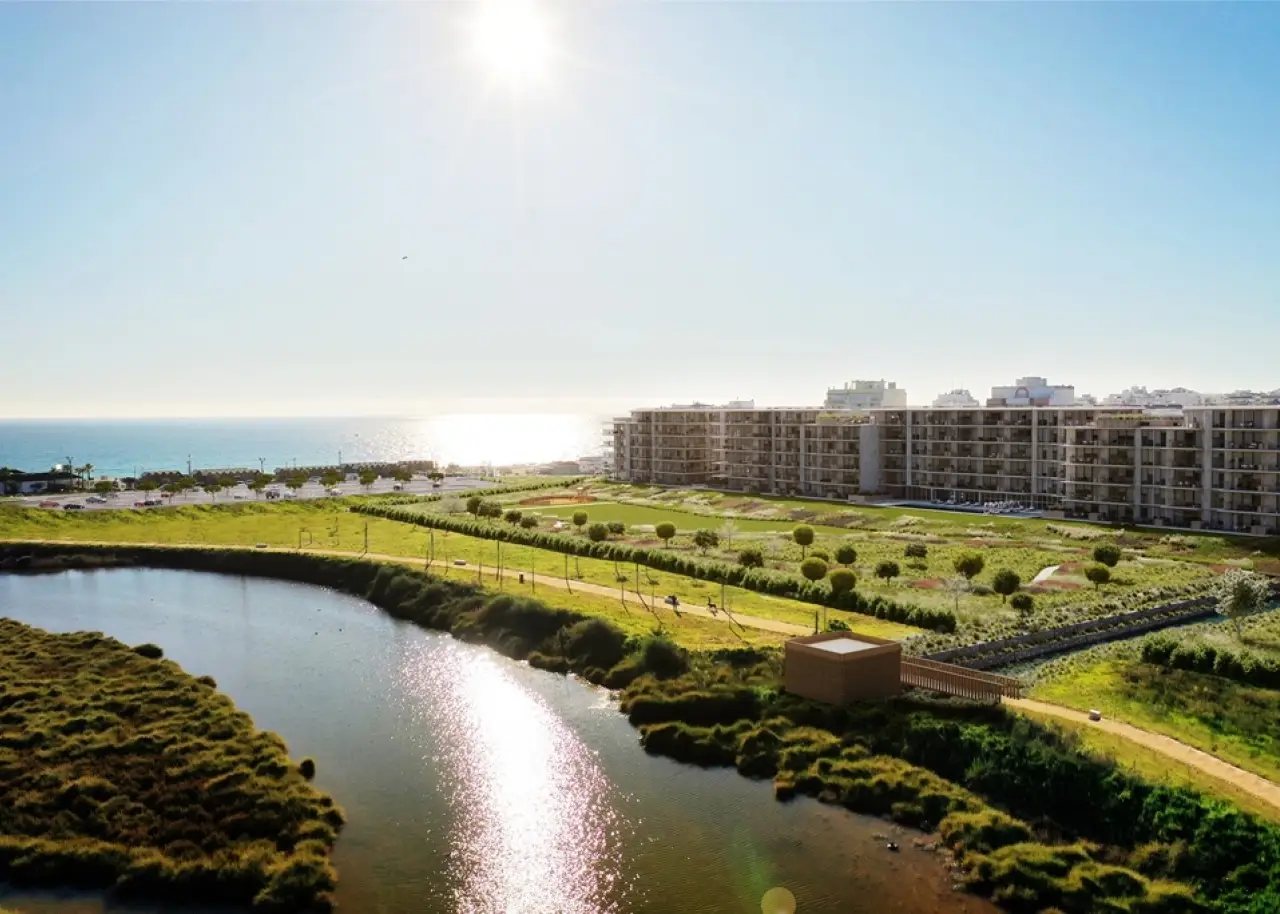 On the seafront, next to the beach and Lagoa dos Salgados, in Armação de Pera, in the Algarve, we find this modern two-bedroom apartment. The apartment is part of a new and exclusive development called Bayline. The apartment was designed to combine comfort and functionality with luxury, high quality construction and attention to detail. This fantastic apartment consists of two large suites. The master suite has a living room, adjacent to the sleeping area, which leads to the dressing room and large bathroom, and the other suite has a large built-in closet. The fully equipped kitchen is compact and functional, directly connected to the laundry room and the open-plan living area, with access to the fantastic terrace, which runs along part of the apartment, has space for relaxation, leisure and socializing, always framed by the beautiful view of the garden, the bay and the beach. The development offers residents exclusive use of a large outdoor swimming pool, a spa with a heated indoor pool, sauna, Turkish bath and gym. Residents can also take advantage of the concierge service and private parking with a charging station for electric vehicles, as well as 2 hectares of lush garden. CHARACTERISTICS:Area: 288 m2 | 3 105 sq ft Useful area: 81 m2 | 874 sq ft Bedrooms: 2 Bathrooms: 3 Garage: 2 Energy efficiency: B FEATURES: 2 bedrooms Equipped kitchen Terrace Outdoor swimming pool Heated indoor pool Garden Private parking