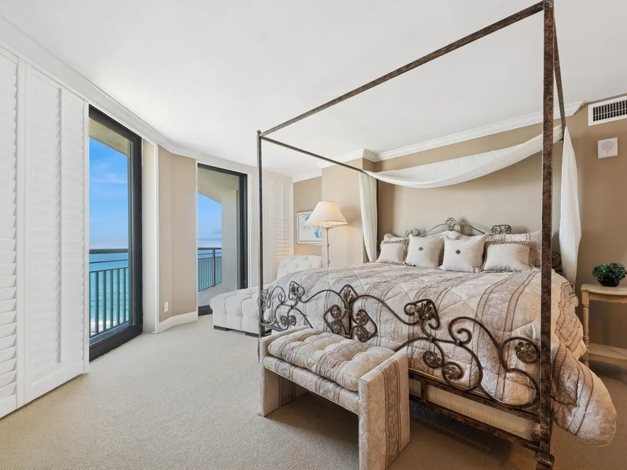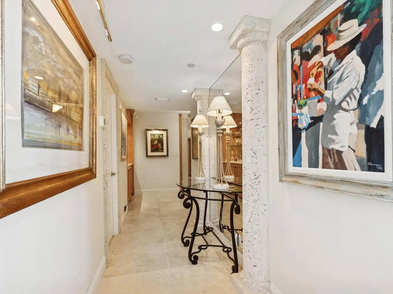 Unique opportunity for a beautifully designed 3BR residence in Tiara. The double unit showcases both ocean and Intracoastal views. Open living areas feature coral-stone columns and flooring. The second bedroom serves as a private guest suite with its own living room, while the third functions as a den easily convertible to a full bedroom. The layout offers an office, laundry room, and custom closets for ample storage. A large, welcoming foyer includes a custom dry bar with a 144-bottle wine cooler. Two garage parking spaces included. Easy to show. 24/7 concierge & staffed gate, valet, pool, jacuzzi, tennis, pickleball, fitness centers w/ steam & sauna, billiards, library, card room, plus dining at the 43rd-fl Marquis Lounge & poolside Gazebo. 15 min to shopping/dining; 25 to PBI.